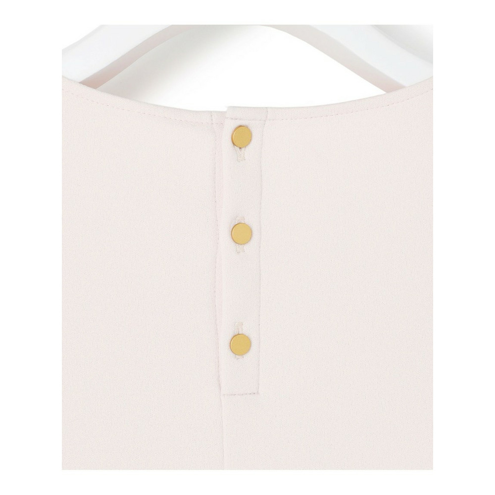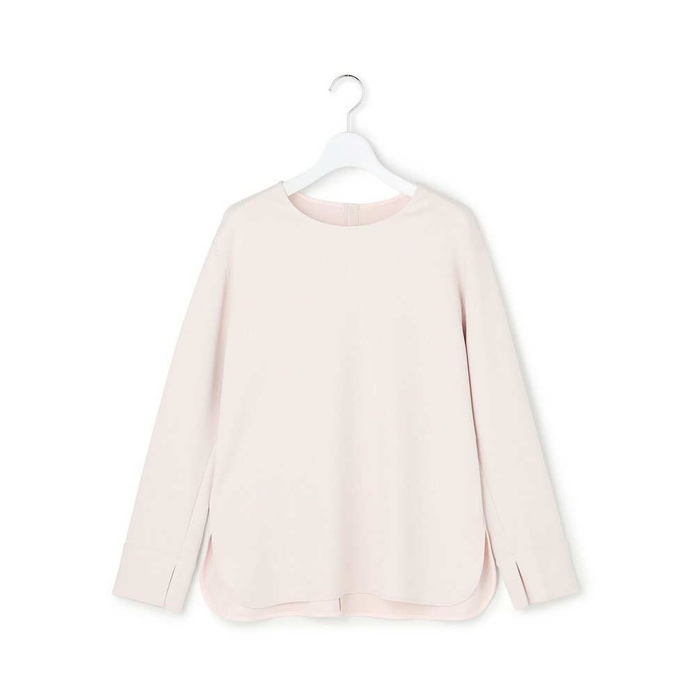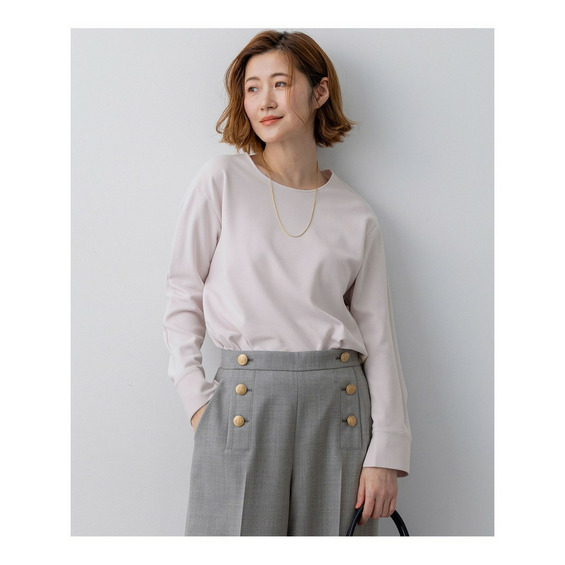 シンプルなフロントデザインに、後ろに配されたゴールドのボタンが目を惹くTEEブラウスです。合わせやすいクルーネックは、どんなスタイリングにも馴染み、洗練された印象を与えます。手首を美しく見せるカフスデザインが、さりげない華やかさをプラス。オフィスでのきれいめスタイルから、休日のカジュアルダウンまで、幅広いシーンで上品な着こなしを叶えます。カラーは、クリーンな印象のホワイト(#001)、柔らかな女性らしさを引き立てるピンク(#012)、知的で落ち着いたネイビー(#075)の3色展開です。