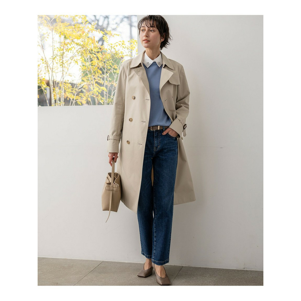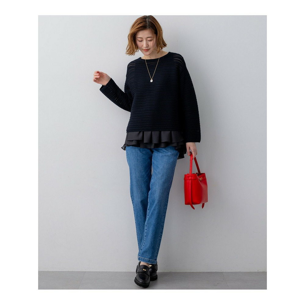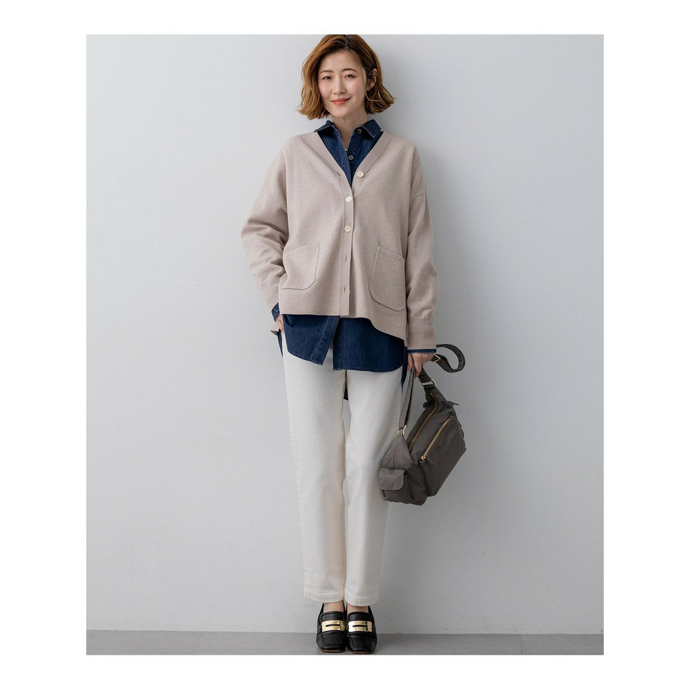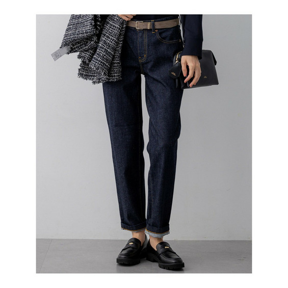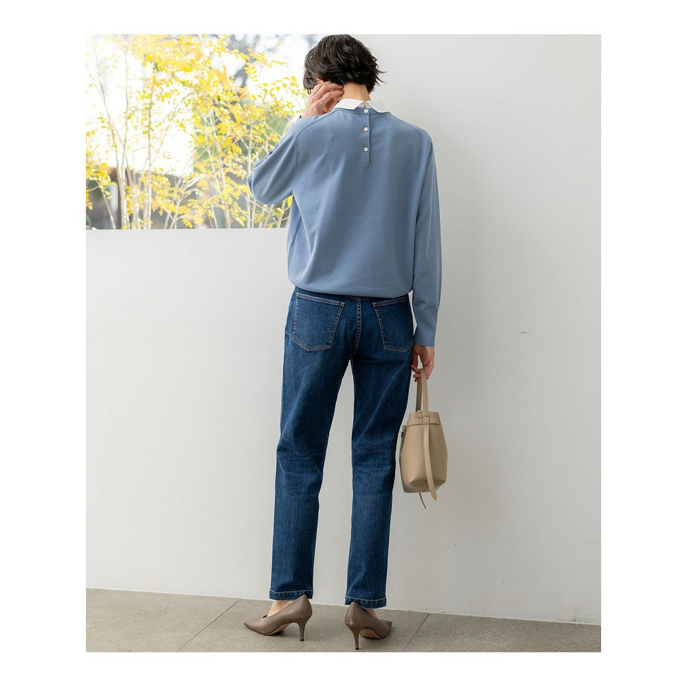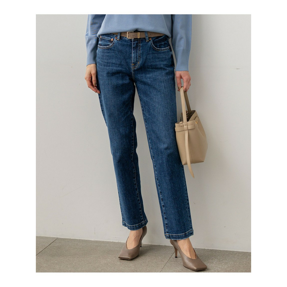23区定番のストレッチデニムを使用しており、動きやすくストレスフリーな穿き心地を実現しています。伸びすぎない快適なストレッチ性が魅力です。表面の凹凸感を抑え、クリーンな表情に仕上げています。さらに、通常のデニムよりも色落ちしにくい加工を施しているため、美しい色合いを長くお楽しみいただけます。