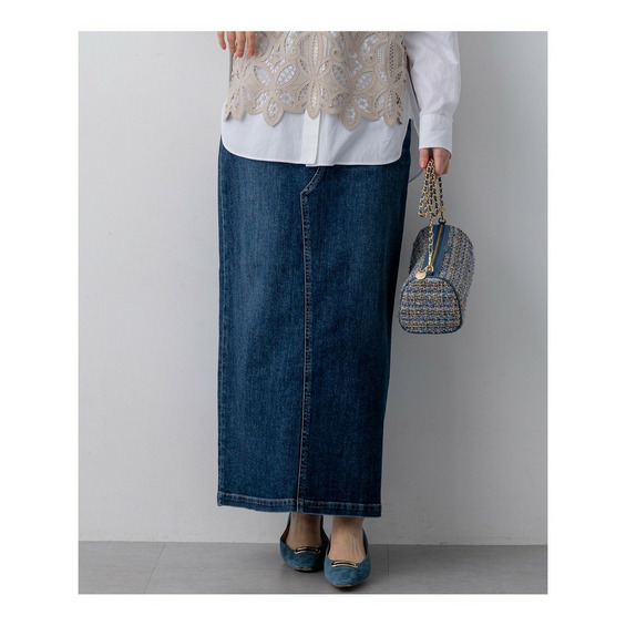 シンプルながらも洗練されたIラインデニムスカート
