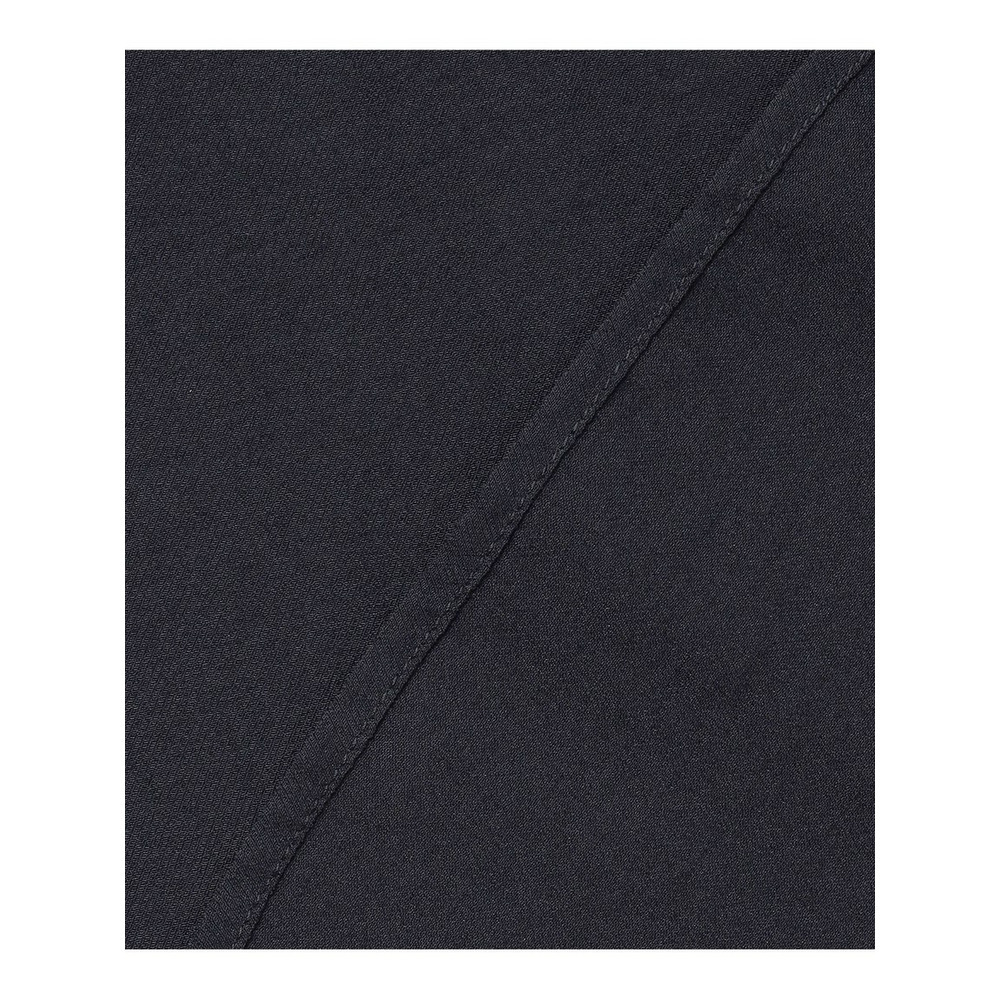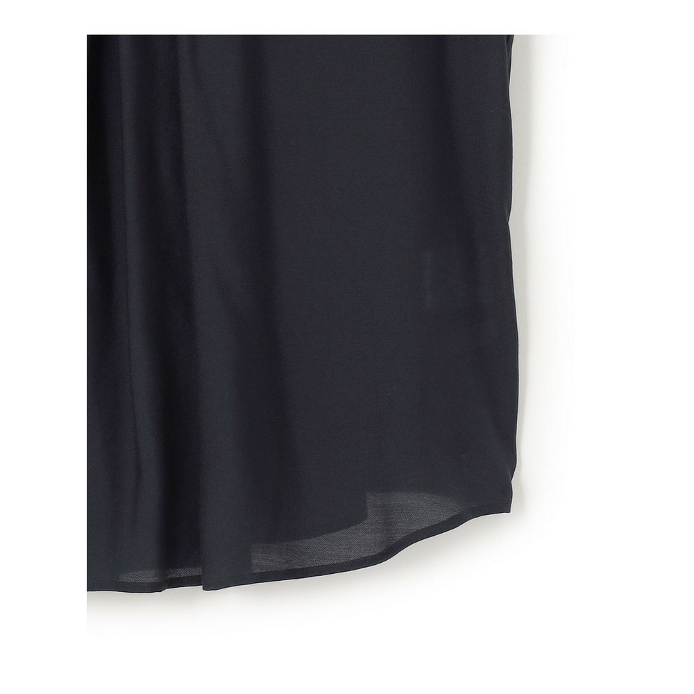 ハリ感のあるポリエステルと、植物由来の原料から作られたレーヨンを組み合わせた、しなやかなツイル素材を使用しています。程よい光沢と繊細な透け感(シアー感)が特徴で、肌に沿うような滑らかな落ち感(ドレープ性)があり、ソフトで心地よい肌触りです。上品な見た目と快適な着心地を両立させ、一枚で着てもサマになる上質な素材感が魅力です。