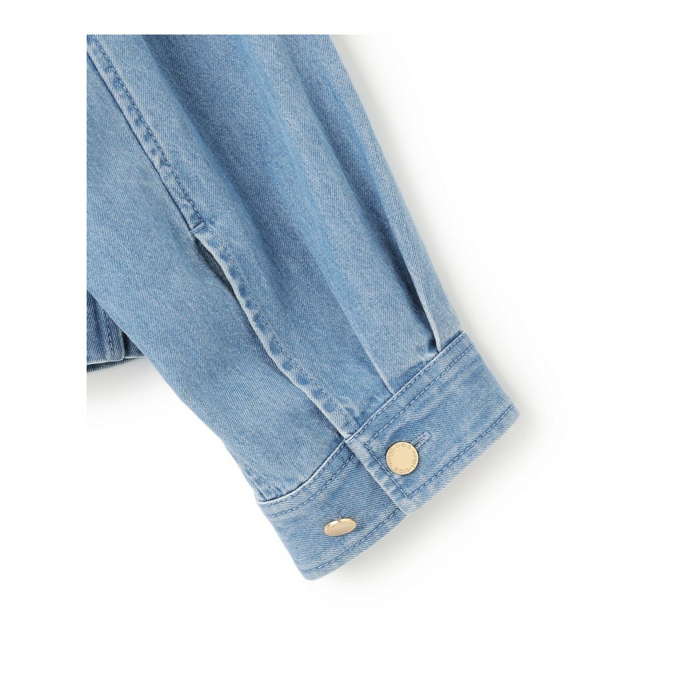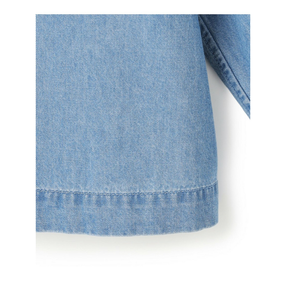 23区の定番素材であるライトダンガリーを使用した、ショート丈のデニムシャツが登場。気軽に羽織れる軽やかさがありながら、前立ての幅やポケットのディティールにこだわり、少しジャケットライクなデザインに仕上げています。適度なレングス感は、スカートやワンピース、ワイドパンツなど、様々なボトムスと相性抜群。いつものコーディネートにプラスするだけで、こなれ感のある着こなしが完成します。23区オリジナルのロゴ入り金属釦が、さりげないアクセントとなり上品さを添えています。 カラーは、爽やかで春らしい印象のターコイズブルー(#071)、落ち着いた深みのある上品なダルブルー(#074)の2色展開です。