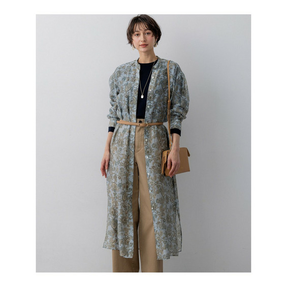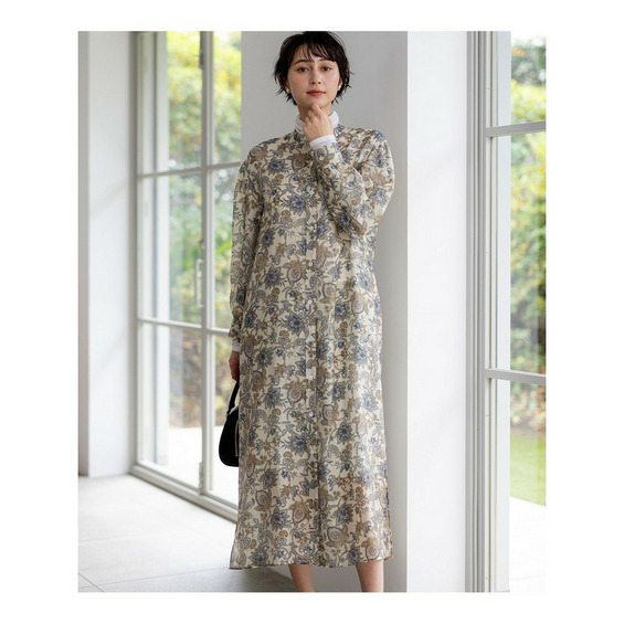 上品なペーズリープリントが目を引くシャツワンピース。美しいプリントを活かしてデザインはシンプルに仕上げています。ワンピースとしてはもちろん、前ボタンを開けて軽やかな羽織りとしてもお楽しみいただけます。オフィスシーンでは、ジャケットやカーディガンを羽織ってきちんと感を。休日のランチや旅行には、一枚でさらりと着こなしたり、デニムなどのボトムとレイヤードしてカジュアルダウンしたりと、幅広いシーンで活躍します。カラーは、柔らかな印象で上品さを引き立てるアイボリー系(502)と、爽やかで洗練された雰囲気を醸し出すサックス系(572)の2色展開です。