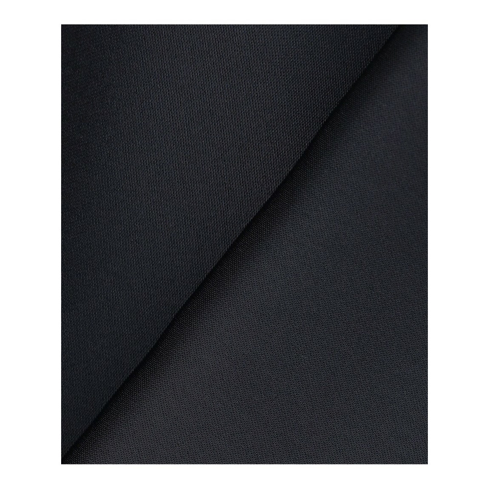 なめらかな肌触りでシルクのような光沢感があるアセテートライクなポリエステルを使用しています。通常のポリエステルでは表現できない反発感と落ち感あり、女性らしいシルエットを演出できるのが特長のダブルサテン生地です。