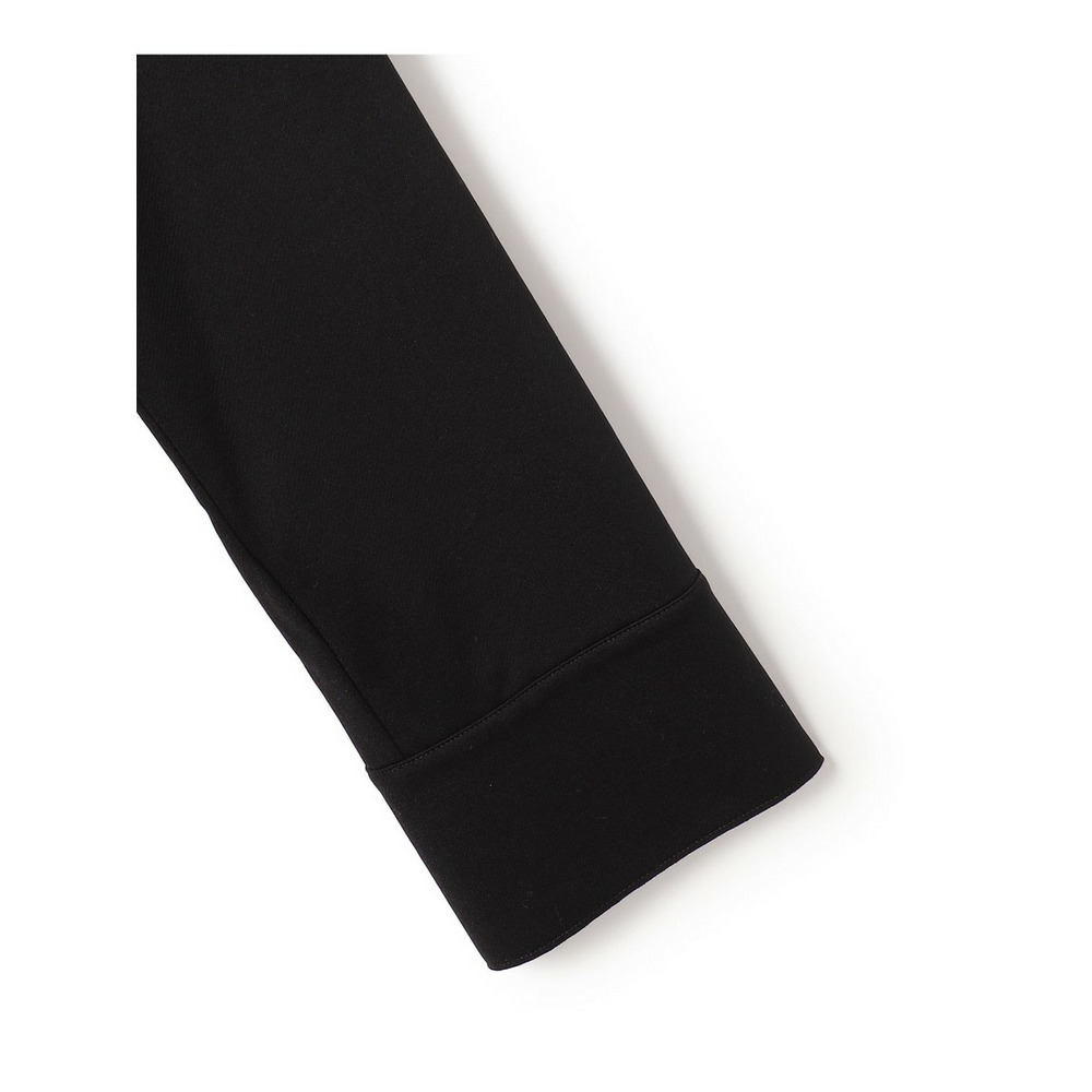 コットンと伸縮性のあるポリエステルを組み合わせ、まるで織物のようなしっかりとしたツイル生地に編み上げました。程よいハリ感とふくらみがあり、着用時の美しいシルエットをキープします。さらに、特殊な加工で表面の毛羽立ちを抑えることで、肌触りの良いさらりとした着心地と、上品な光沢感を両立させています。