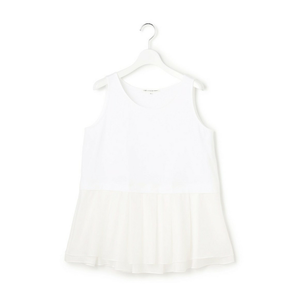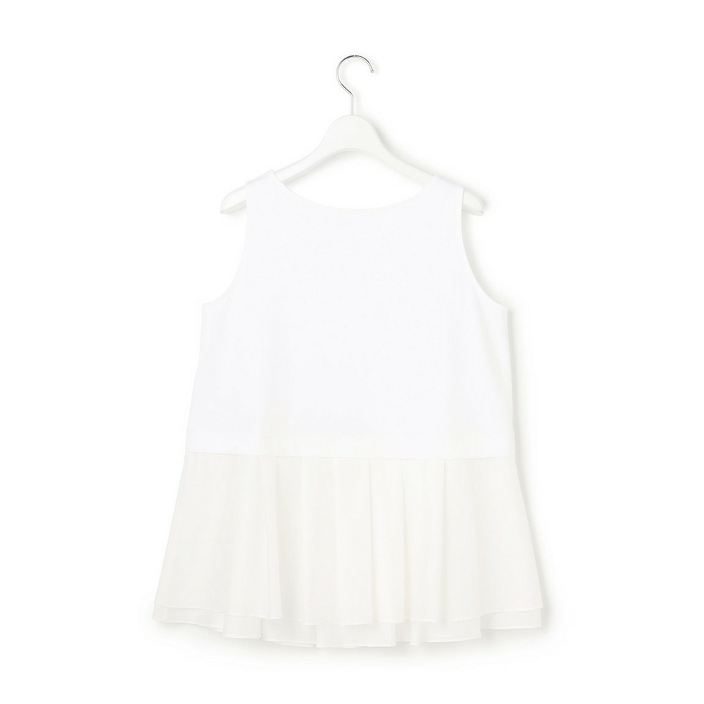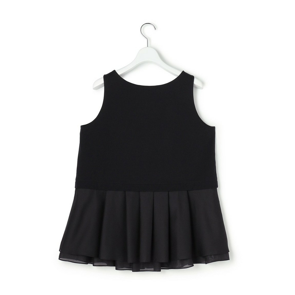 裾にシアーな素材をドッキングした、洗練されたレイヤードデザインのトップスです。2枚重ねでたっぷりと分量をとったペプラムが、気になる腰回りを優しくカバーしながら、足元をすっきりと見せてくれます。ニットやカーディガンの裾からペプラム部分をのぞかせれば、コーディネートにこなれ感をプラス。着回し力抜群で、オフィススタイルや休日のカジュアルスタイルまで、幅広く活躍する一枚です。カラーは、清潔感あふれるホワイト(#001)と、シックで着回し力抜群のブラック(#005)の2色展開です。