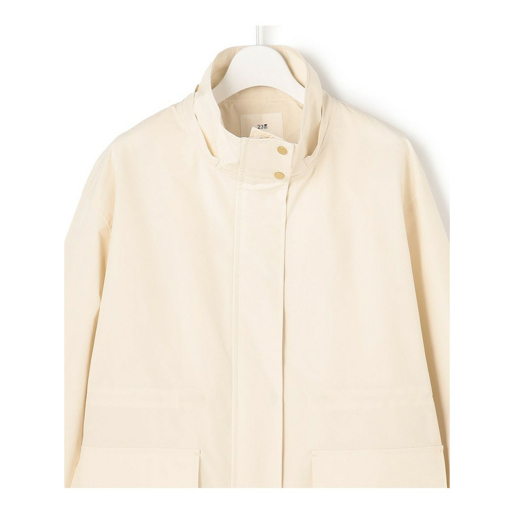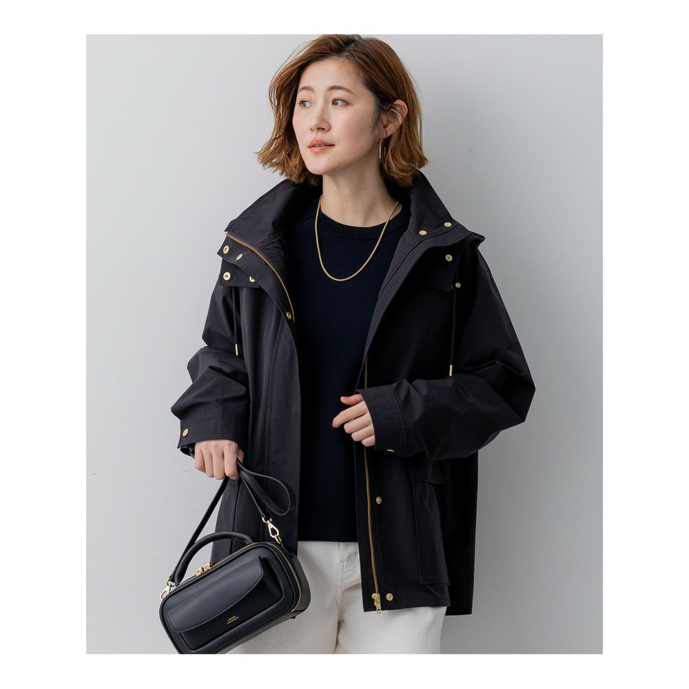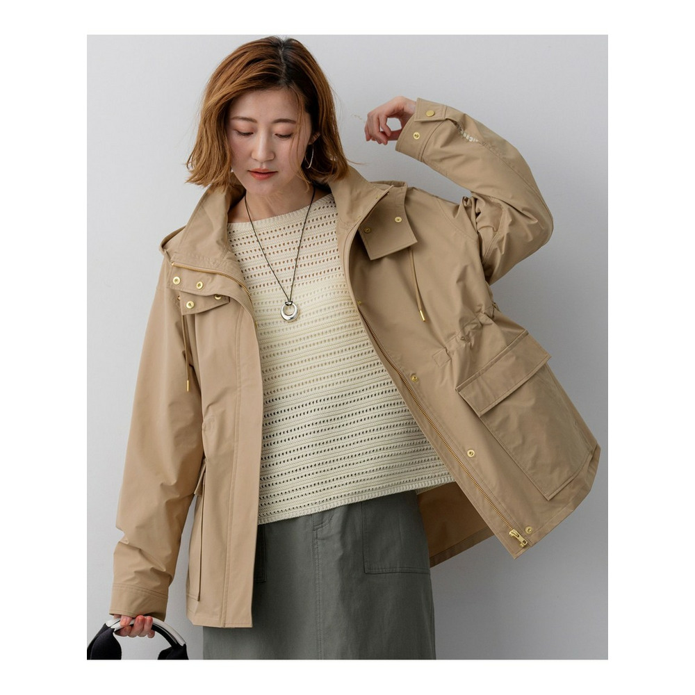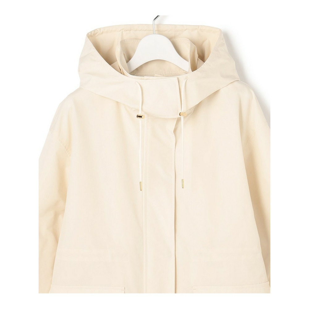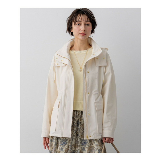 2WAY仕様のフードのついたデザインブルゾン。大き目のポケットをアクセントにすることで、定番アイテムにトレンドを取り入れてアップグレードしました。ネックディテールがやや高めのデザインで、フロントは釦で開け閉めできるのもポイントです。ウエストはドロスト仕様にしているので、絞ることでスタイリングに合わせたシルエットの変化をお楽しみいただけます。フードはファスナーで取り外しが可能で、その日の天気やインナー次第で着脱を選んでも◎。カラーニットやデニムスカートと合わせていただくことでカジュアルすぎず、こなれた印象に仕上がるのでおすすめです。カラーは、明るく晴れやかなベージュ(#002)、上品で暖かみのあるキャメル(#034)、毎日頼れる洗練されたネイビー(#075)の3色展開です。