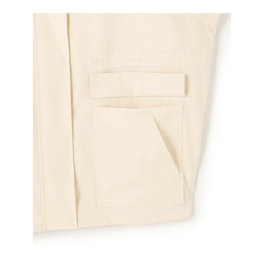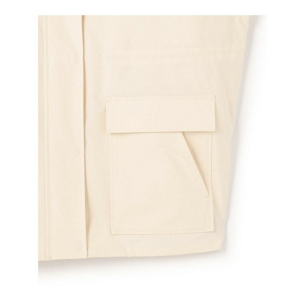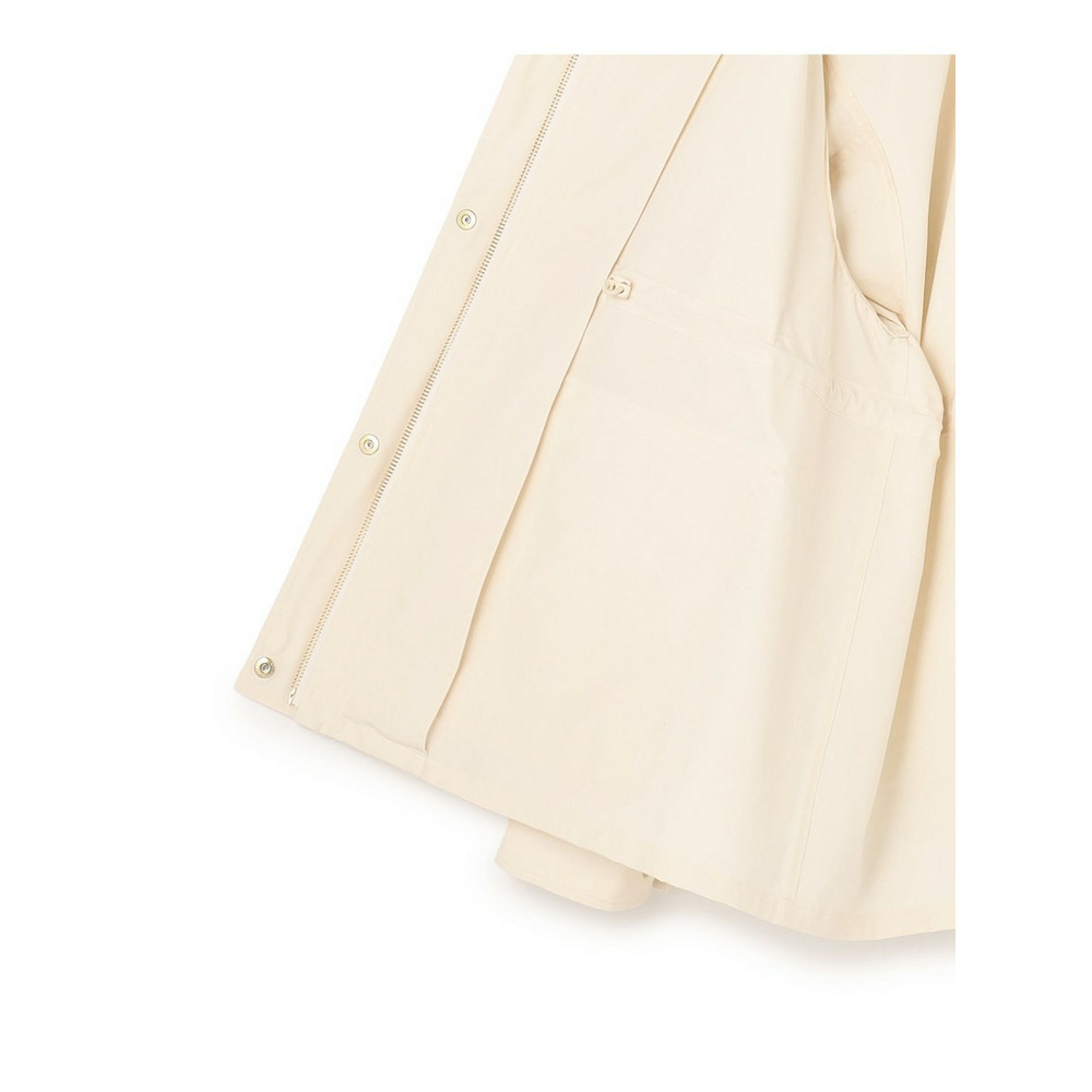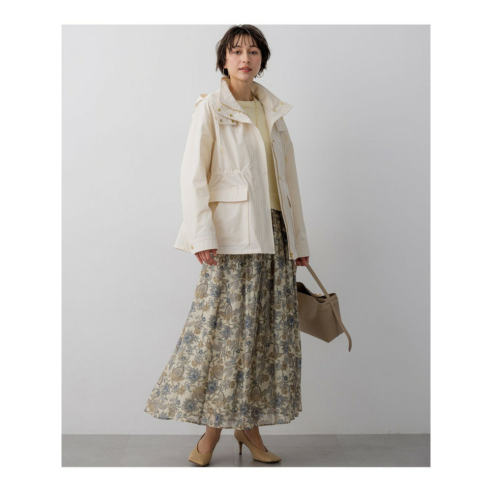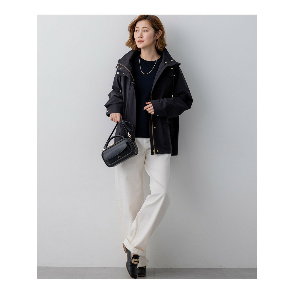 2WAY仕様のフードのついたデザインブルゾン。大き目のポケットをアクセントにすることで、定番アイテムにトレンドを取り入れてアップグレードしました。ネックディテールがやや高めのデザインで、フロントは釦で開け閉めできるのもポイントです。ウエストはドロスト仕様にしているので、絞ることでスタイリングに合わせたシルエットの変化をお楽しみいただけます。フードはファスナーで取り外しが可能で、その日の天気やインナー次第で着脱を選んでも◎。カラーニットやデニムスカートと合わせていただくことでカジュアルすぎず、こなれた印象に仕上がるのでおすすめです。カラーは、明るく晴れやかなベージュ(#002)、上品で暖かみのあるキャメル(#034)、毎日頼れる洗練されたネイビー(#075)の3色展開です。