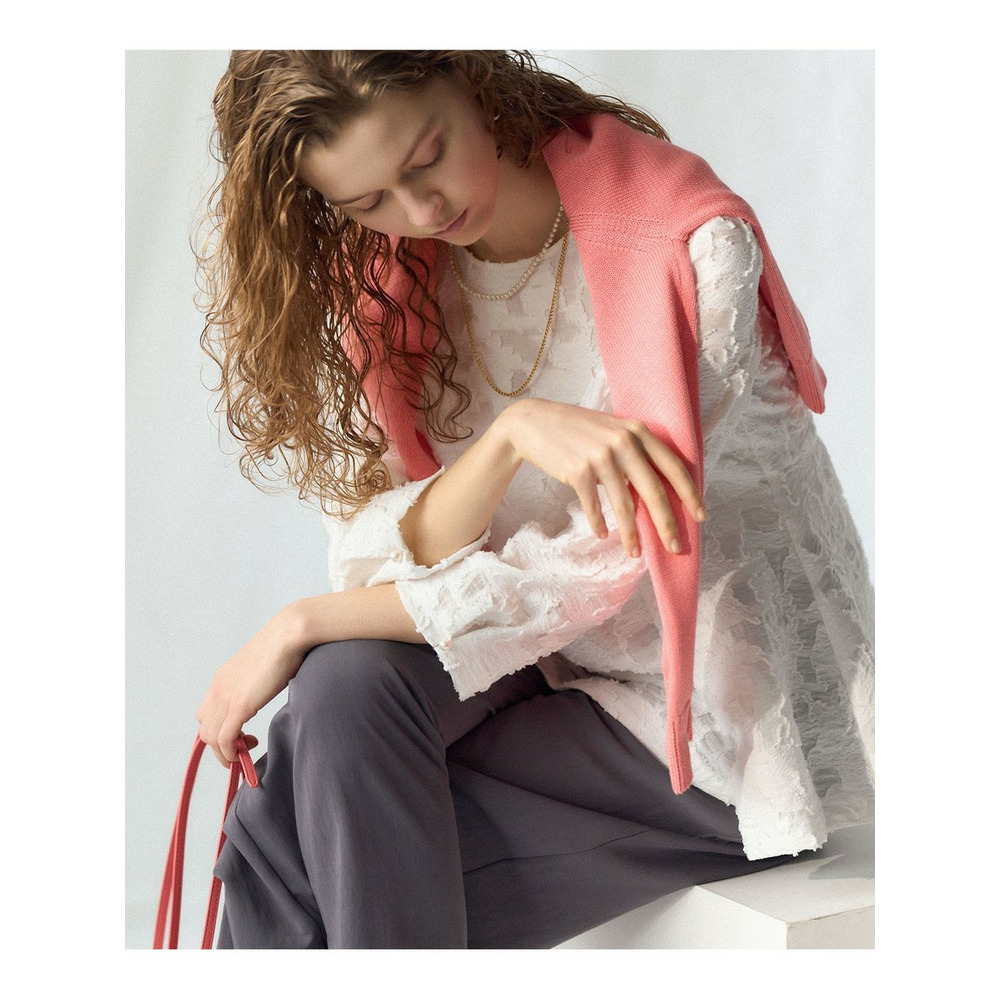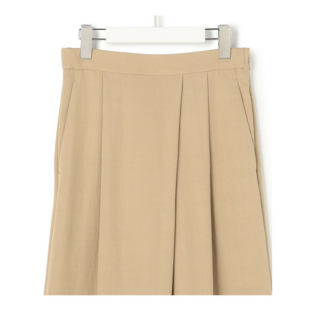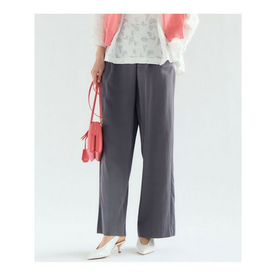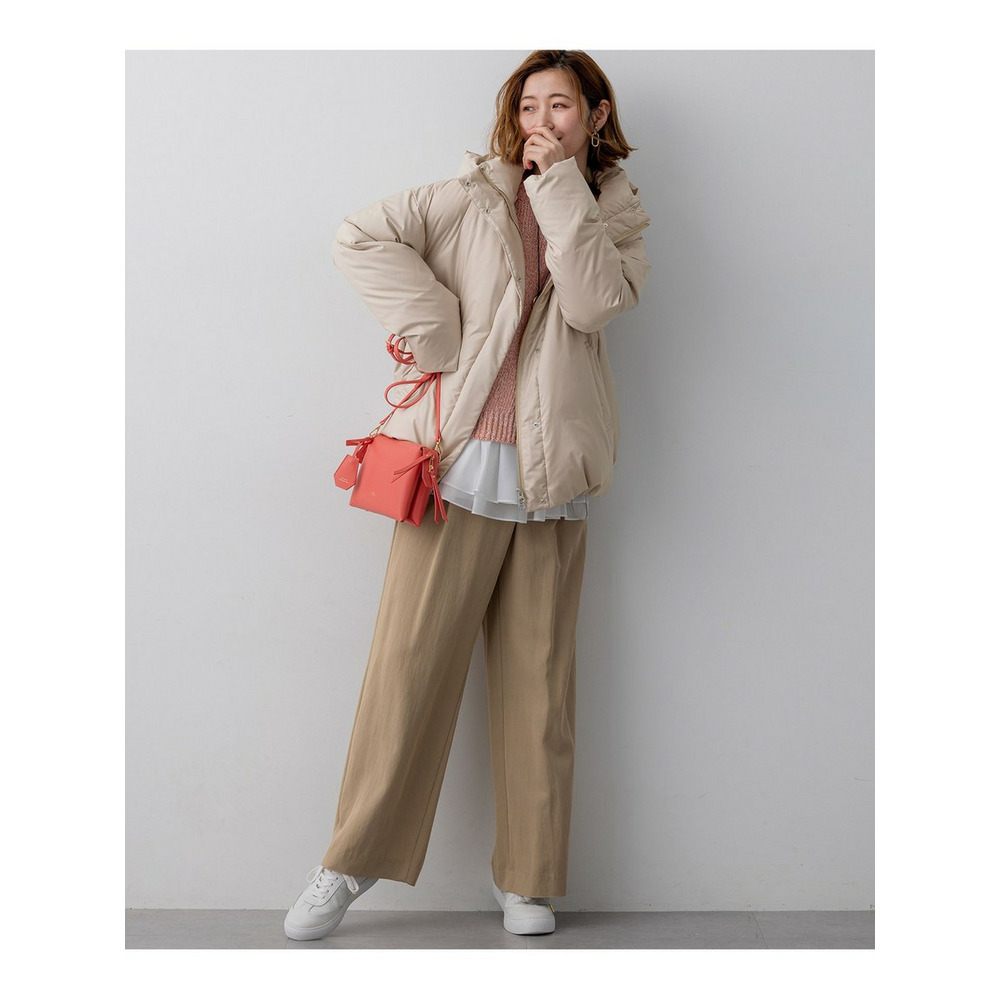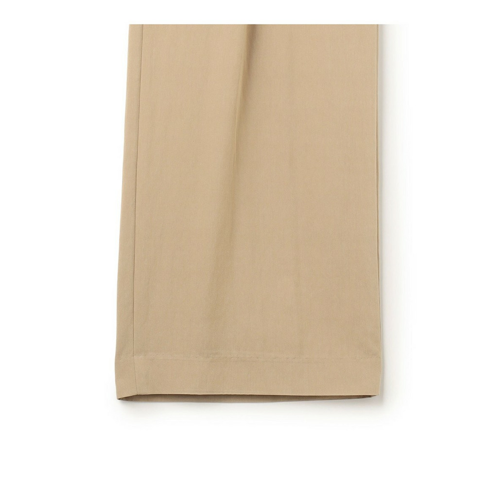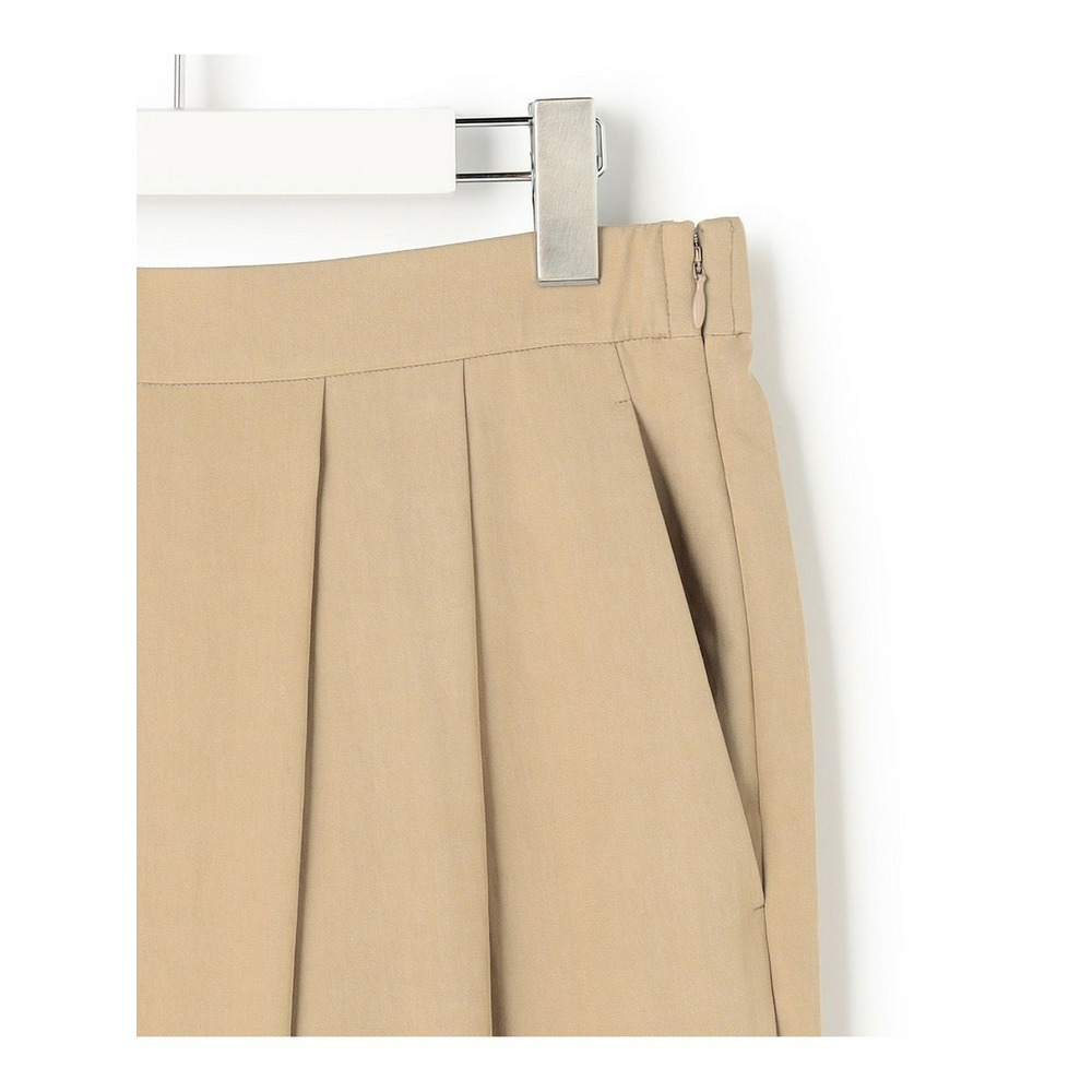 ラップ風ディテールとアシンメトリーなタックドレープが特徴で、一枚で着こなしに奥行きを与えるワイドパンツです。後ろウエストはベルト部分のみゴム仕様。快適な穿き心地ながらも、きちんと感を損ないません。シンプルなトップスと合わせるだけで洗練されたスタイリングが完成し、トップスをインしてウエストデザインを際立たせるのもおすすめです。ツイードのジャケットやベストと合わせれば、より上品でこなれた印象に仕上がります。オフィスシーンから休日のカジュアルスタイルまで、幅広いシーンで活躍する一枚です。カラーは、優しく上品な印象のベージュ(033)と、都会的で洗練された雰囲気のグレー(004)の2色展開です。