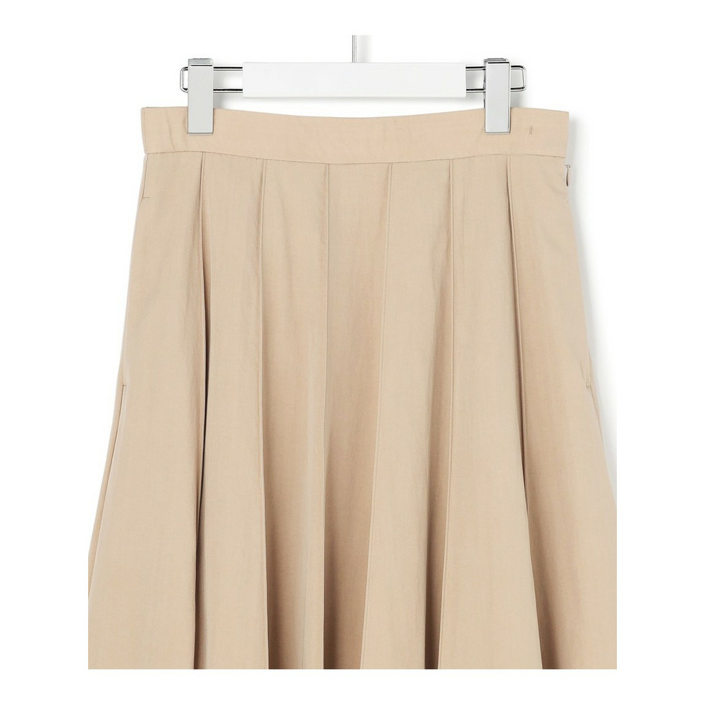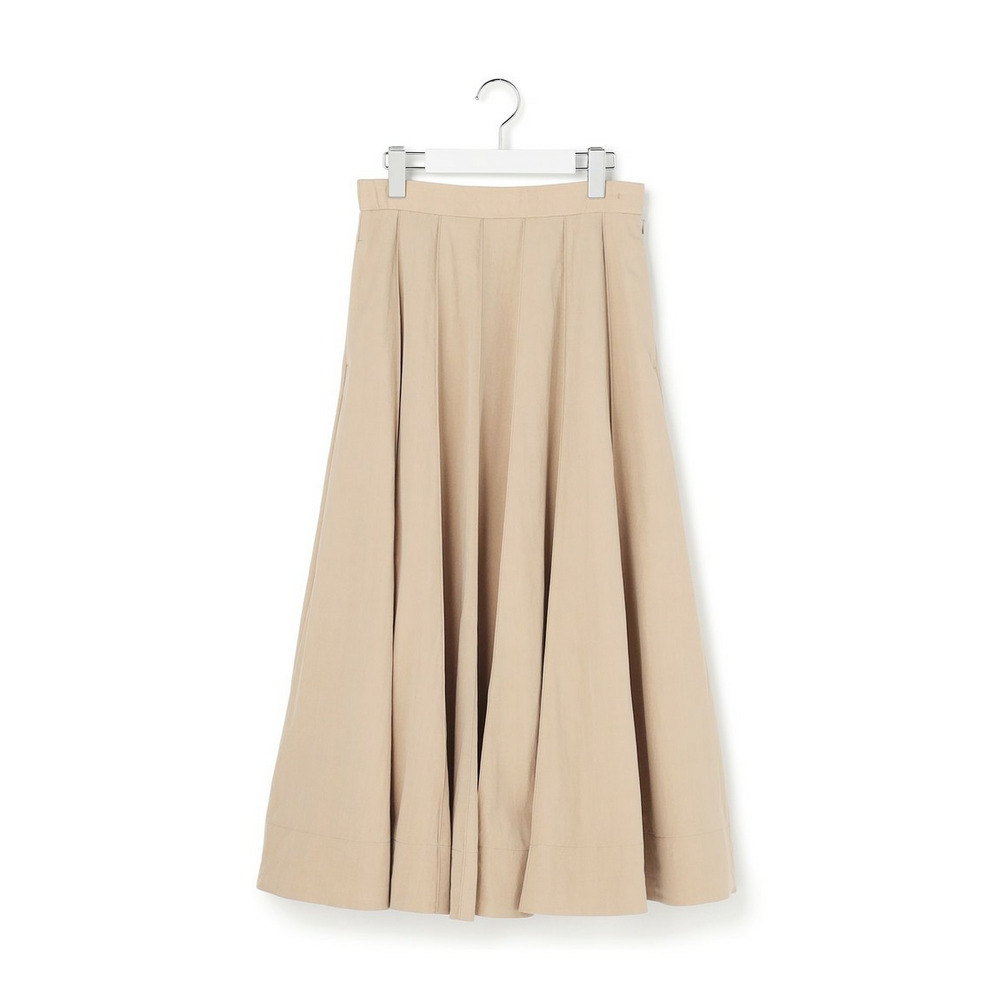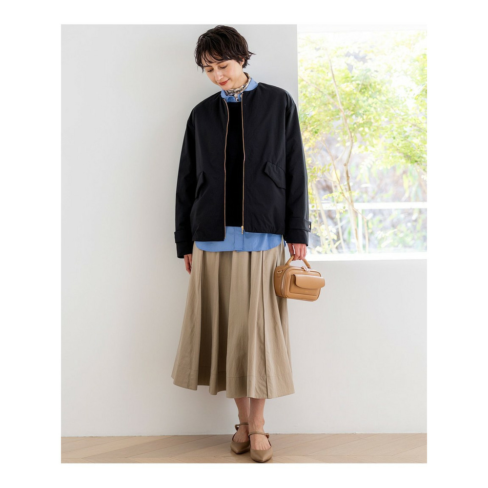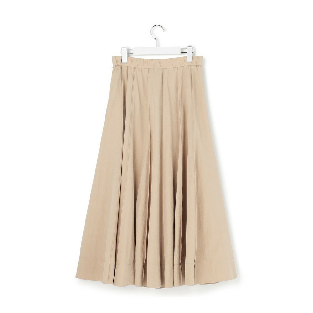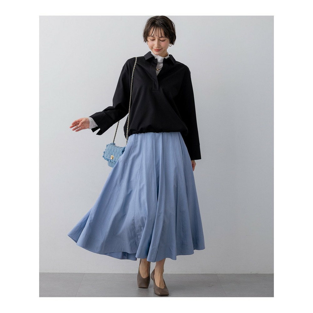 春らしい軽やかなボリューム感が魅力のフレアスカートです。腰回りはすっきりと見せつつ、裾に向かって優雅に広がるフレアラインが、女性らしい華やかさを添えます。ミモレ丈で長すぎないレングスはバランスがとりやすく、どんなトップスにも合わせやすい万能な一枚です。ブラウスと合わせてオフィススタイルに、Tシャツやニットと合わせてカジュアルダウンした休日スタイルにと、幅広いシーンで活躍します。足元はパンプスで上品に、スニーカーで抜け感を出すのもおすすめです。 カラーは、優しく上品な印象のベージュ(033)、爽やかで洗練されたサックス(072)、深みがあり落ち着いたブラウン(035)、着回し力抜群のシックなブラック(005)の4色展開です。