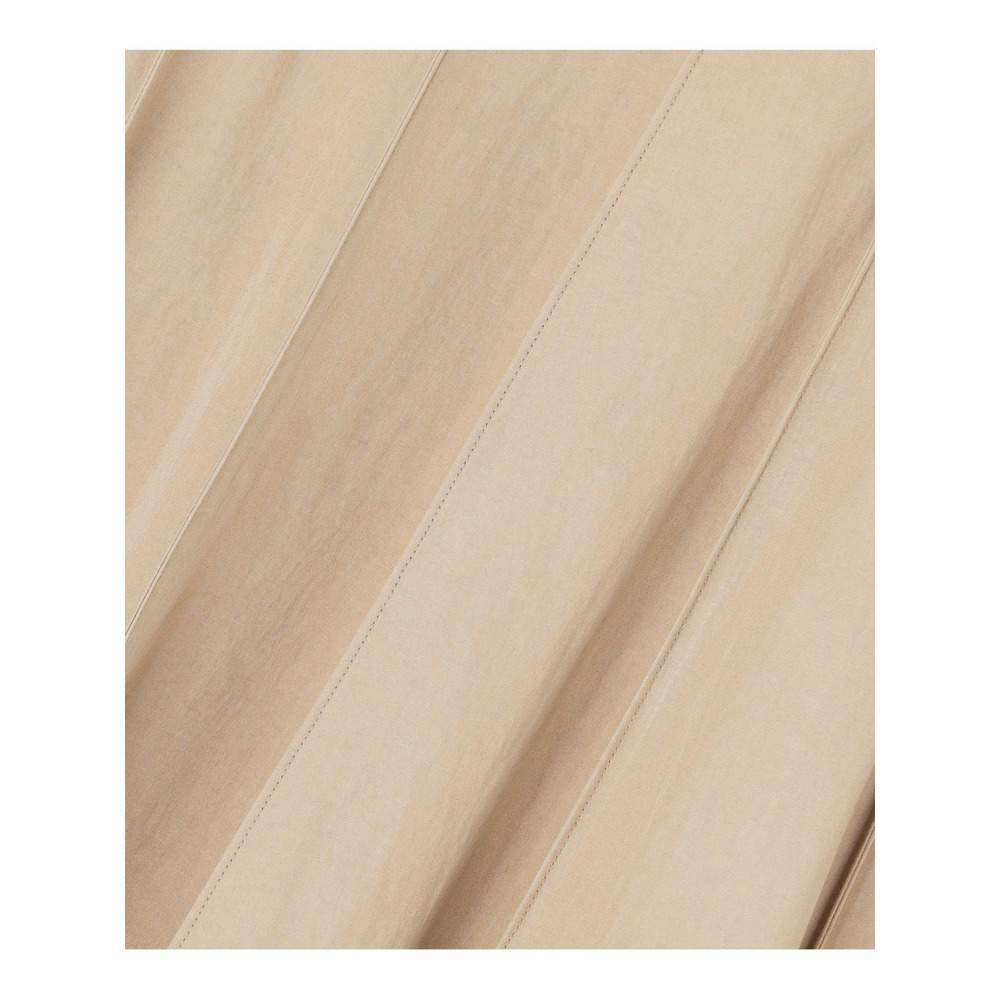 植物由来の再生繊維であるレーヨンと、軽量なナイロンをバランス良く組み合わせたタフタ素材を使用しています。レーヨンが持つしなやかで美しいドレープ性に加え、ナイロンによるさらりとした清涼感を併せ持つのが特徴です。軽やかな着心地と適度なハリ感を両立させています。生地表面のナチュラルなシワ感が、こなれた雰囲気を演出します。