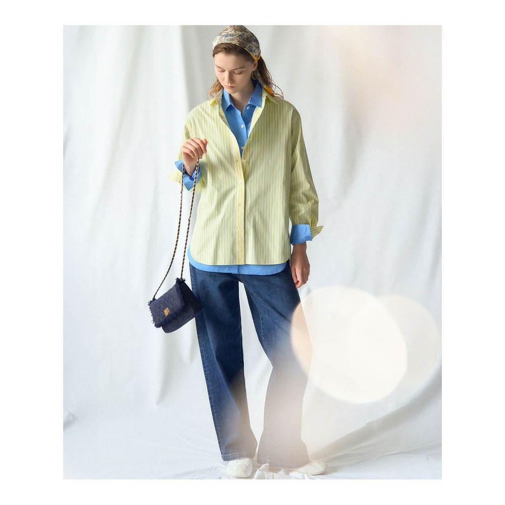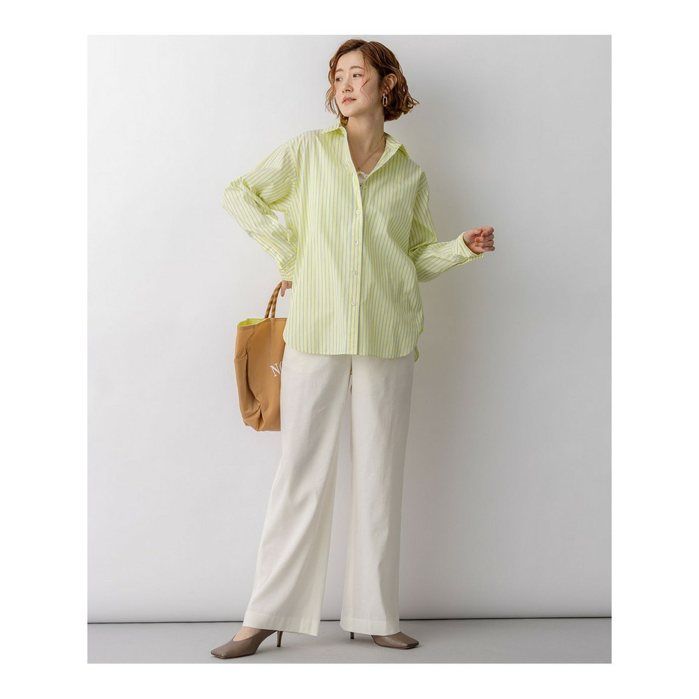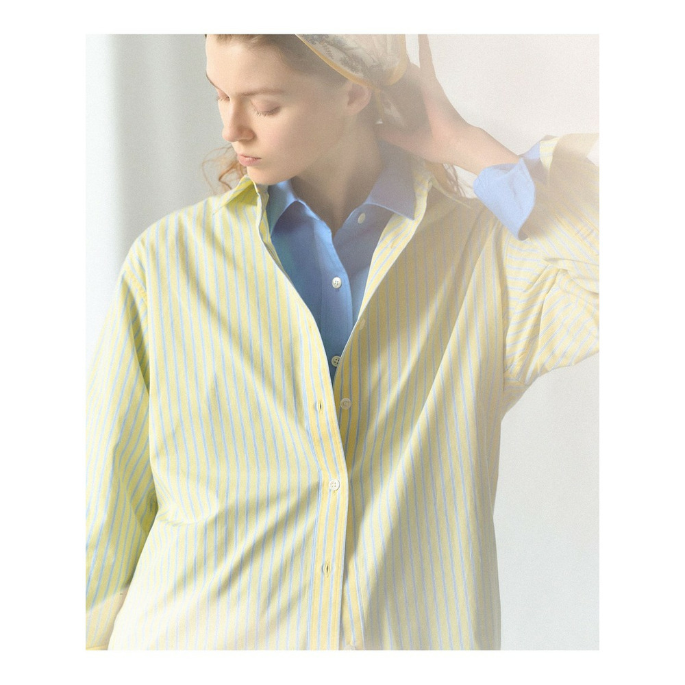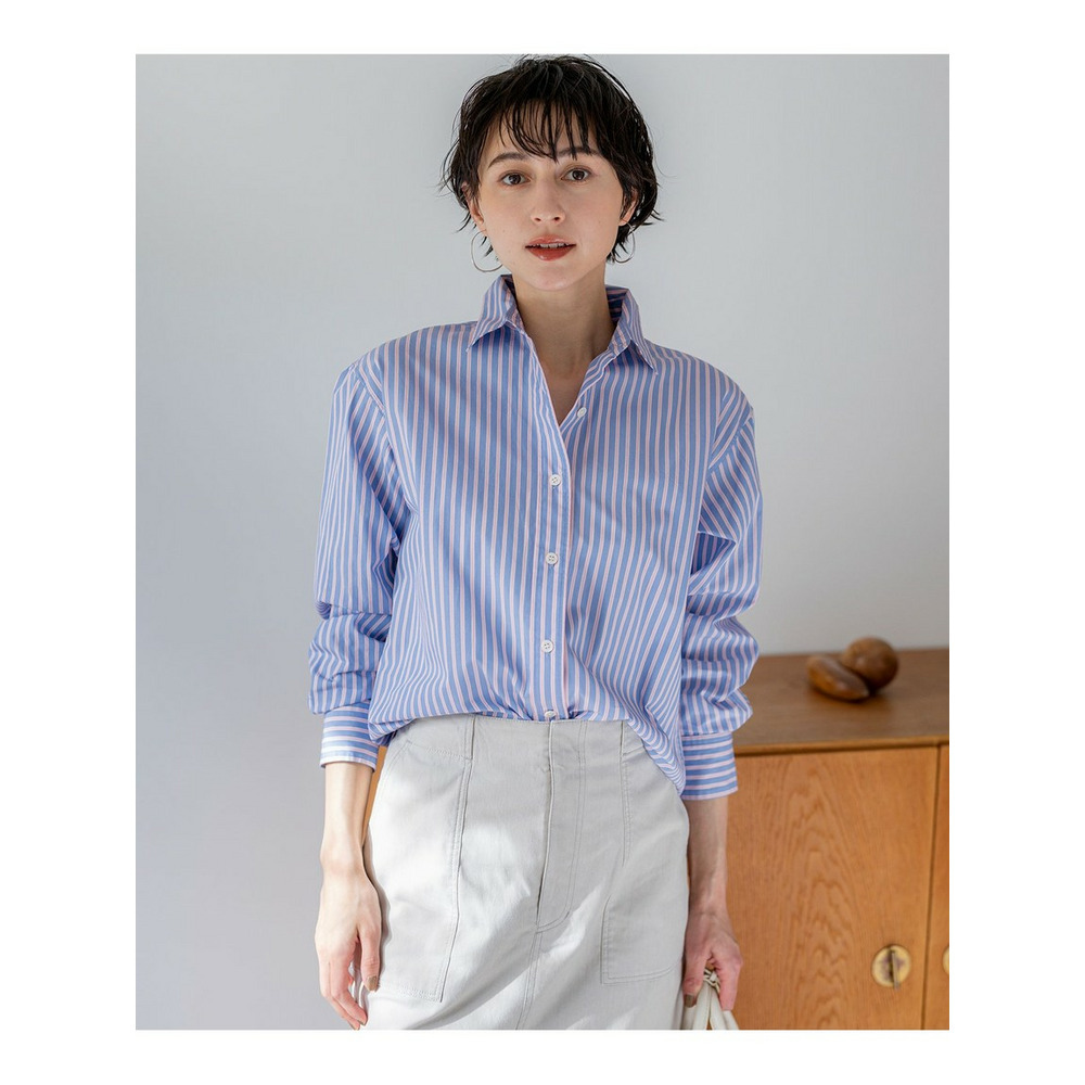 ベーシックながらも洗練されたデザインが魅力の上質シャツです。メンズライクな雰囲気がありつつも、身幅はすっきりとエレガントなラインに仕上げることで、女性らしい着こなしを叶えます。肩幅には程よいゆとりを持たせているため、窮屈感がなく、快適な着心地を実現しました。一枚でさらりと着こなせる暖かい季節から、ニットのインナーとして活躍する寒い季節まで、ロングシーズンお楽しみいただける万能アイテムです。 シンプルなデニムと合わせたカジュアルスタイルはもちろん、タイトスカートで上品に、ワイドボトムスでトレンド感のある着こなしにと、幅広いコーディネートに対応します。オフィスシーンから休日のカジュアルスタイルまで、ワンランク上の着こなしを演出する、大人の女性にぴったりの一枚です。 カラーは、清潔感のあるホワイト(#001)、爽やかな印象のブルー(#070)、顔色を明るく見せるピンク×サックスストライプ(#112)、華やかなイエロー×サックスストライプ(#140)、そして澄んだ空のようなサックス×ピンクストライプ(#172)の5色展開です。