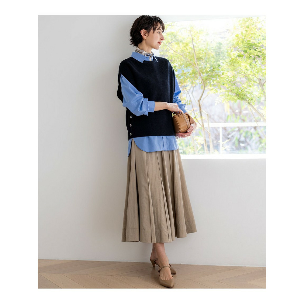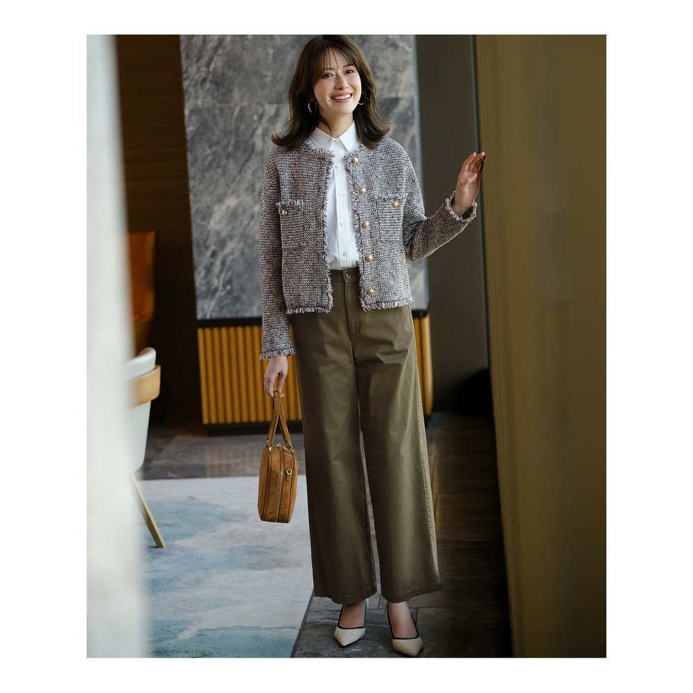 イタリアを代表するファブリックメーカーCANCLINI(カンクリーニ)社によるインポート素材を使用しております。毛羽立ちを抑えて作られた上質な綿糸をタテヨコに贅沢に使用し、23区で長く愛されてきた高密度なポプリン生地「MILANO」をベースに、23区のために特別に改良を加えたツイル素材です。従来の生地と比べて、程よい厚みと上品な光沢感、そしてしなやかな風合いが加わり、より上質な着心地を実現しました。肌触りが良く、着るほどに体に馴染む上質な素材感をお楽しみいただけます。