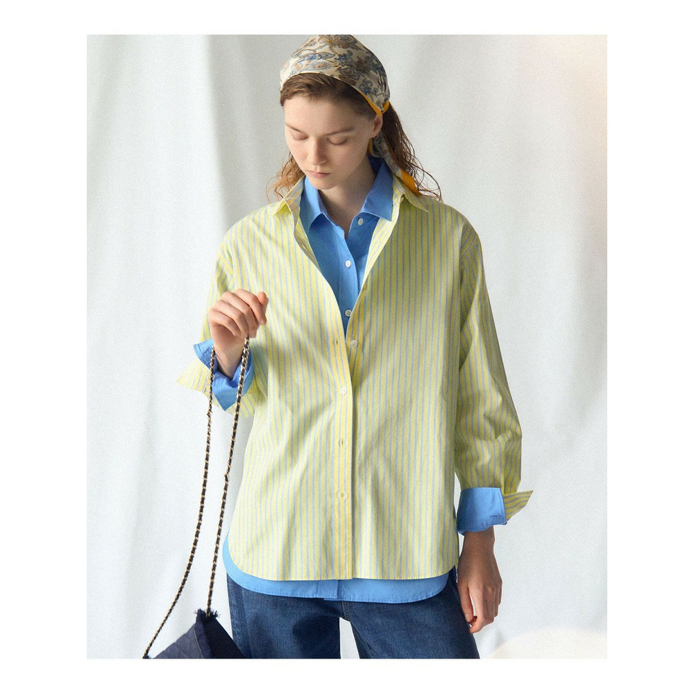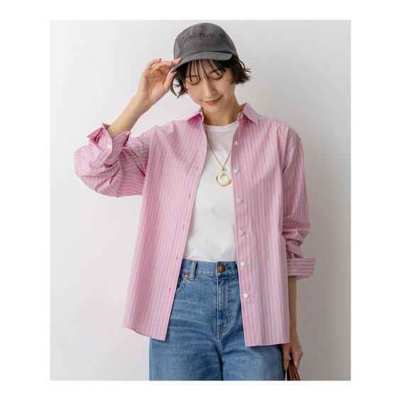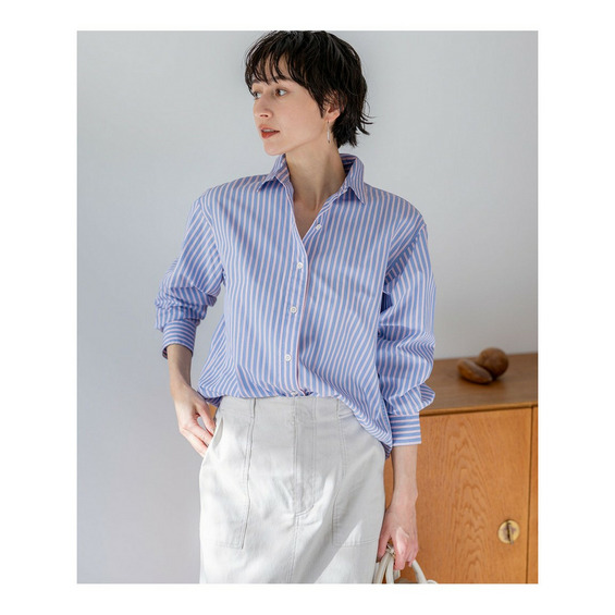 ベーシックながらも洗練されたデザインが魅力の上質シャツです。メンズライクな雰囲気がありつつも、身幅はすっきりとエレガントなラインに仕上げることで、女性らしい着こなしを叶えます。肩幅には程よいゆとりを持たせているため、窮屈感がなく、快適な着心地を実現しました。一枚でさらりと着こなせる暖かい季節から、ニットのインナーとして活躍する寒い季節まで、ロングシーズンお楽しみいただける万能アイテムです。 シンプルなデニムと合わせたカジュアルスタイルはもちろん、タイトスカートで上品に、ワイドボトムスでトレンド感のある着こなしにと、幅広いコーディネートに対応します。オフィスシーンから休日のカジュアルスタイルまで、ワンランク上の着こなしを演出する、大人の女性にぴったりの一枚です。 カラーは、清潔感のあるホワイト(#001)、爽やかな印象のブルー(#070)、顔色を明るく見せるピンク×サックスストライプ(#112)、華やかなイエロー×サックスストライプ(#140)、そして澄んだ空のようなサックス×ピンクストライプ(#172)の5色展開です。