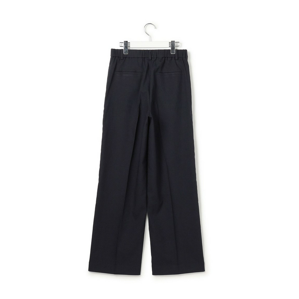 ■デザインウエスト周りはすっきりとさせつつ、後ろをゴム仕様にすることで、きちんと感と穿き心地の良さを両立させたワイドパンツです。絶妙なセミワイドシルエットが、脚のラインを美しく整えます。同シリーズのジャケットと合わせたセットアップスタイルはもちろん、カットソーやニットを合わせたカジュアルな着こなしも上品に決まります。シーンを選ばず活躍する、ワードローブに加えておきたい一本です。カラーは、明るく洗練された印象のライトグレー(#003)、ナチュラルで女性らしいベージュ(#033)、シックで知的なネイビー(#075)の3色展開です。