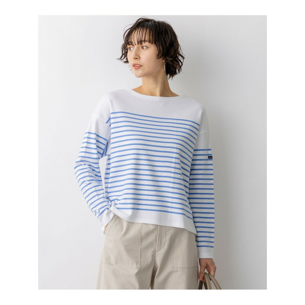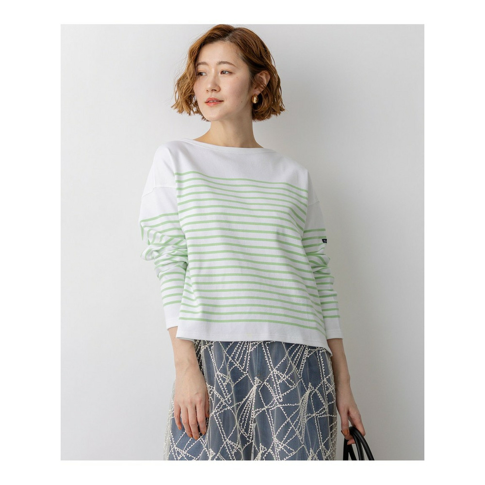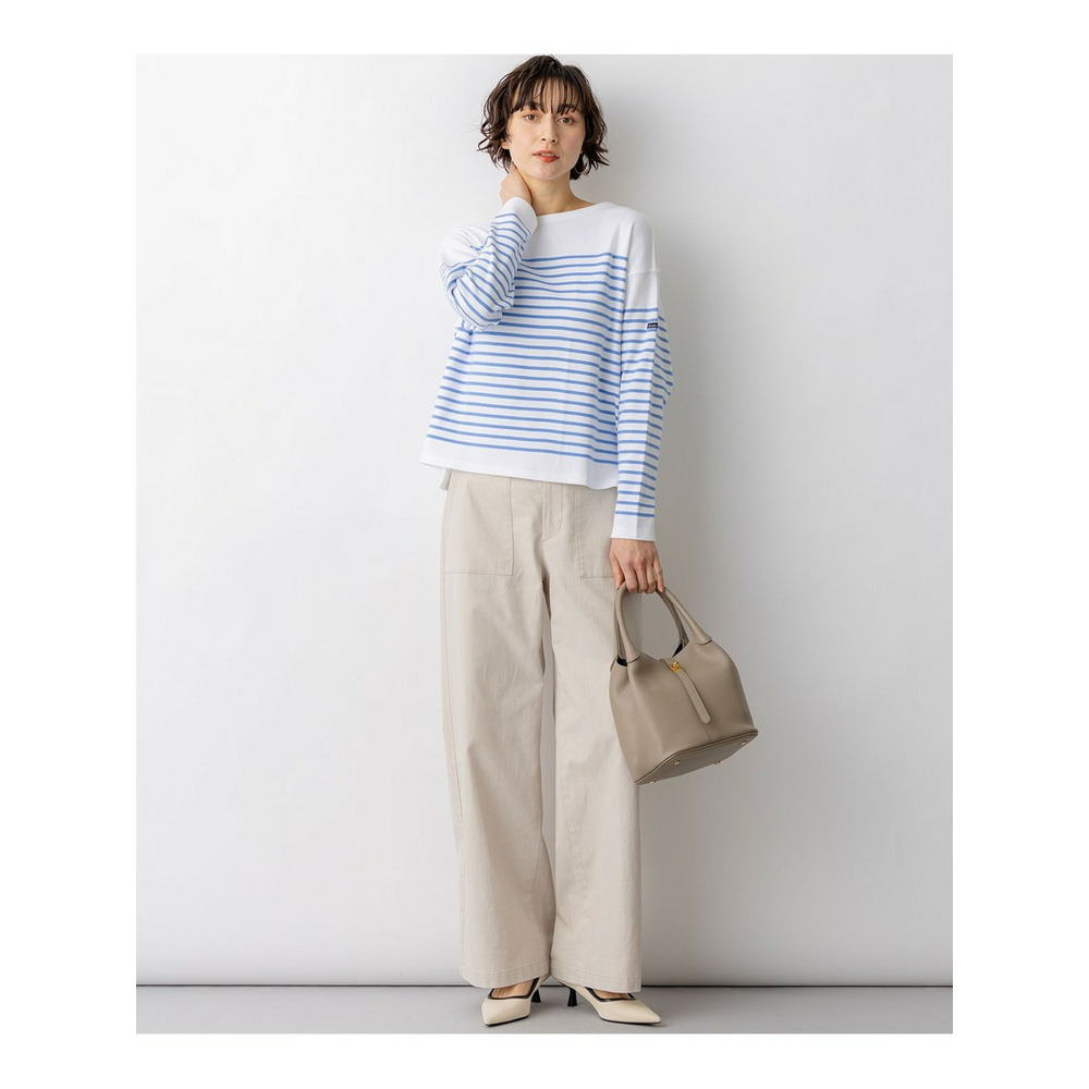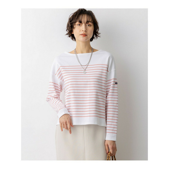フランスの老舗ブランド『Armor-lux(アルモリュクス)』の素材を使用した、洗練された印象のボーダーカットソーです。23区オリジナルの細めのパネルボーダー柄が、顔周りをすっきりと見せ、カジュアルな中にも女性らしい上品さを演出します。ボトムスを選ばない絶妙なクロップド丈に仕上げており、パンツスタイルですっきりとまとめるのはもちろん、ボリュームのあるスカートと合わせてもバランス良く着こなしていただけます。休日のリラックススタイルから、きれいめなボトムスと合わせたお出かけシーンまで、幅広く活躍する一枚です。カラーは、フェミニンなピンク(#112)、鮮やかなアップルグリーン(#162)、清涼感のあるブルー(#172)、ベーシックで着回しやすいネイビー(#175)の4色展開です。