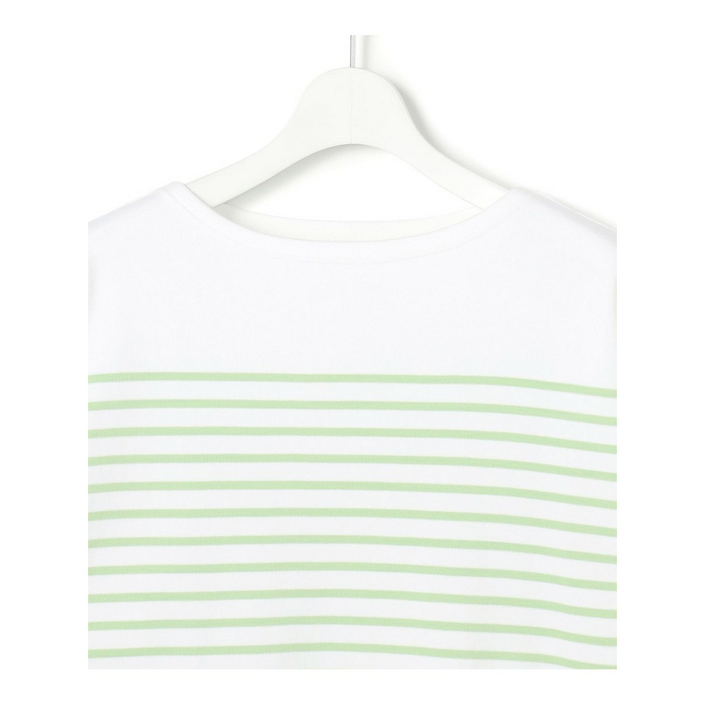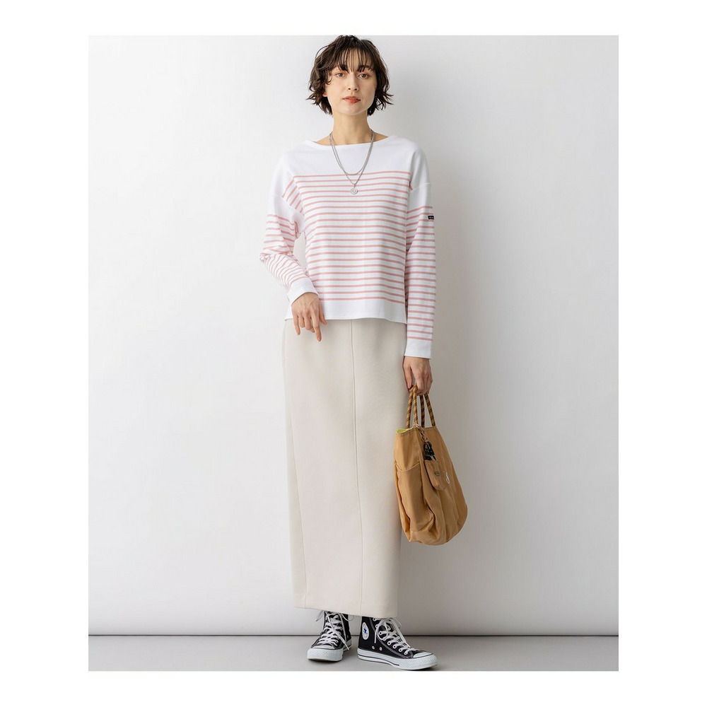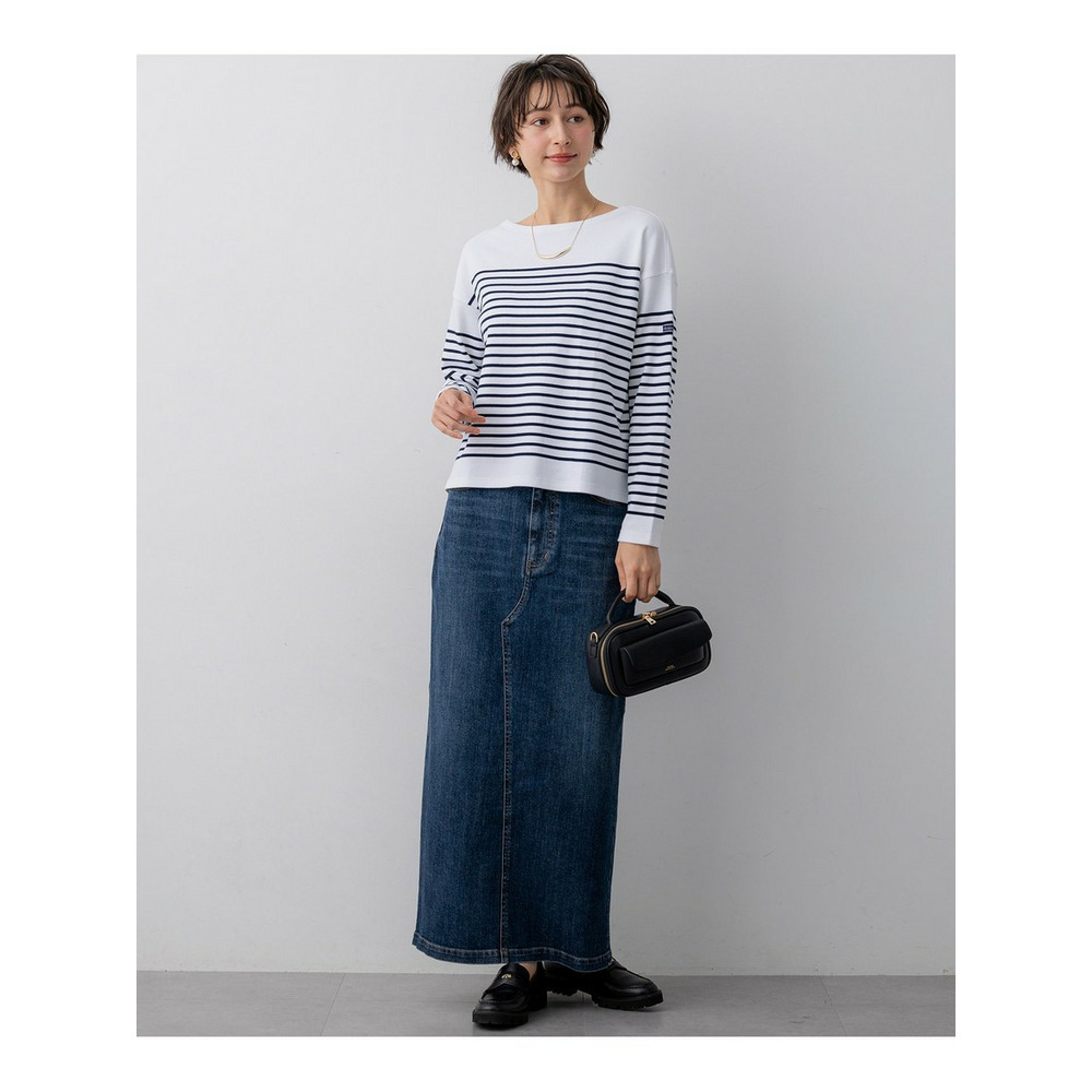 フランスの老舗ブランド『Armor-lux(アルモリュクス)』の素材を使用した、洗練された印象のボーダーカットソーです。23区オリジナルの細めのパネルボーダー柄が、顔周りをすっきりと見せ、カジュアルな中にも女性らしい上品さを演出します。ボトムスを選ばない絶妙なクロップド丈に仕上げており、パンツスタイルですっきりとまとめるのはもちろん、ボリュームのあるスカートと合わせてもバランス良く着こなしていただけます。休日のリラックススタイルから、きれいめなボトムスと合わせたお出かけシーンまで、幅広く活躍する一枚です。カラーは、フェミニンなピンク(#112)、鮮やかなアップルグリーン(#162)、清涼感のあるブルー(#172)、ベーシックで着回しやすいネイビー(#175)の4色展開です。