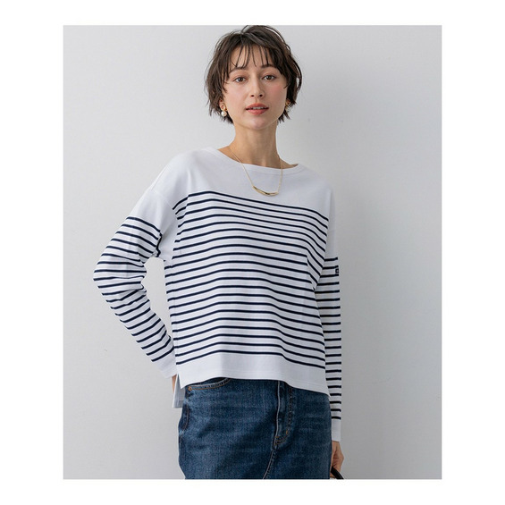 マリンウェアを得意とするファクトリーブランドならではの、上質な素材を使用しています。ふっくらとした適度な厚みと、なめらかで柔らかな肌触りが特徴です。体のラインを拾いすぎず、一枚でも安心して着用いただけるしっかりとした生地感で、快適な着心地を叶えます。