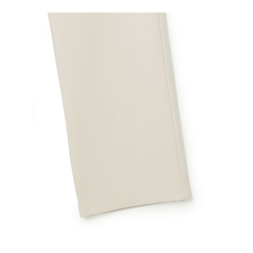 ドライタッチでさらりとした肌触りが特徴の生地です。高密度に織り上げることによって、繊細できれいな表面と適度なドレープ性があり、シワになりにくい素材です。またストレッチ性と程良いハリ感があり、体のラインをひろわず快適な穿き心地が特徴です。