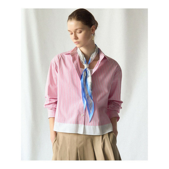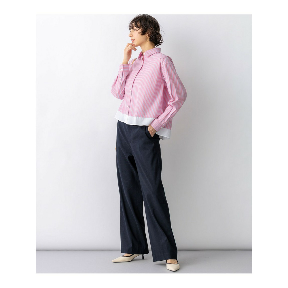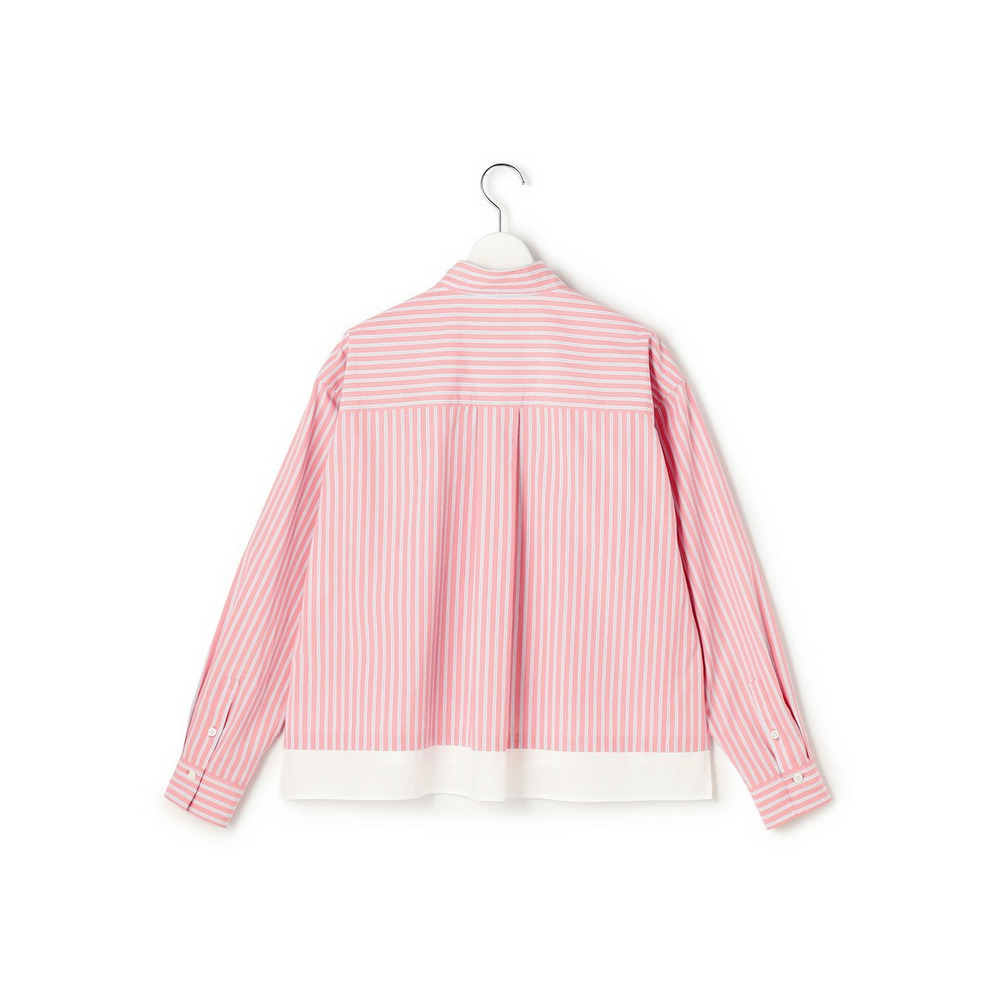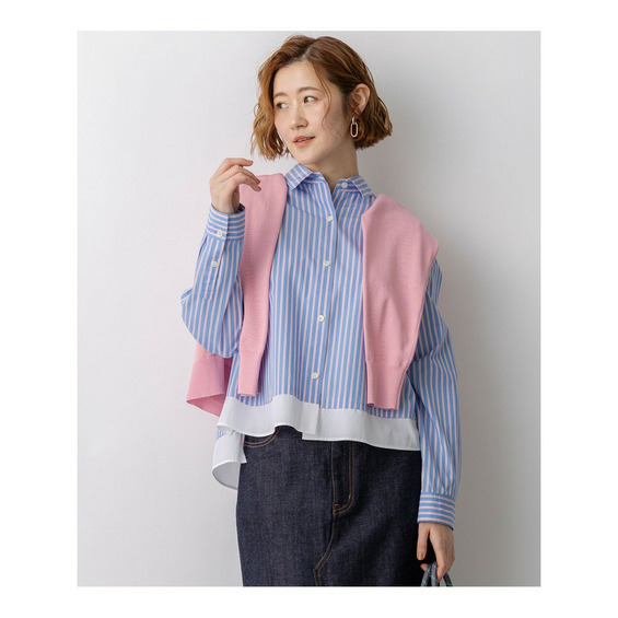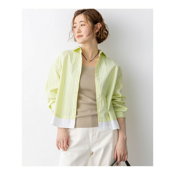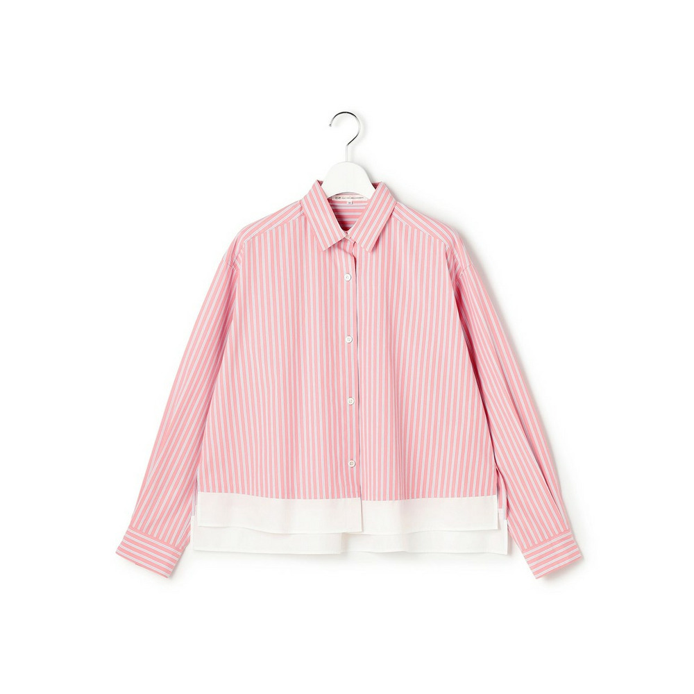 イタリアの老舗ファブリックメーカーCANCLINI社の上質な素材を使用した、洗練された大人のストライプシャツが登場しました。程よいゆとりとコンパクトな丈感が、着こなしに旬のバランスをもたらします。 ゆったりとしたレギュラーカラーが抜け感を演出し、リラックス感のある着心地です。特徴的なのは、ストライプ柄のボディの裾に無地の生地を切り替えたデザイン。このさりげないアクセントが、一枚で着ても様になる洗練された印象を与えます。コンパクトなクロップド丈は、ワイドパンツやボリュームのあるスカートとも相性抜群で、スタイルアップ効果も期待できます。前を開けて羽織りとしてもお使いいただけ、Tシャツやタンクトップの上にさらりと羽織るだけで、こなれたカジュアルスタイルが完成します。オンオフ問わず幅広いシーンで活躍する、着回し力に優れたアイテムです。 カラーは、顔色を明るく見せる華やかなピンク×サックスストライプ(#112)、爽やかで清潔感のあるイエロー×サックスストライプ(#140)、上品で洗練された印象のサックス×ピンクストライプ(#172)の3色展開です。