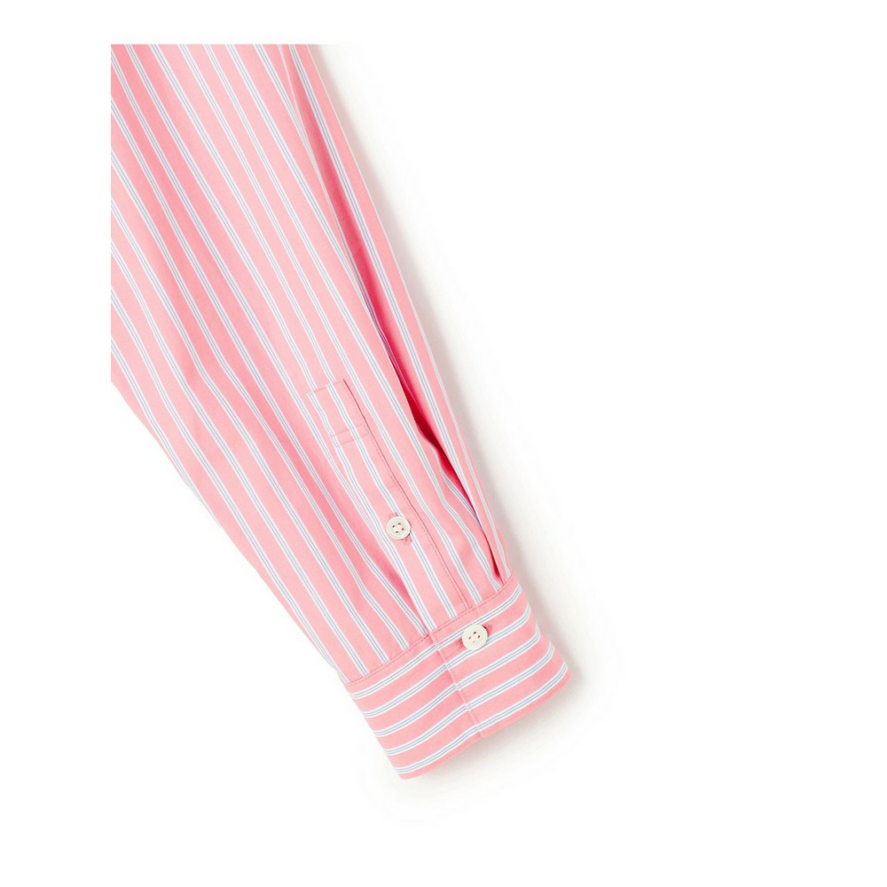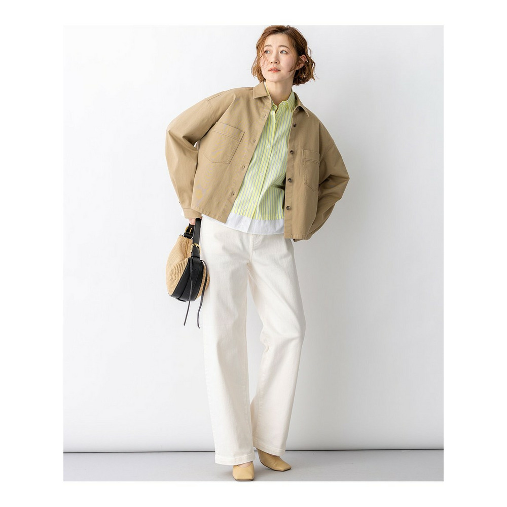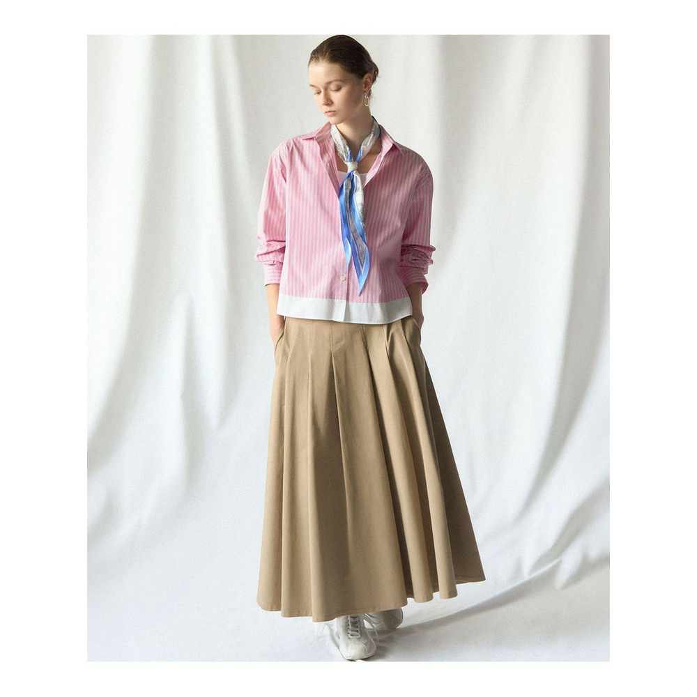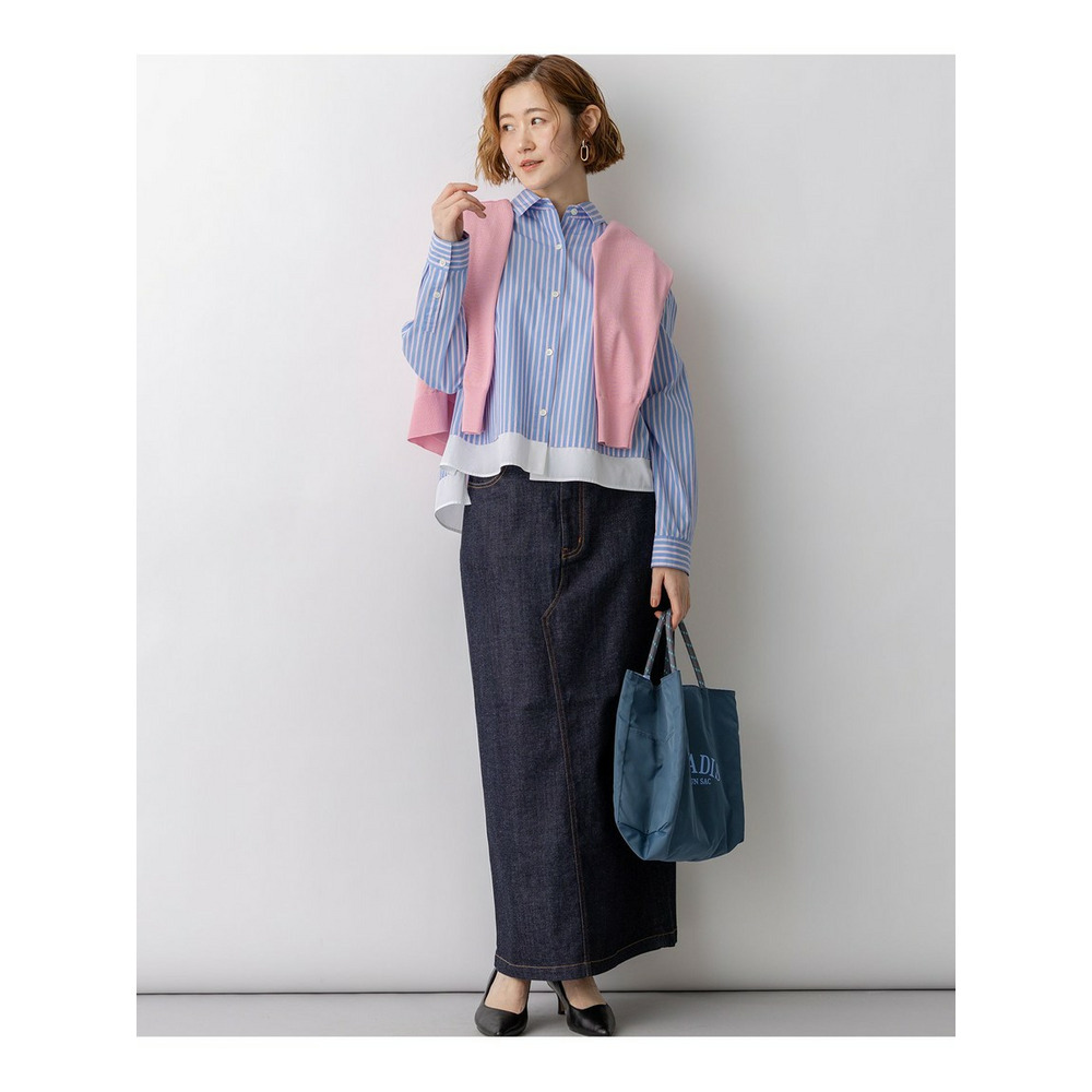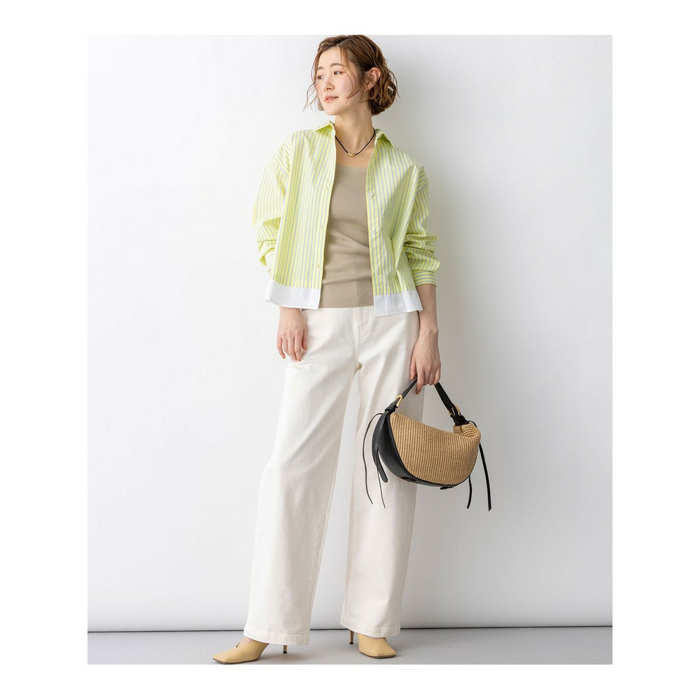 イタリアの老舗ファブリックメーカーCANCLINI社の上質な素材を使用した、洗練された大人のストライプシャツが登場しました。程よいゆとりとコンパクトな丈感が、着こなしに旬のバランスをもたらします。 ゆったりとしたレギュラーカラーが抜け感を演出し、リラックス感のある着心地です。特徴的なのは、ストライプ柄のボディの裾に無地の生地を切り替えたデザイン。このさりげないアクセントが、一枚で着ても様になる洗練された印象を与えます。コンパクトなクロップド丈は、ワイドパンツやボリュームのあるスカートとも相性抜群で、スタイルアップ効果も期待できます。前を開けて羽織りとしてもお使いいただけ、Tシャツやタンクトップの上にさらりと羽織るだけで、こなれたカジュアルスタイルが完成します。オンオフ問わず幅広いシーンで活躍する、着回し力に優れたアイテムです。 カラーは、顔色を明るく見せる華やかなピンク×サックスストライプ(#112)、爽やかで清潔感のあるイエロー×サックスストライプ(#140)、上品で洗練された印象のサックス×ピンクストライプ(#172)の3色展開です。