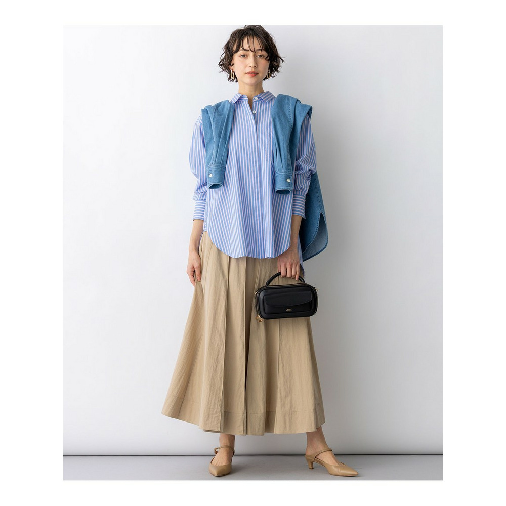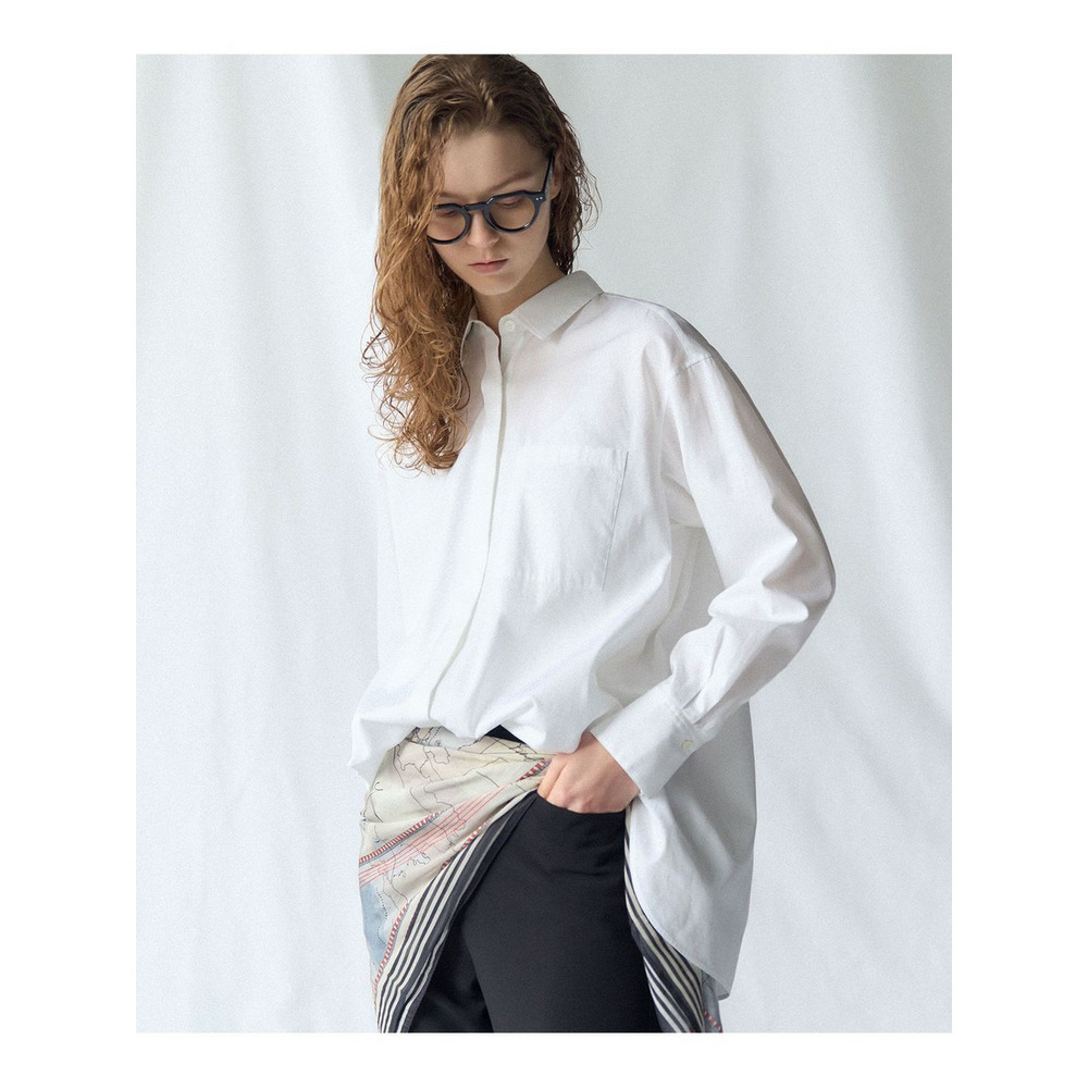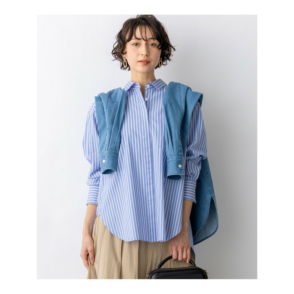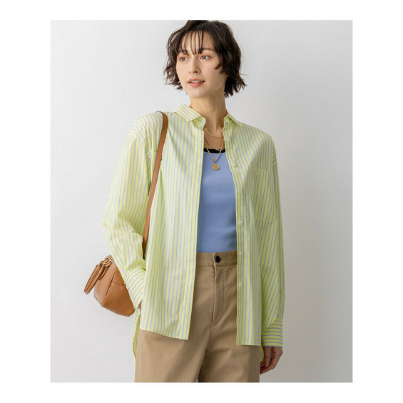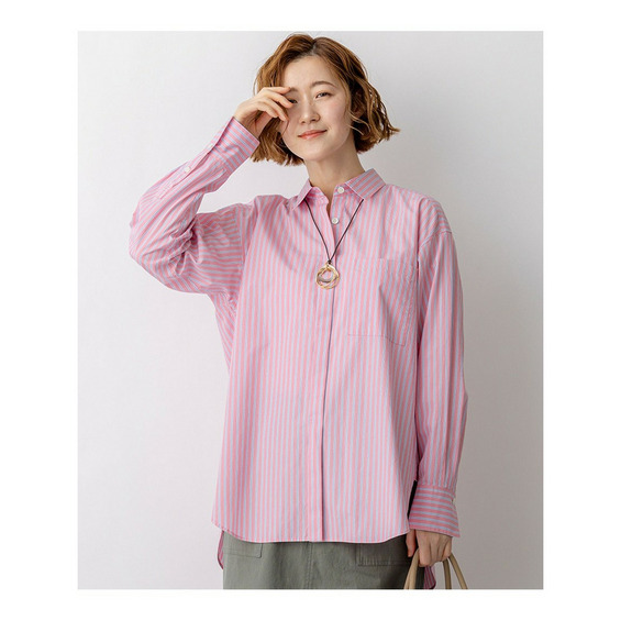イタリアの老舗ファブリックメーカーCANCLINI社の上質な素材を使用した、洗練された大人のレギュラーカラーシャツが登場しました。ゆったりとしたルーズフィットなシルエットながら、バックスタイルに美しいフォルムが出るように計算されており、どこから見ても抜かりない着こなしを叶えます。 襟を少し後ろに抜いて着こなせば、こなれた大人の女性らしい雰囲気を演出できます。今年らしいフレアパンツやワイドパンツと合わせれば、洗練されたカジュアルスタイルが完成。Tシャツなどの上に羽織りとしても活躍し、着こなしの幅が広がります。オンオフ問わず、幅広いシーンで上品なスタイリングをお楽しみいただけます。一枚で上品に、レイヤードでカジュアルにと、様々な表情をお楽しみいただけます。カラーは、清潔感のあるホワイト(#001)、爽やかな印象のブルー(#070)、顔色を明るく見せるピンク×サックスストライプ(#112)、華やかなイエロー×サックスストライプ(#140)、そして澄んだ空のようなサックス×ピンクストライプ(#172)の5色展開です。