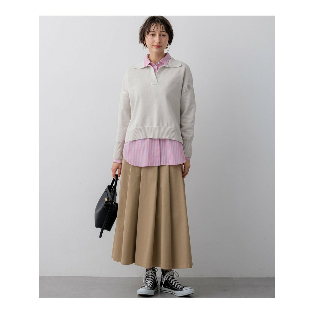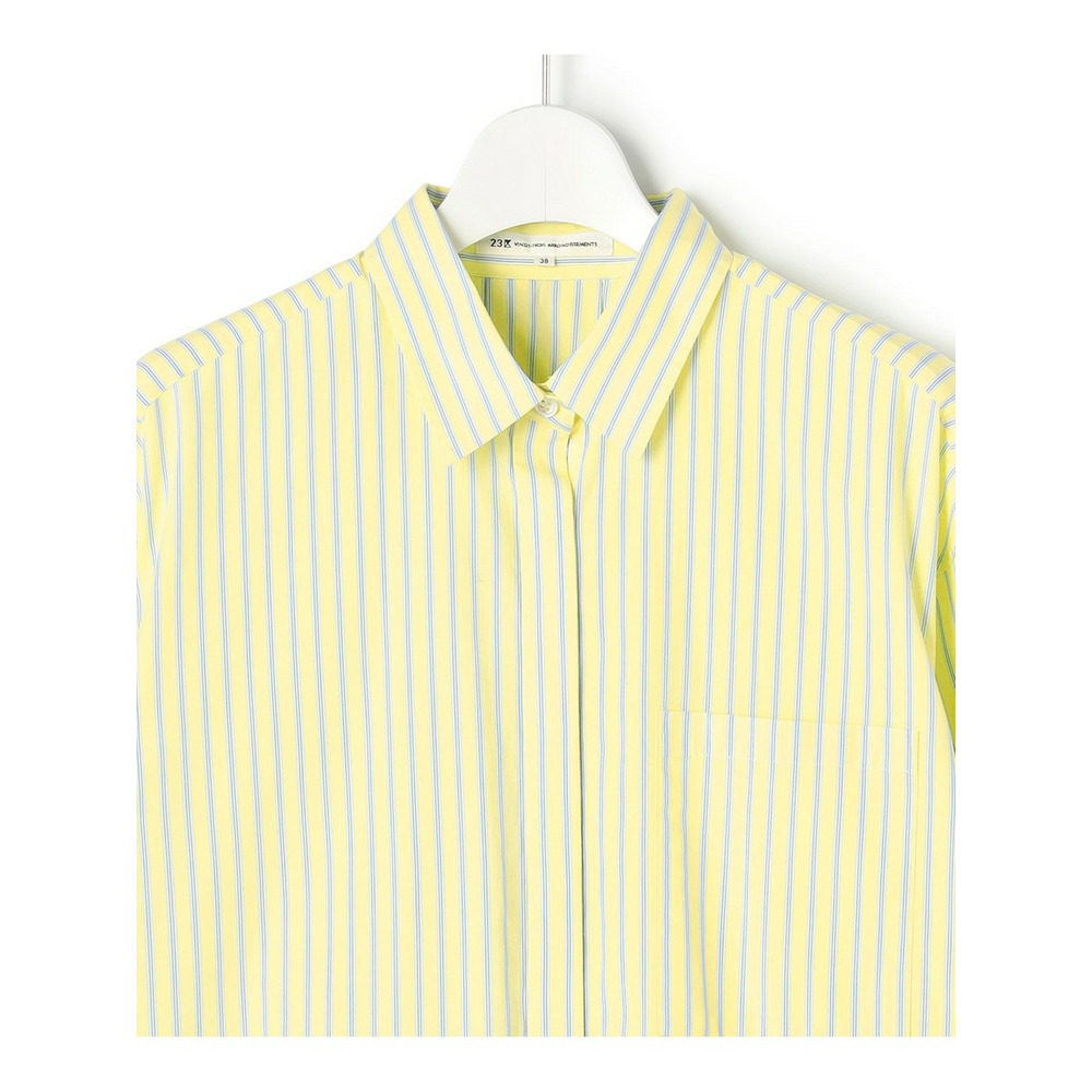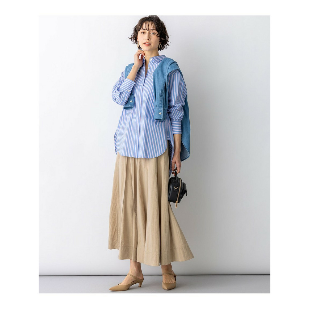 イタリアの老舗ファブリックメーカーCANCLINI社の上質な素材を使用した、洗練された大人のレギュラーカラーシャツが登場しました。ゆったりとしたルーズフィットなシルエットながら、バックスタイルに美しいフォルムが出るように計算されており、どこから見ても抜かりない着こなしを叶えます。 襟を少し後ろに抜いて着こなせば、こなれた大人の女性らしい雰囲気を演出できます。今年らしいフレアパンツやワイドパンツと合わせれば、洗練されたカジュアルスタイルが完成。Tシャツなどの上に羽織りとしても活躍し、着こなしの幅が広がります。オンオフ問わず、幅広いシーンで上品なスタイリングをお楽しみいただけます。一枚で上品に、レイヤードでカジュアルにと、様々な表情をお楽しみいただけます。カラーは、清潔感のあるホワイト(#001)、爽やかな印象のブルー(#070)、顔色を明るく見せるピンク×サックスストライプ(#112)、華やかなイエロー×サックスストライプ(#140)、そして澄んだ空のようなサックス×ピンクストライプ(#172)の5色展開です。