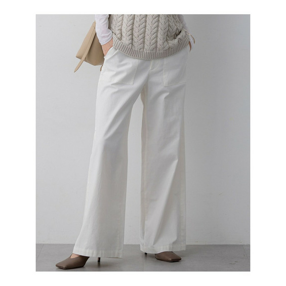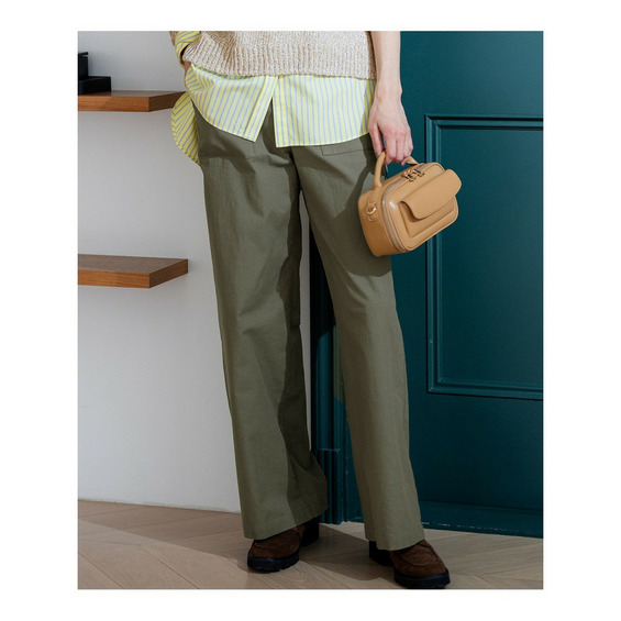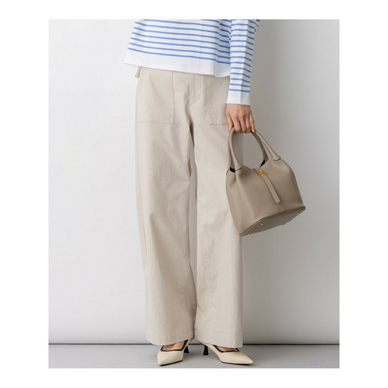 ■デザイン人気のベイカーパンツを、より快適で美しいバランスにアップデートしました。腰回りに少しゆとりを持たせることで、リラックスした穿き心地を実現しつつ、ワイドストレートのシルエットがすっきりとした印象を与えます。ヒップから裾にかけて程よいボリューム感があり、着回し力抜群。フロントのステッチ入りポケットがアクセントになり、トップスをインしたスタイルもメリハリよく決まります。季節を問わない素材感で、Tシャツやニットベストと合わせたカジュアルスタイルから、シャツやブラウスを合わせたきれいめな着こなしまで幅広く活躍します。カラーは、清潔感のあるホワイト(#001)、こなれた印象のカーキ(#054)、爽やかなアクセントになるブルー(#070)、ナチュラルで合わせやすいベージュ(#133)、シックで落ち着いたネイビー(#175)の5色展開です。