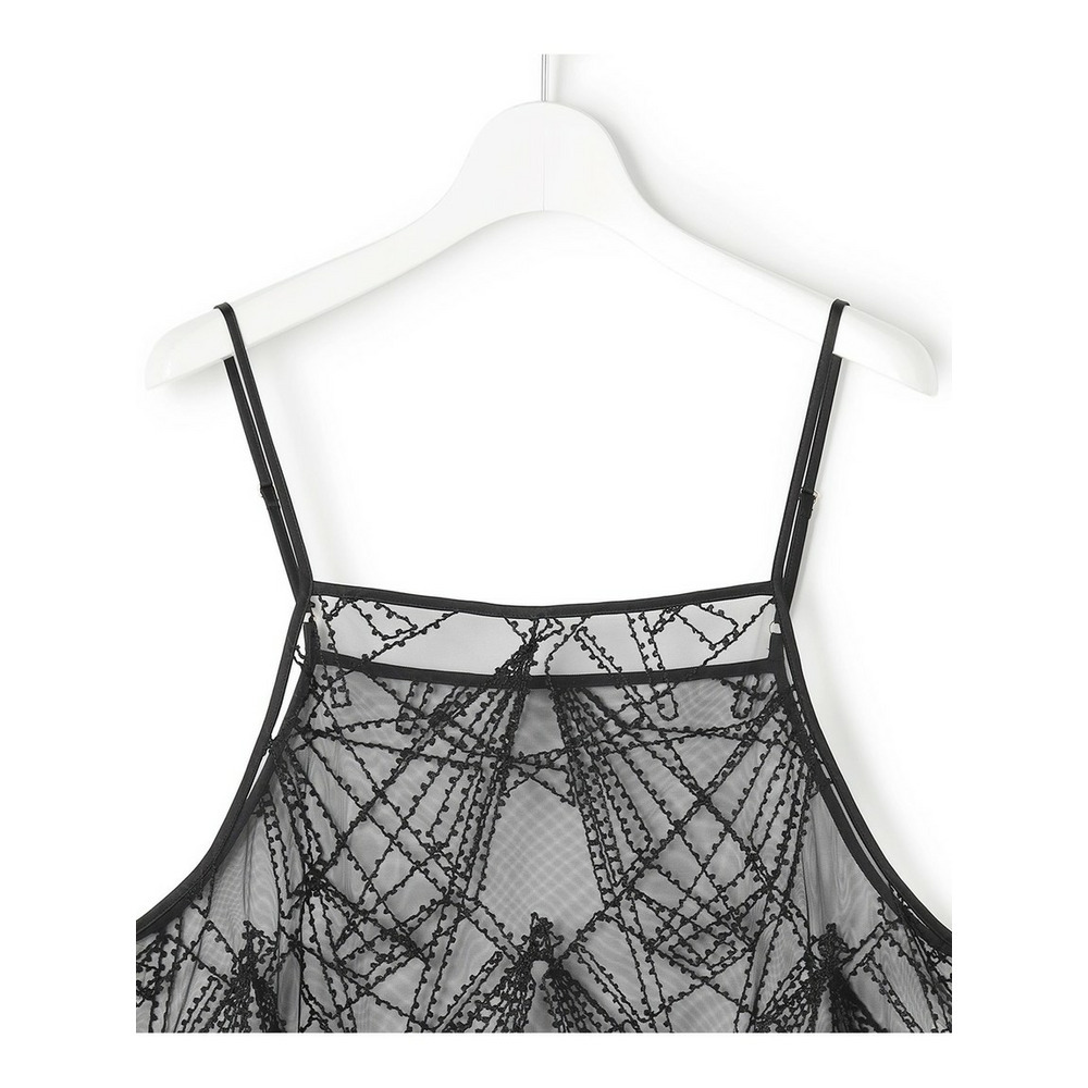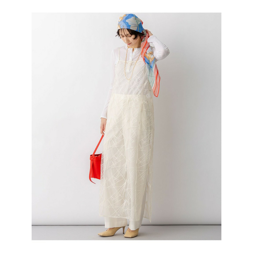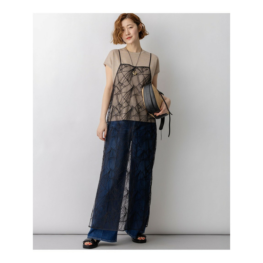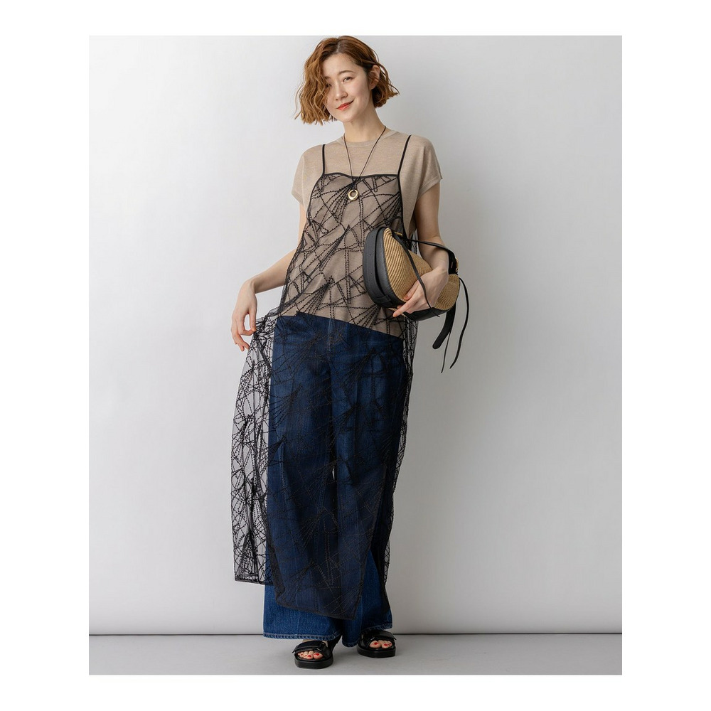 女性らしいレイヤードスタイルを存分に楽しめる、総レースのキャミソールワンピース。繊細なチュール素材に、立体感のある刺繍を施した贅沢な一枚。身幅やヒップ周りには程よくゆとりを持たせているため、シンプルなTシャツやデニムスタイルの上にさらりと重ねるだけで、ぐっと洗練された印象に。肩紐は長さ調整ができるので、お好みの着丈で着用いただけます。またカラーは、優しく上品な印象で馴染みの良いアイボリー(#002)と、シックでモードな雰囲気をプラスするブラック(#005)の2色展開です。