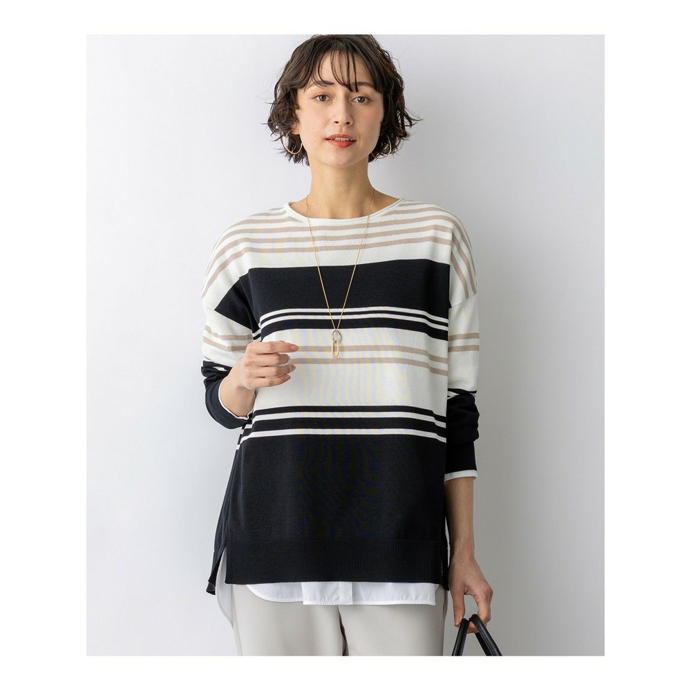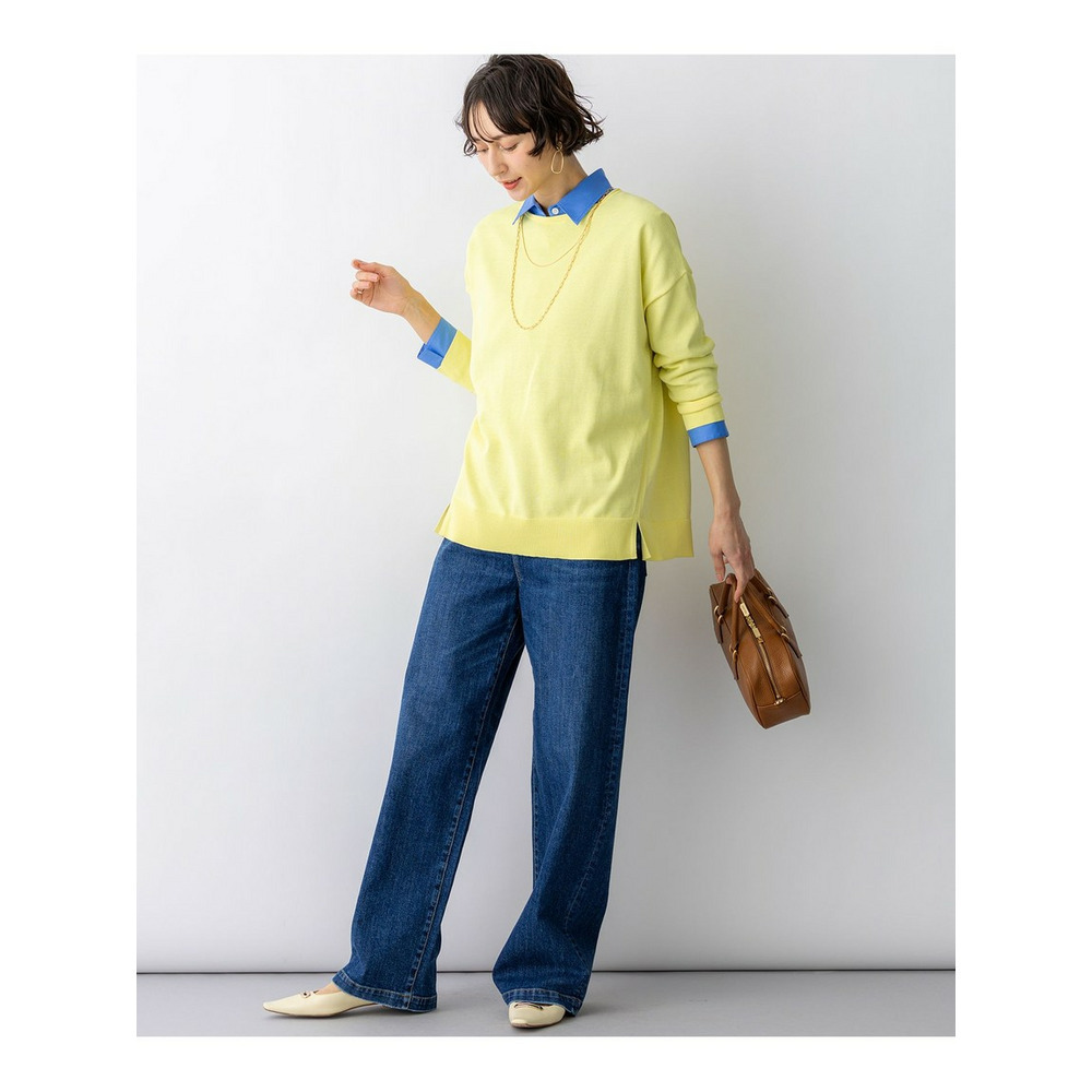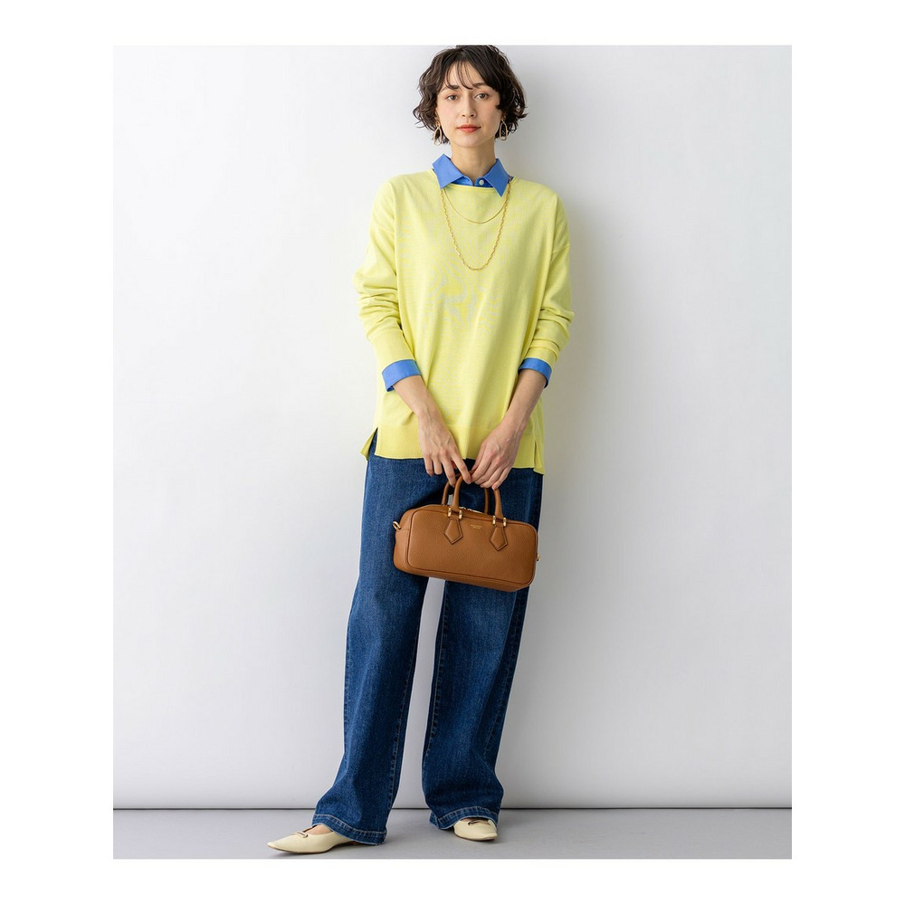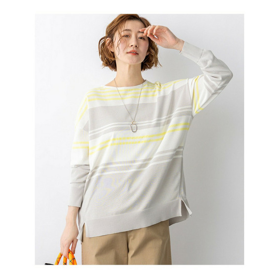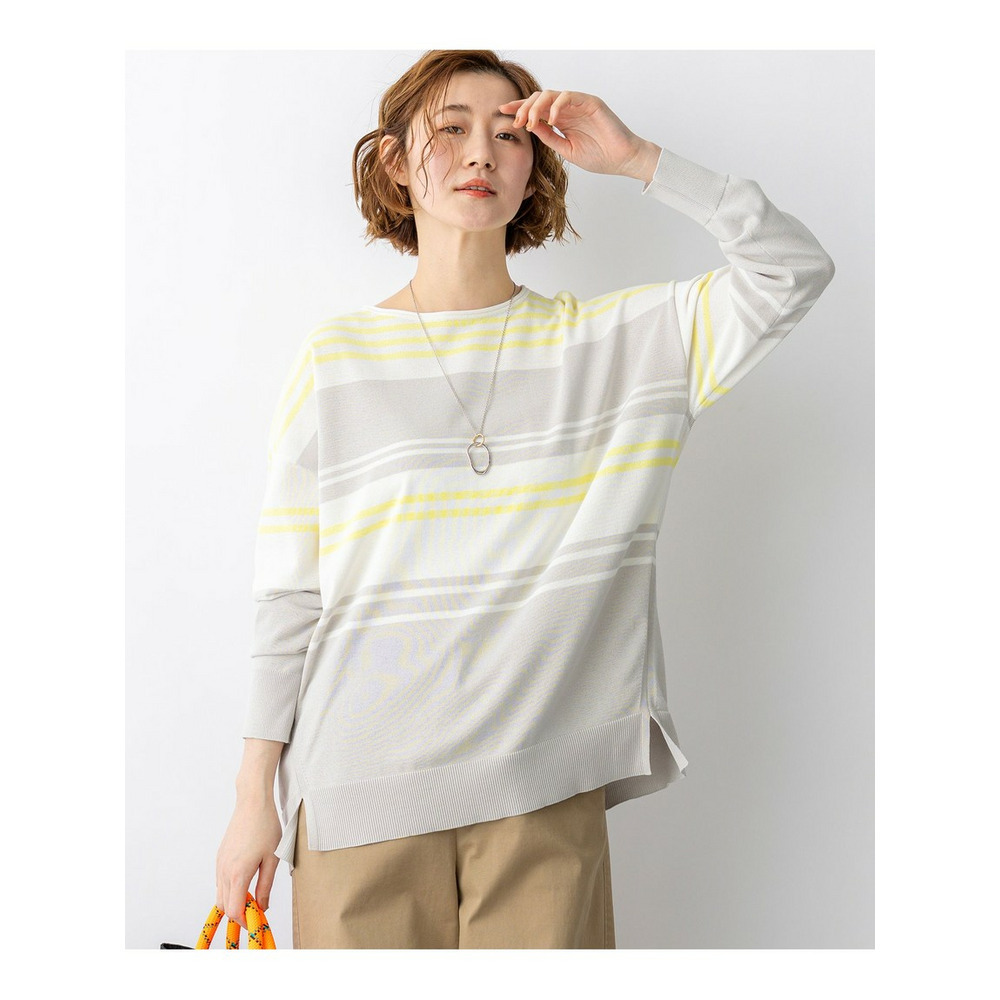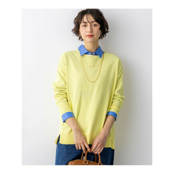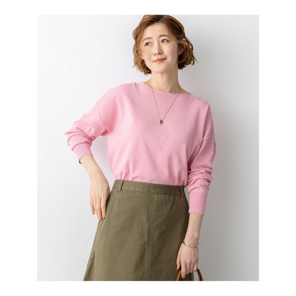 天竺で編みたてたボートネックのオーバーサイズプルオーバーです。コットンポリエステルの程よいハリ感があり、体のラインを拾わないストンとしたきれいなシルエットで着ていただけます。しっかりとおしりが隠れるチュニックレングスなので、タイトなボトムスとのスタイリングも安心です。脇線を少し前に振って裾にスリットを入れることで、軽やかな印象に仕上げました。襟元のくるんとさせた仕様もさりげないポイントです。型崩れしにくい素材感と、さくっと着られてさまになるデザインは、デイリー使いにぴったりなアイテムです。カラーは、コーディネートのアクセントになるピンク(#012)、やわらかな雰囲気のベージュ(#033)、ヘルシーな雰囲気のイエロー(#040)、軽やかな配色のブラック×ベージュ(#105)、淡いトーンで落ち着いた印象のベージュ×イエロー(#133)、明るいピンクが目を引くネイビー×ピンク(#175)の6色展開です。