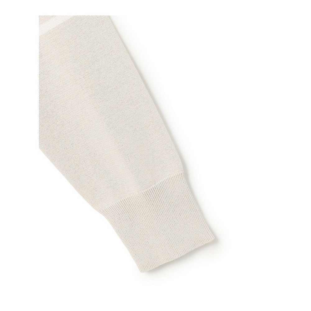 コンパクト綿とポリエステルの交撚糸を使用しています。コンパクト綿は紡績の段階で毛羽を内側に入れ込むことにより、表面の毛羽立ちを抑えた仕上がりにしています。ポリエステルサイドには、十字断面繊維による軽さが特徴のリサイクルポリエステルを使用しています。