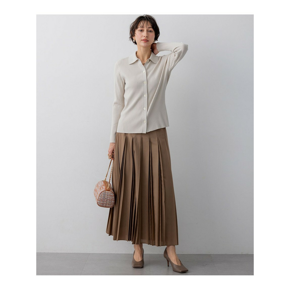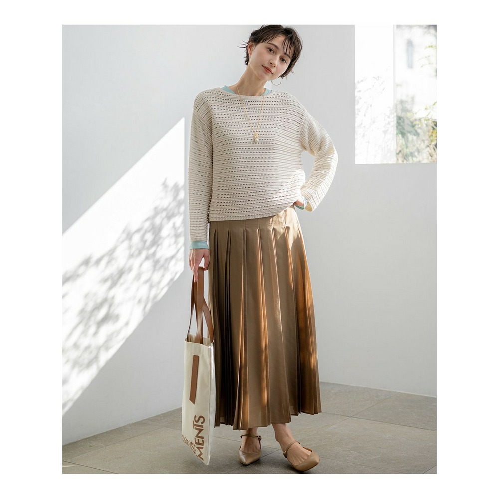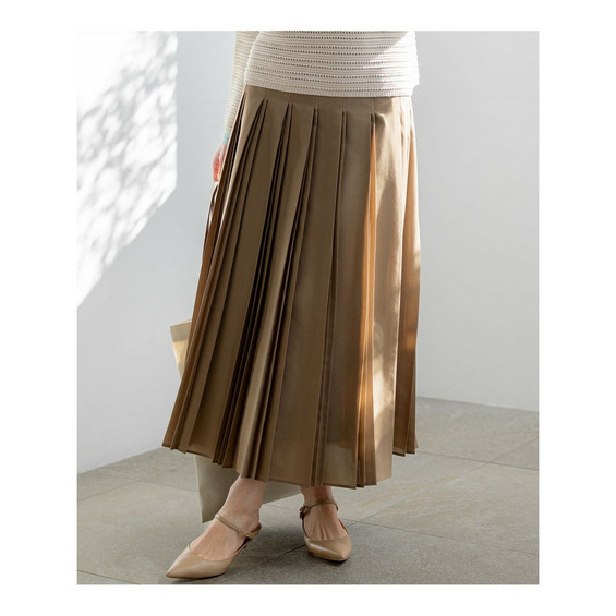 上品な光沢と揺れ感が魅力。大人のためのデザインプリーツスカート