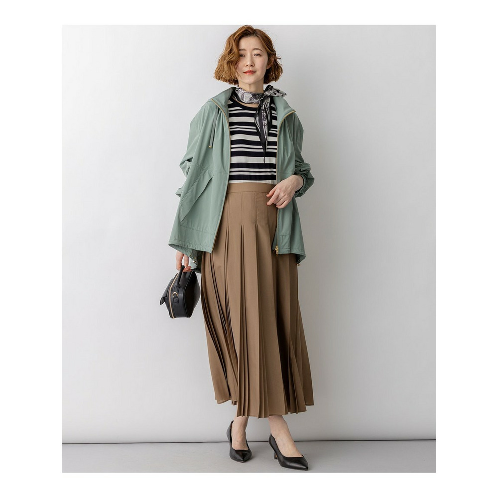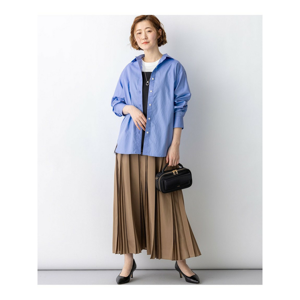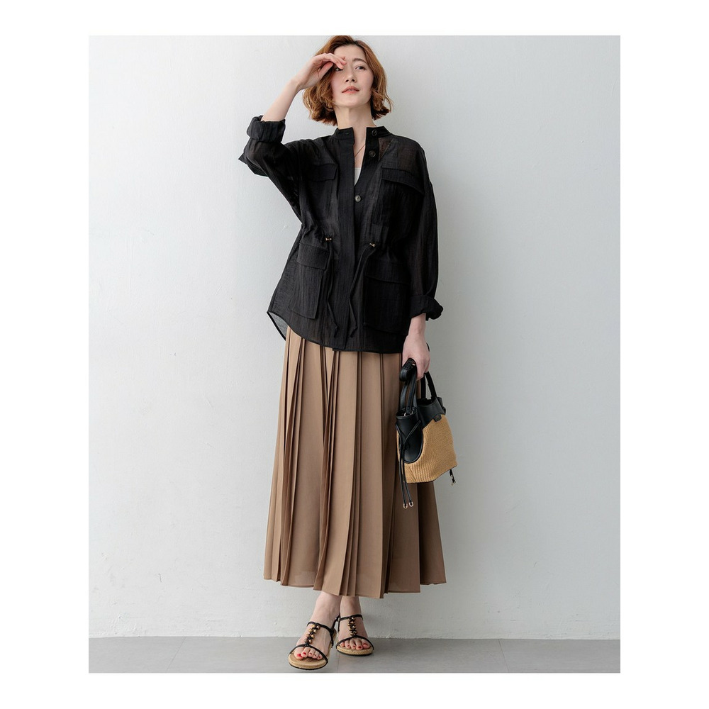 重なり合うように配されたプリーツが、立体的で存在感のあるシルエットを作るデザインスカートです。動くたびにしなやかに揺れ、エレガントな余韻を残します。ウエストのフロント部分はすっきりとした仕様に仕上げており、トップスをインした際も洗練された印象に。ブラウスやジャケットを合わせればオフィスシーンに馴染むきれいめスタイルに、ゆったりとしたニットやカットソーを合わせれば抜け感のある休日スタイルにと、合わせるトップス次第で幅広いコーディネートを楽しめます。カラーは、シックでモードな印象のブラック(#005)と、女性らしく柔らかなニュアンスのモカ(#030)の2色展開です。