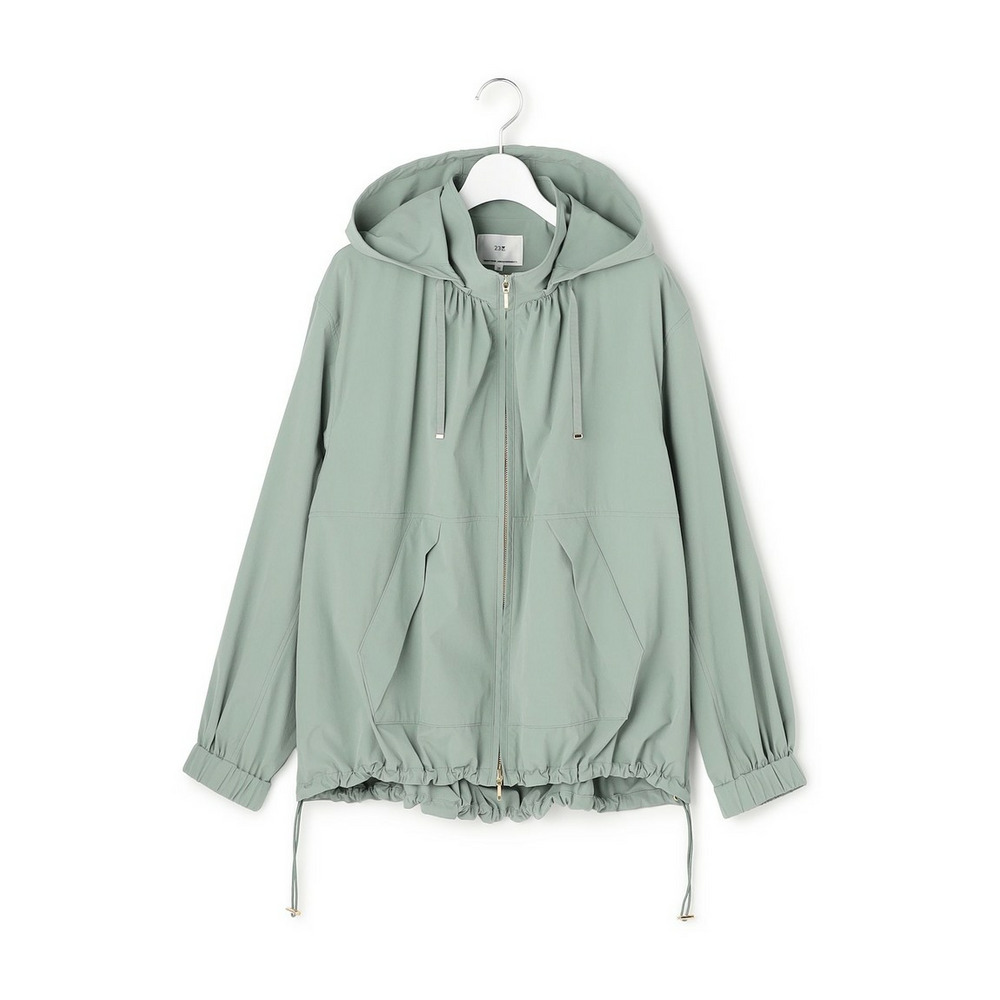 スポーティーなアノラックディテールのポケットがアクセントになる、洗練されたブルゾンです。取り外し可能なフード付きで、フードを外せばすっきりとしたスタンドカラーとしてもお楽しみいただける2WAY仕様。その日の気分やコーディネートに合わせて印象を変えられます。ドルマンスリーブのようなゆったりとした袖のボリュームが、女性らしいフェミニンな印象をプラス。全体的にゆとりのあるシルエットながらも、計算されたデザインでバランス良く着こなせます。裾にはスピンドルが施されており、絞ることでシルエットに変化をつけられ、様々なボトムスとの相性も抜群です。季節の変わり目の羽織りとして、また旅行やレジャーシーンにもおすすめです。カラーは、シックで着回し力抜群のブラック(#005)、柔らかな雰囲気で合わせやすいベージュ(#033)、カジュアルながらも洗練されたスタイルに導くカーキ(#054)の3色展開です。