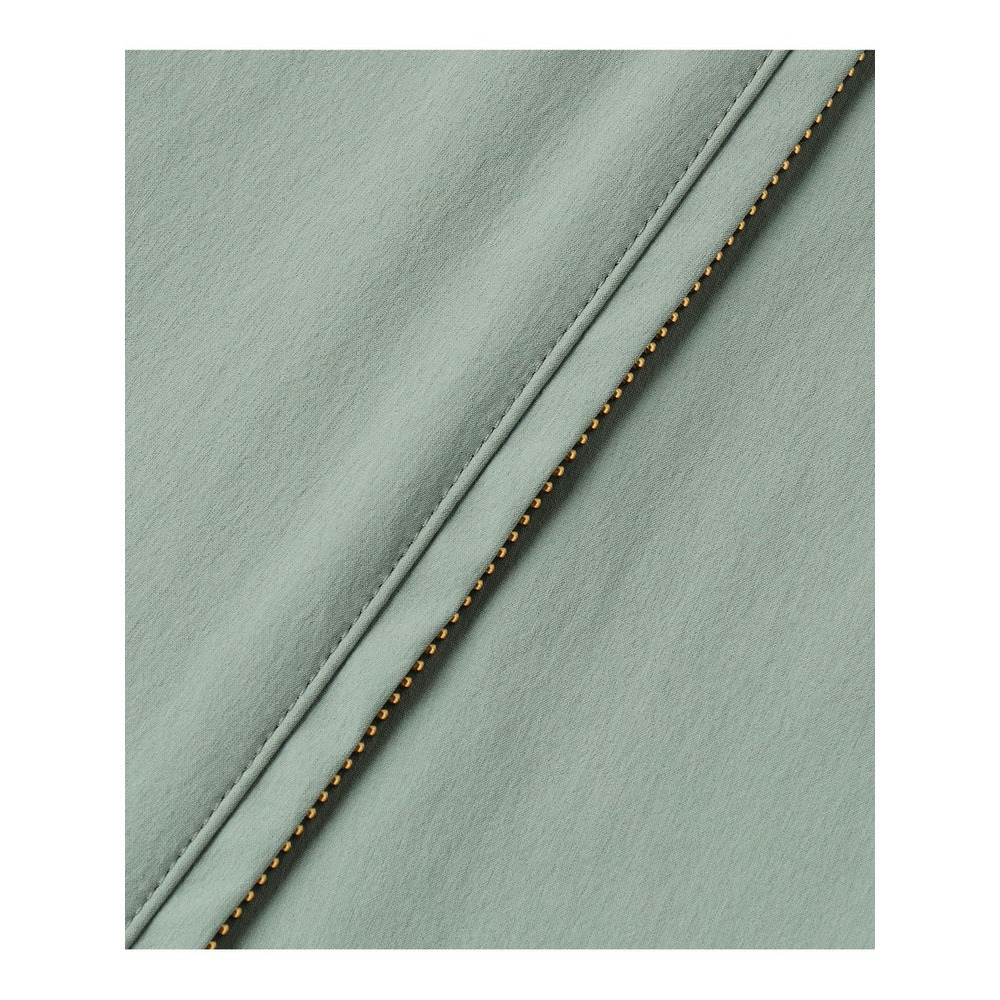 マットでさらりとした肌触りと、優れたストレッチ性が特徴のタフタ素材を使用しています。伸縮性のあるライクラ(ストレッチ)繊維に、光沢を抑えたナイロン糸を巻きつけることで、独特のハリ感と柔らかさを両立。体のラインを拾いにくい、快適な着心地を実現しました。さらに、撥水加工が施され、嬉しい機能性も兼ね備えています。