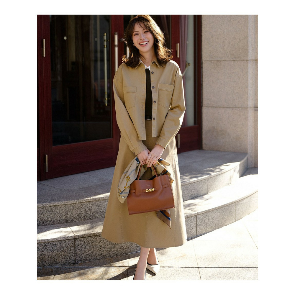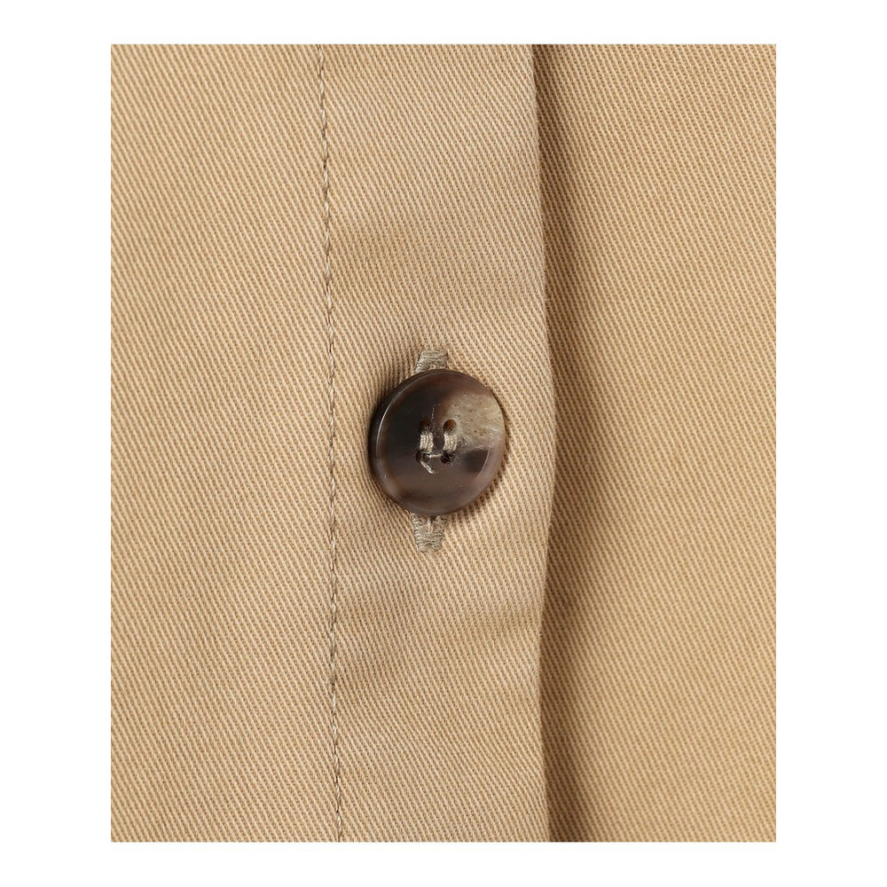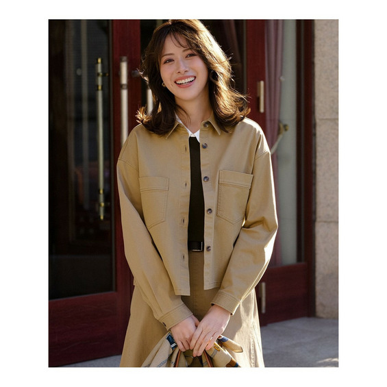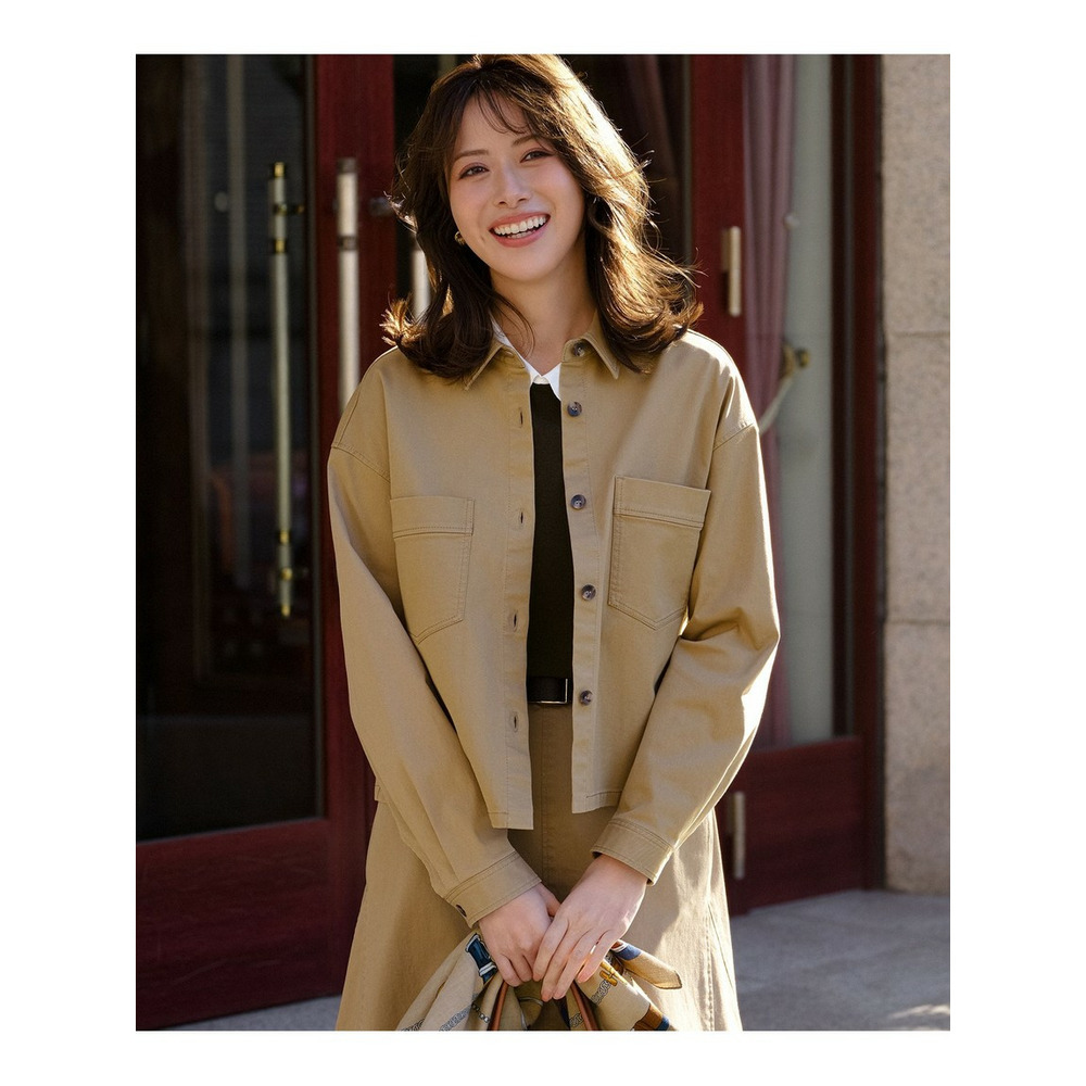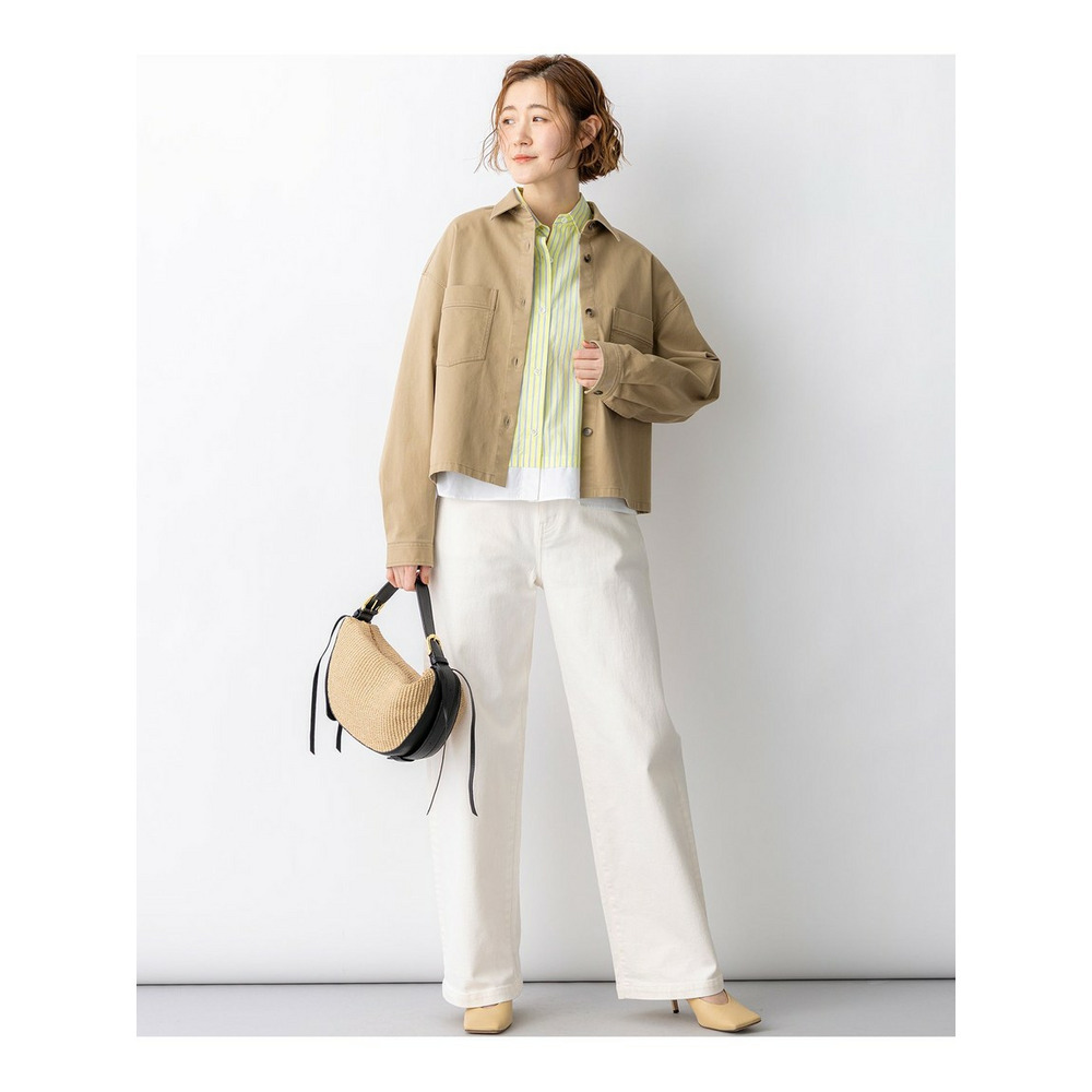 ショート丈でバランスが取りやすく、スタイルアップ効果も期待できるカジュアルチノシャツです。前立ての幅や大きめのポケットのディテールがアクセントとなり、一枚で着ても様になります。ジャケットライクできちんと感も持ち合わせているため、カジュアルすぎず大人の着こなしにマッチします。肌寒い日の羽織りとしてはもちろん、Tシャツやブラウスの上にサッと羽織るだけで、こなれた印象を演出できます。適度なレングス感で、スカート、パンツ、ワンピースなど、どんなボトムスとも相性が良く、着こなしの幅が広がります。 カラーは、どんなスタイルにも合わせやすい、上品で落ち着いた印象のベージュ(#033)の1色展開です。