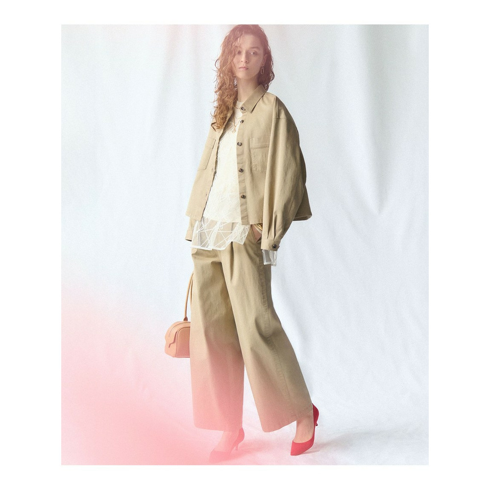 ▼同シリーズストレッチギャバ チノ ショート シャツジャケット(品番:BLWOLM0318)ストレッチギャバ チノ パンツ(品番:PRWOGA0214)ストレッチギャバ チノ スカート(品番:SKWOGA0214)ストレッチギャバ チノ タックフレアスカート(品番:SKWOLM0318)
