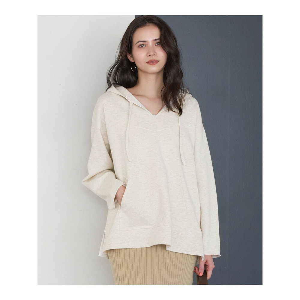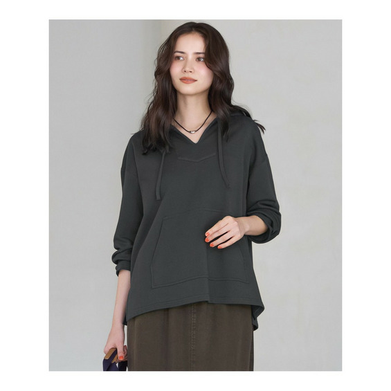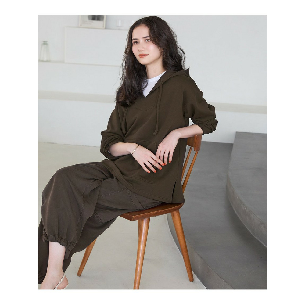 深めのスリットネックでラフにかぶって着られる、大人のためのメキシカンパーカーです。1930年代にアメリカ西海岸のサーファーたちが愛用したデザインをベースに、現代的な解釈でリラックス感あふれる一着に仕上げました。体のラインを拾わないゆったりとしたシルエットと、フロントのカンガルーポケットが程よい抜け感を演出します。カジュアルなアイテムですが、ガーメントツイルのスカートやホールガーメントリブニットのスカートと合わせることで女性らしさを残した洗練されたスタイリングが完成します。休日や気負わないお出かけシーンに最適です。カラーは柔らかくナチュラルな印象のアイボリー系(#002)と、洗練された都会的なグレー系(#004)に、落ち着いた深みのあるダークブラウン系(#035)の3色展開です。