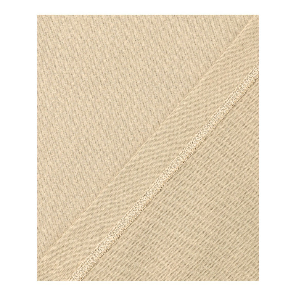 ■素材通常よりも細いコットンの糸を使用し、編み目を詰めて編み上げることで、厚すぎず程よい肉感に仕上げました。表面をきれいに整える加工を施しながらも、硬くなりすぎないようナチュラルな膨らみを持たせています。そのため、最初から体に馴染むようなヴィンテージ感のある風合いを楽しめるのが特徴です。
