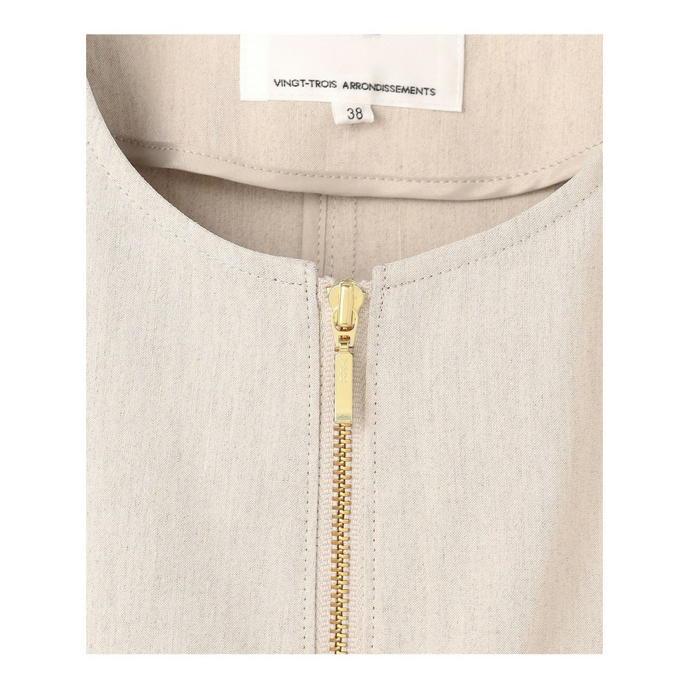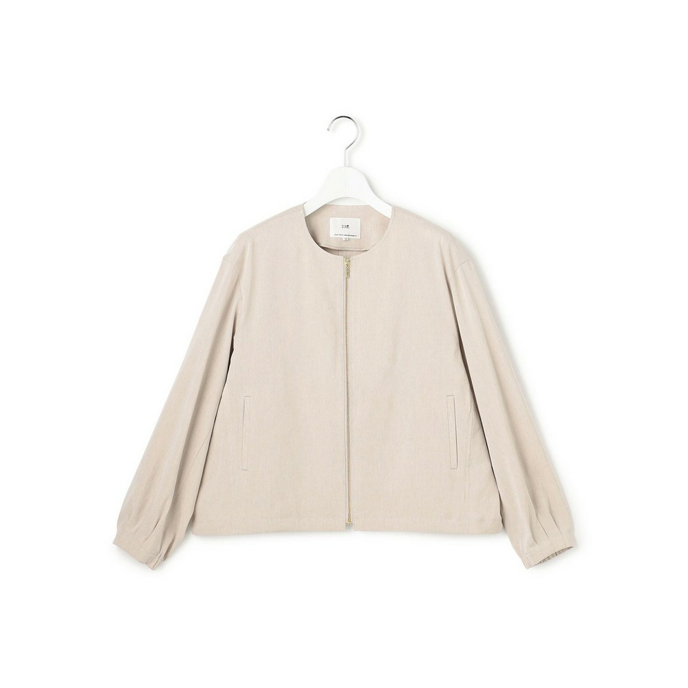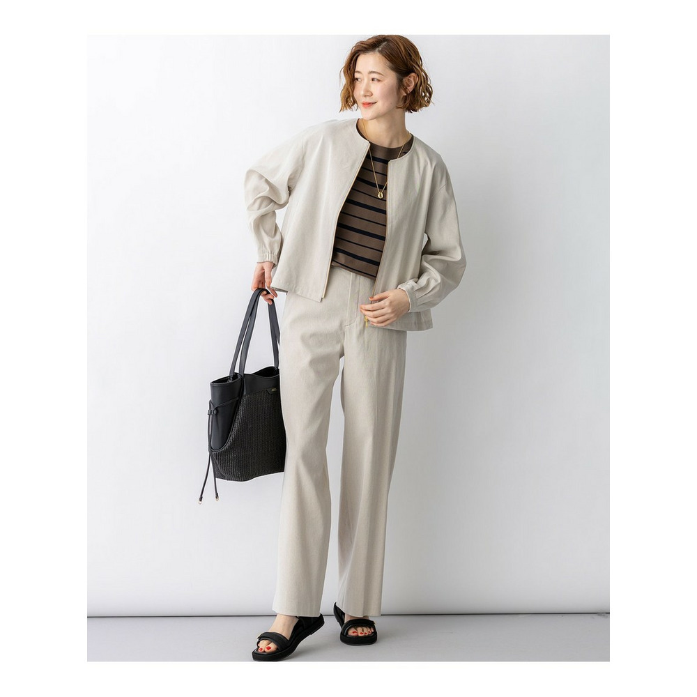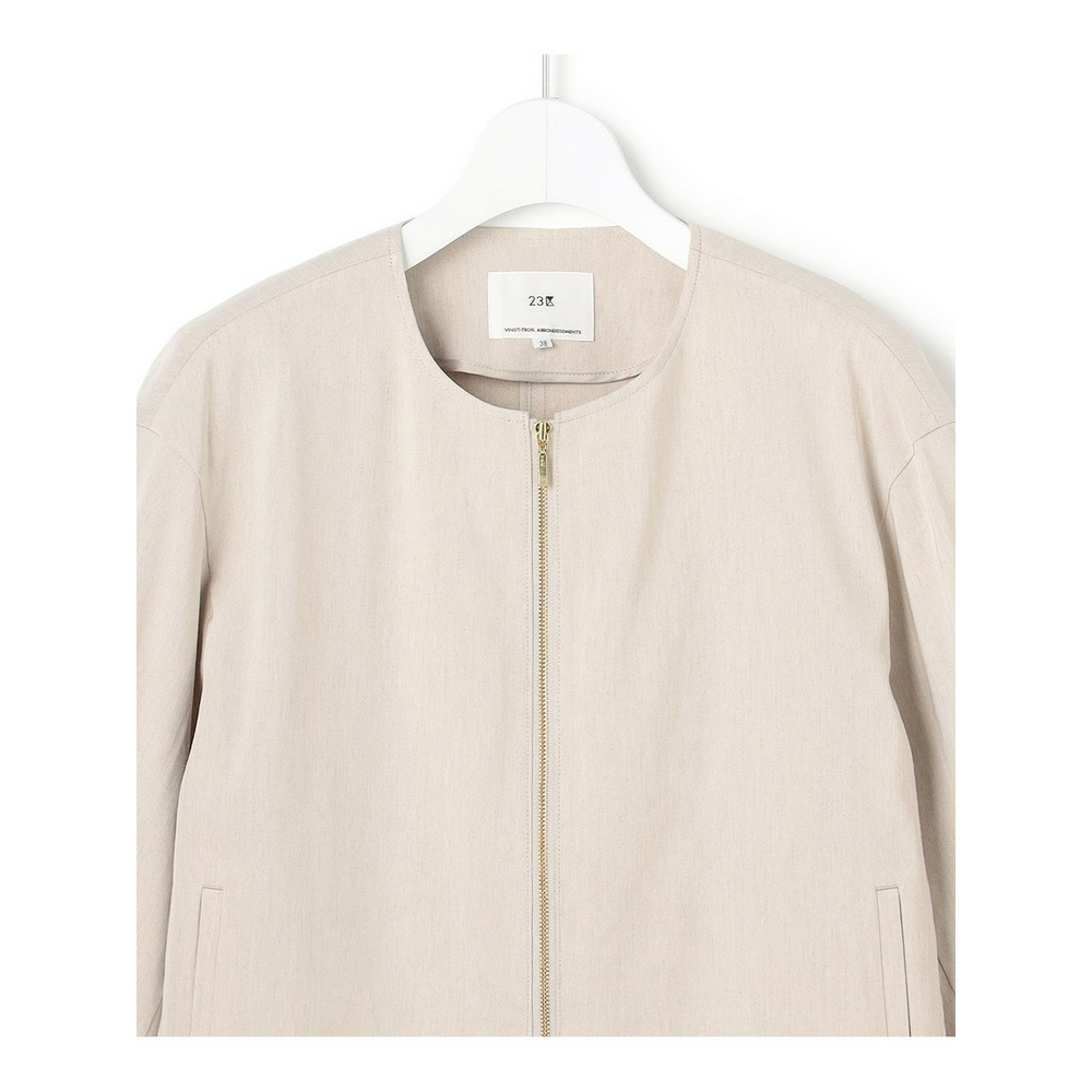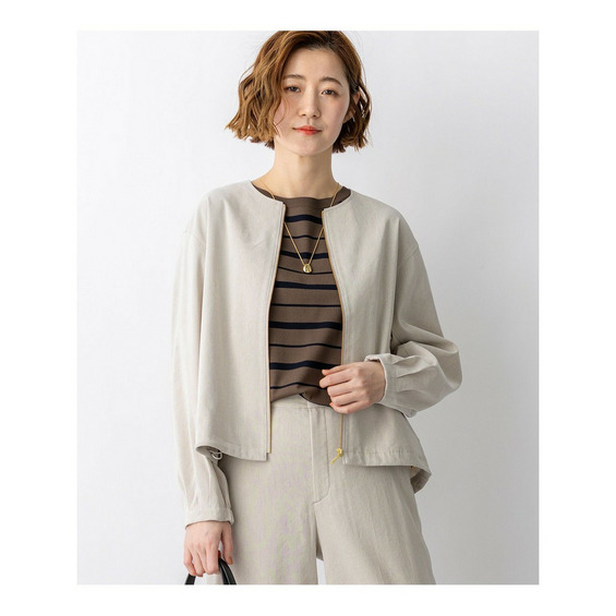 リネンレーヨンストレッチ ノーカラー ブルゾン