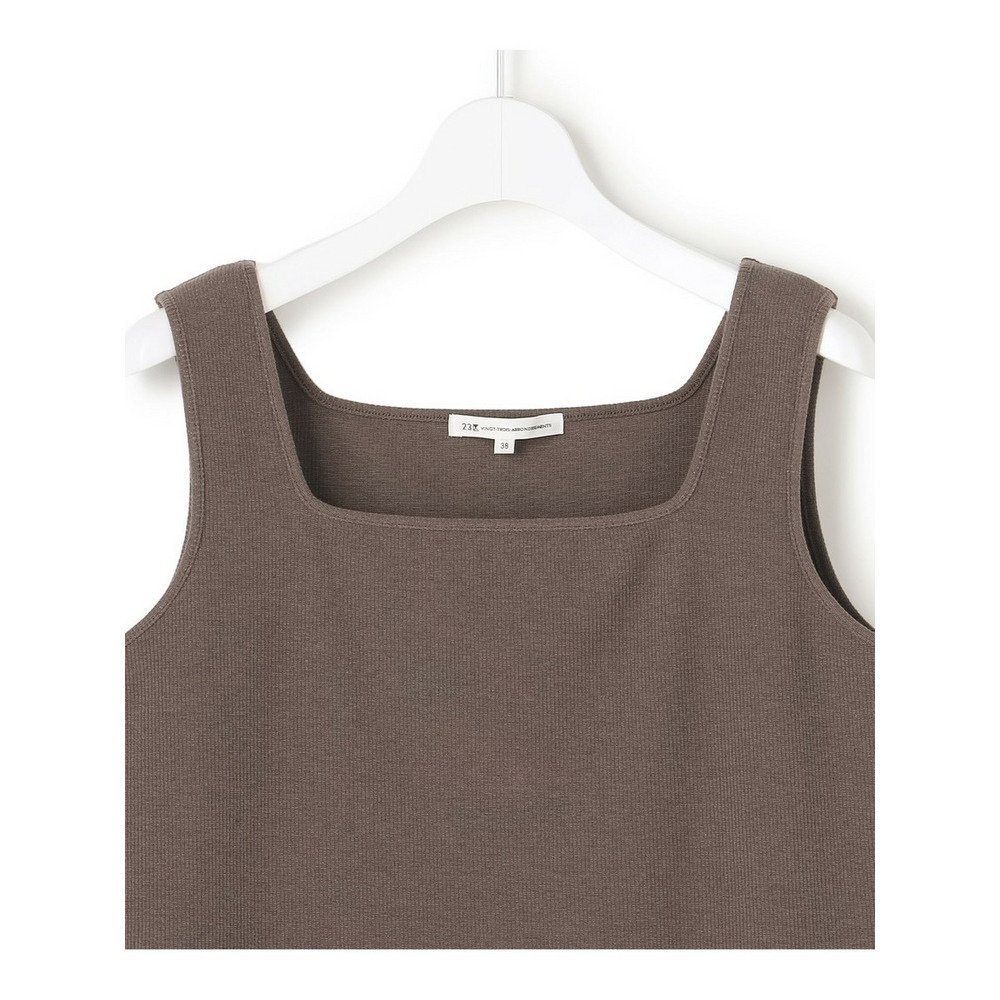 デコルテラインをすっきりと美しく見せる、スクエアネックのタンクトップです。下着の肩紐をカバーしつつ、全体を華奢に見せるシルエットに仕上げました。トレンドのシアー素材や透け感のあるトップスのインナーとして合わせても、ヘルシーで洗練された印象を与えます。シャツやカーディガンのインナーとしてはもちろん、ジャケットのインにも映える一枚です。カラーは、肌馴染みが良く明るい印象のアイボリー(#002)、クールで都会的な雰囲気のライトグレー(#003)、深みのある色合いが大人っぽいブラウン(#030)の3色展開です。