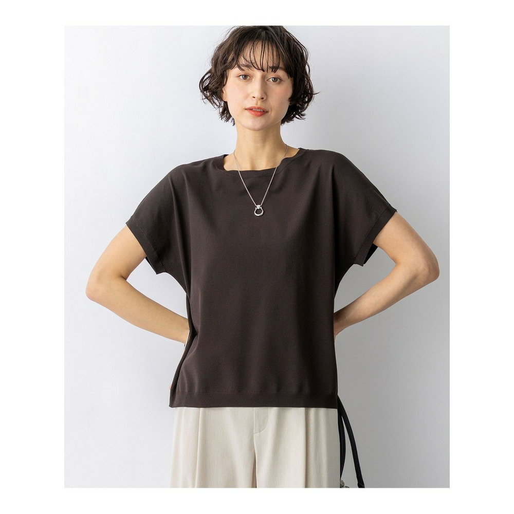 袖付けの切り替えをなくすことで、肩周りに優しくなじみ、ストレスフリーな動きやすさを実現したプルオーバーです。Tシャツのような感覚で気軽に着られますが、ニットならではの上品な素材感により、カジュアルになりすぎず大人っぽい印象を与えます。やや長めの着丈で、パンツにもスカートにも合わせやすく、裾はアウトでもインでもすっきりと決まります。程よいゆとりがありながらも、ジャケットのインナーとして着用してももたつかず、通勤スタイルにも最適です。カラーは、着回しやすいホワイト(#001)、ブラック(#005)、ネイビー(#075)などのベーシックカラーに加え、柔らかなピンク(#012)やスカイブルー(#072)、ニュアンス感のあるダークブラウン(#035)、さらにコーディネートのポイントになるオフ×ベージュ(#101)、ダークモカ×ネイビー(#130)、ネイビー×キャロット(#175)などのボーダー柄を含む、全10色の豊富なバリエーションで展開しています。