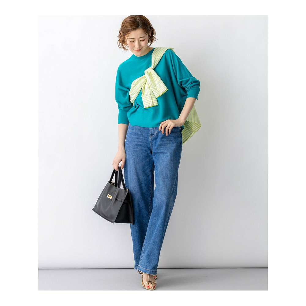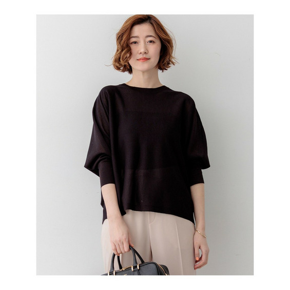 天竺編みで仕立てた7分袖のクルーネックドルマンプルオーバーです。身体のラインを拾わないゆったりとした女性らしいシルエットで、リラックス感がありつつも洗練された印象を叶えます。後ろ身頃にはボタンをあしらい、全て閉じてすっきりと着こなすのはもちろん、裾側のボタンを開けてインナーやシャツを見せるレイヤードスタイルもおすすめ。袖口にはスリットを施し、手元に抜け感をプラスしました。きれいめなパンツやスカートと合わせればオフィスシーンに、デニムと合わせれば大人の休日スタイルにと、オンオフ問わず活躍します。カラーは、着回しやすいアイボリー(#003)、やわらかな雰囲気のベージュ(#033)、温かみのあるキャメル(#034)、シックなダークブラウン(#035)、コーディネートのアクセントになるピーコック(#060)、鮮やかなブルー(#070)の豊富な6色展開です。