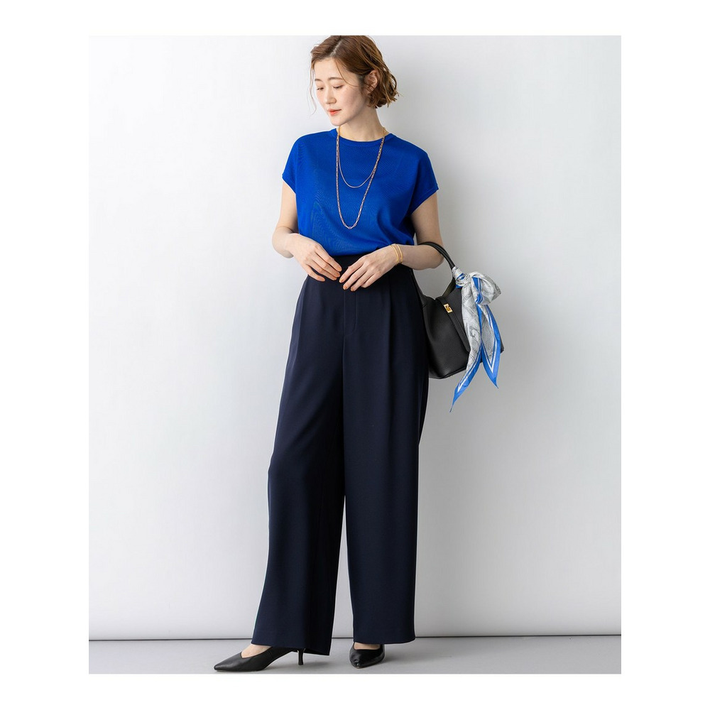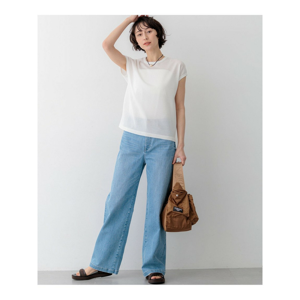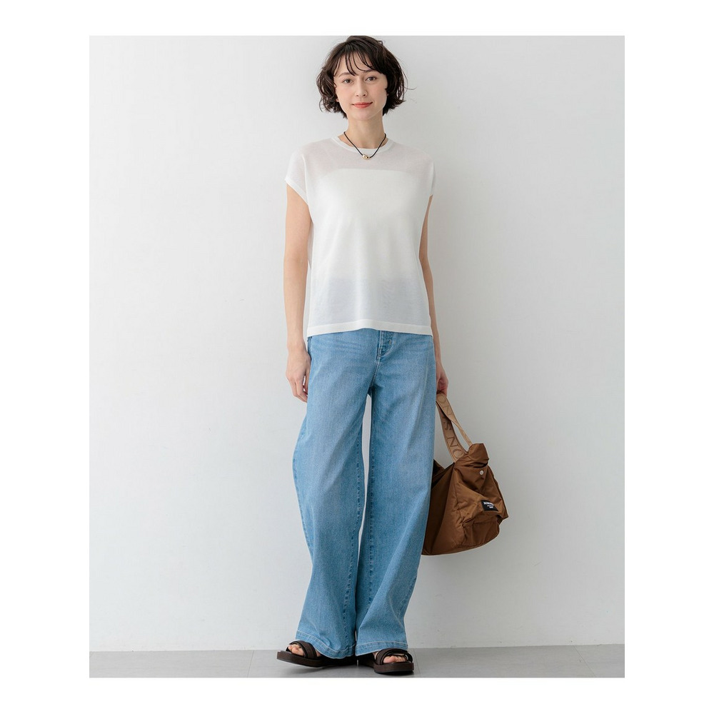 肩先を優しく包み込むような、少し幅を持たせたデザインが特徴のノースリーブプルオーバーです。ボディラインに程よく沿うすっきりとしたサイズ感で、一枚着としてはもちろん、ジャケットやカーディガンのインナーとしてももたつかずに着用いただけます。透け感を程よく抑えているため品があり、キャミソールドレスとのレイヤードスタイルや、ワイドパンツと合わせたきれいめスタイルなど、オンオフ問わずマルチに活躍する一枚です。カラーは、清涼感あふれるホワイト(#001)、柔らかなニュアンスのアイボリー(#003)、女性らしいベージュ(#033)、コーディネートのアクセントになるブルー(#070)、知的な印象のネイビー(#075)の5色展開です。
