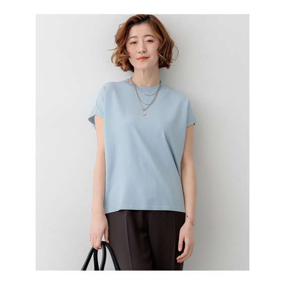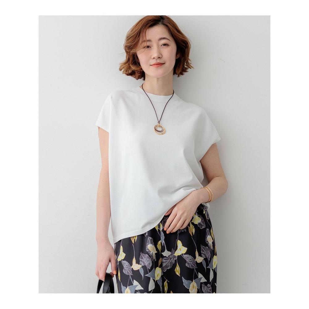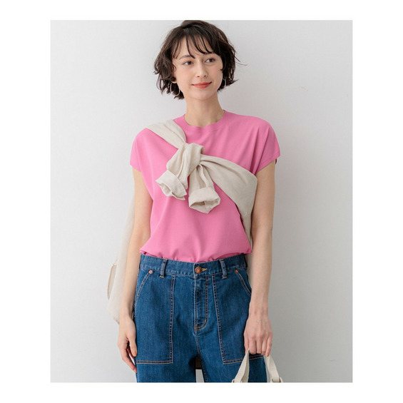 すっきりと清涼感がありつつ程よく体型カバーしてくれるシルエットのフレンチスリーブプルオーバーです。ブラウスのようなきちんと感がありながら、ニットならではの伸縮性で快適な着心地を実現しました。一枚着としてはもちろん、同素材のVカーディガンを肩掛けすれば大人モードな着こなしが完成します。デニムと合わせたカジュアルなオフスタイルから、きれいめなボトムスと合わせたオフィススタイルまで、オンオフ問わず幅広いシーンで活躍する一枚です。カラーは、着回しやすいホワイト(#001)、知的な印象を醸すネイビー(#075)、パッと目を惹くピンク(#012)、爽やかなスカイブルー(#072)、ニュアンス感のあるダークブラウン(#035)、やわらかな雰囲気のベージュ(#033)の6色展開です。