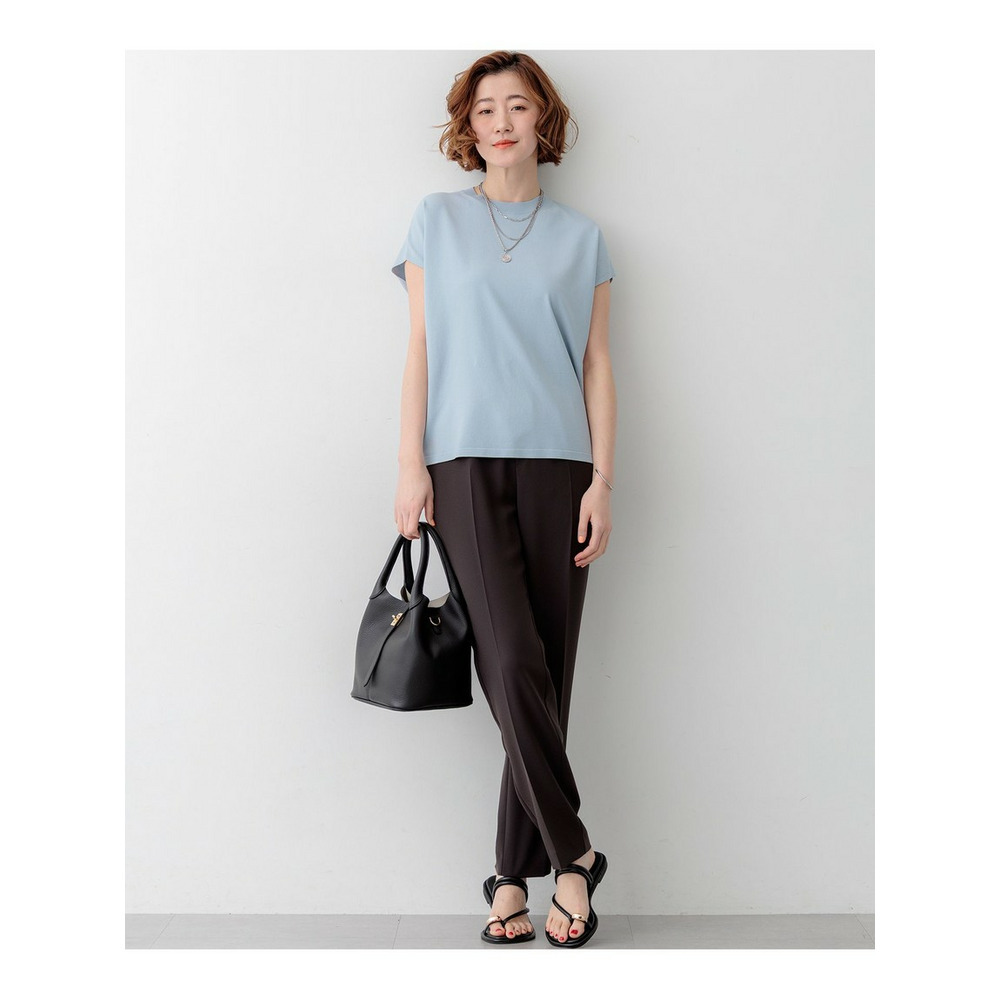「23区」で長年愛されている人気定番素材です。サラサラとした爽やかな肌触りと、程よい光沢感が特徴で、装いを上品に引き立てます。伸縮性に優れた糸を使用しているため、着用時の型崩れが少なく、美しいシルエットを保ちます。また、生地表面にある微細な凹凸が肌への張り付きを防ぎ、気になるボディラインを拾いにくい適度な厚みを実現しました。ご自宅で手洗いが可能なイージーケアアイテムですので、デイリーに気兼ねなくご着用いただけます。