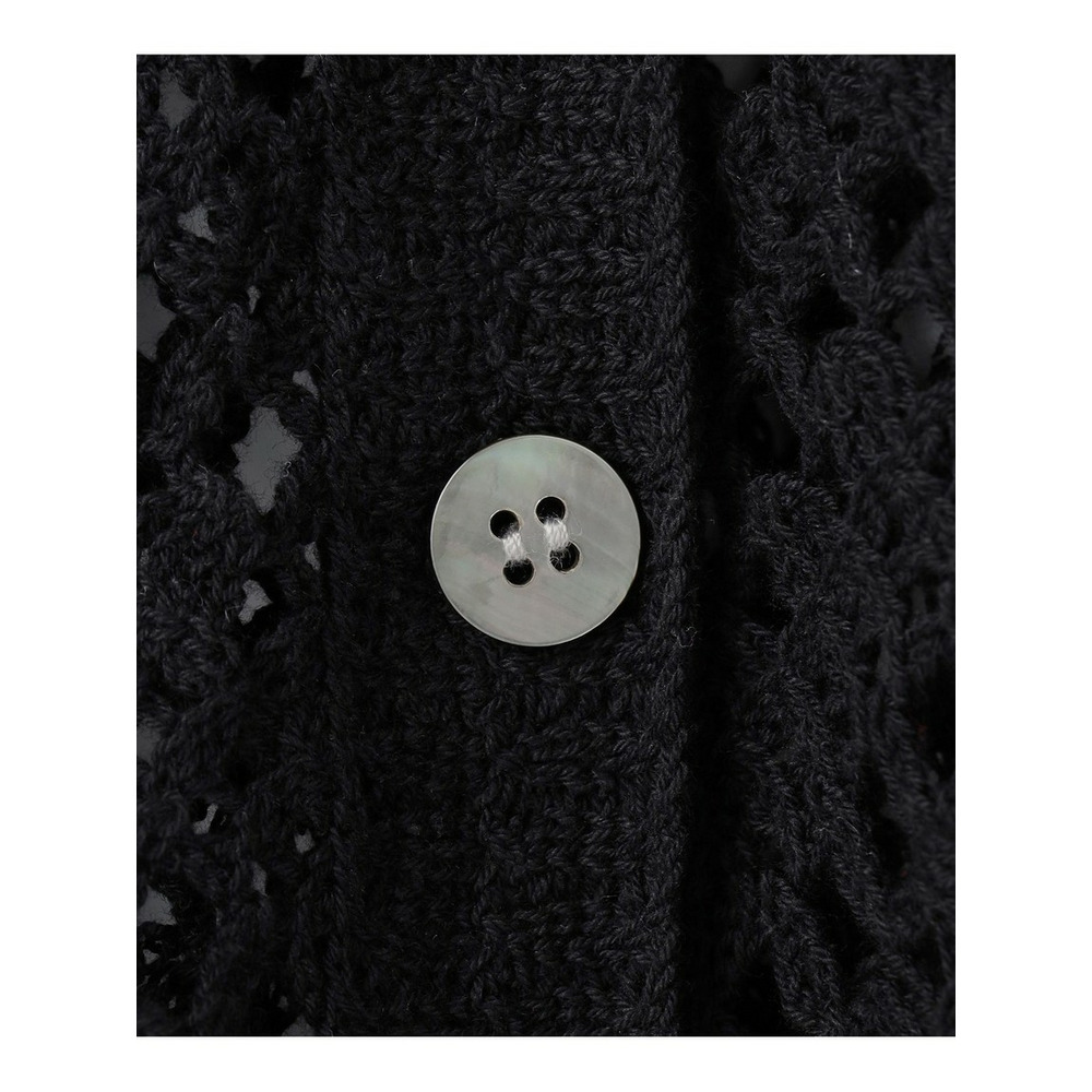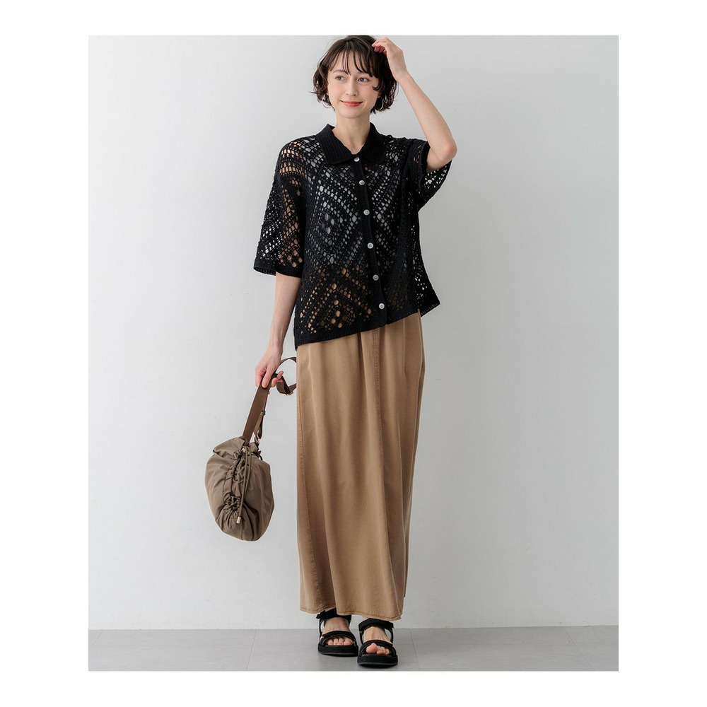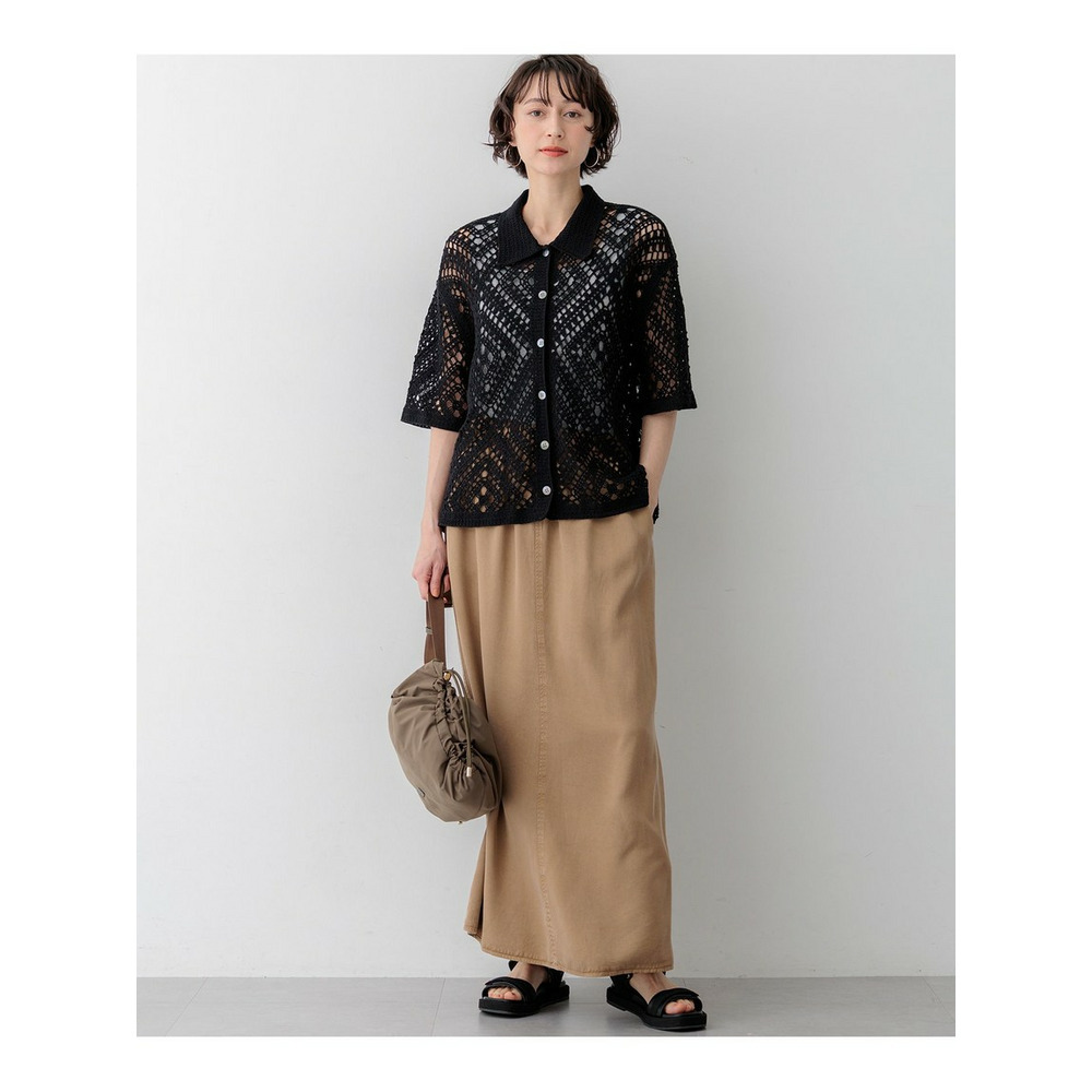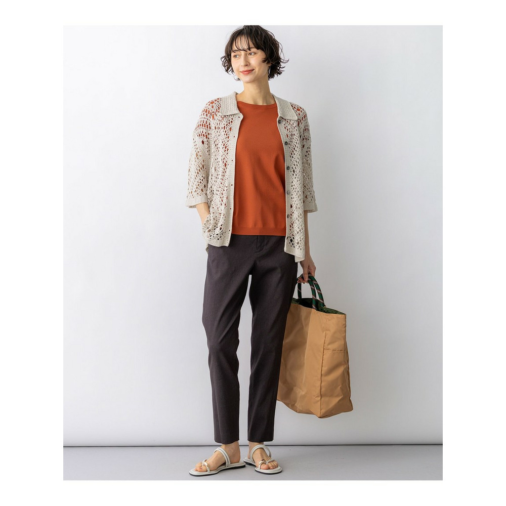 かぎ針編みのような刺繍レースが目を惹く、存在感抜群のポロカーディガンです。襟や前立てのシンプルな柄でトリミングすることで大人の女性でも上品に着こなせる一枚に仕上げました。身体のラインを拾いすぎない程よくゆとりのあるシルエットが、リラックス感のある着心地を叶えます。 ボタンを留めて一枚着風に着るのはもちろん、インナーにキャミソールやタンクトップを合わせて、カーディガンとして羽織るレイヤードスタイルもおすすめです。カラーは、清潔感があり顔周りを明るく見せるホワイト(#001)、シックで洗練された印象を与えるブラック(#005)、肌なじみが良くナチュラルな雰囲気のベージュ(#033)の3色展開です。