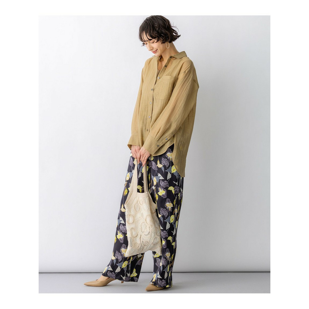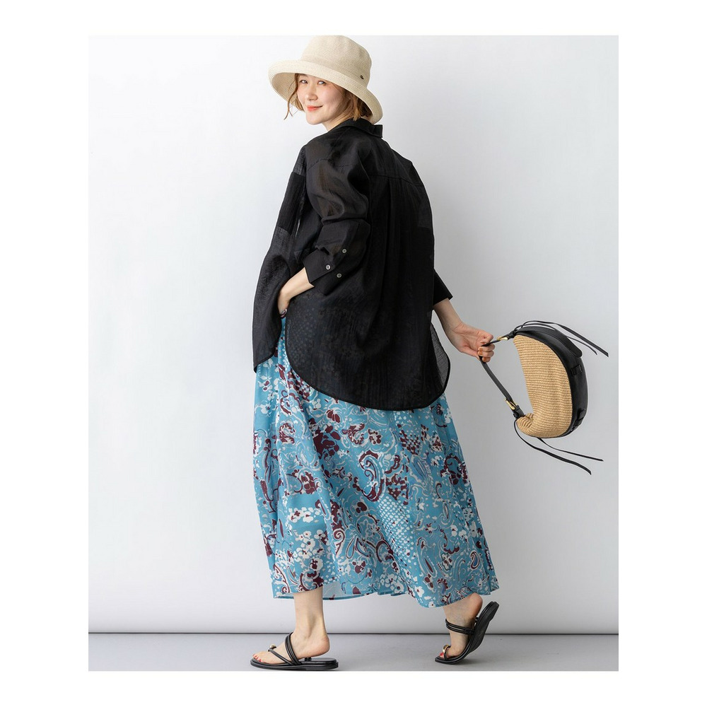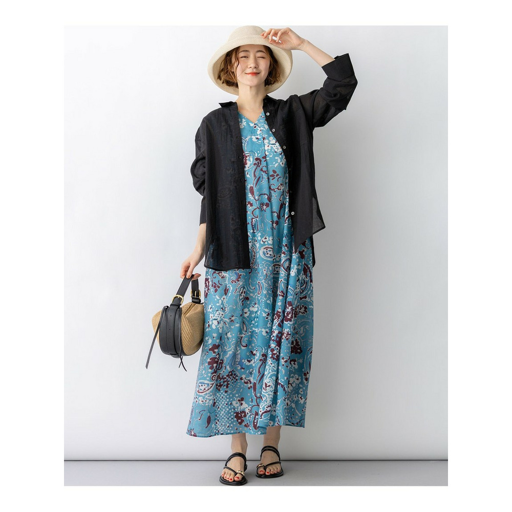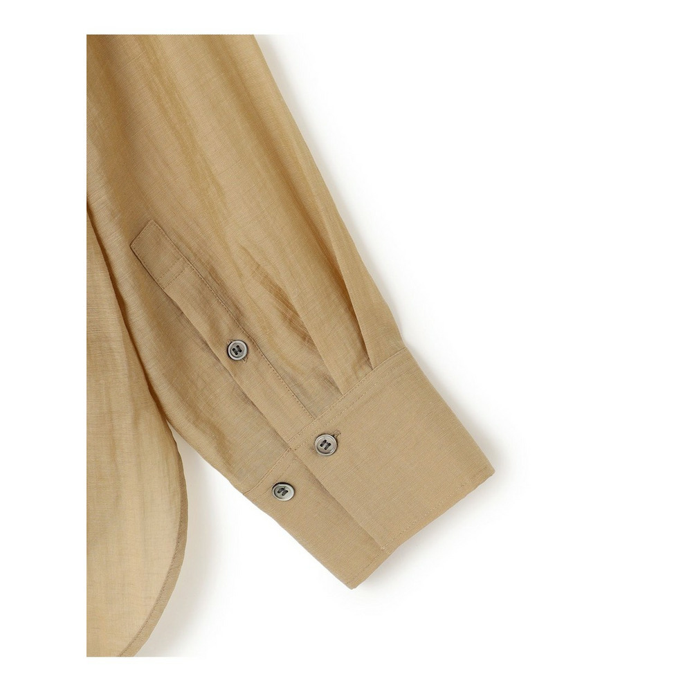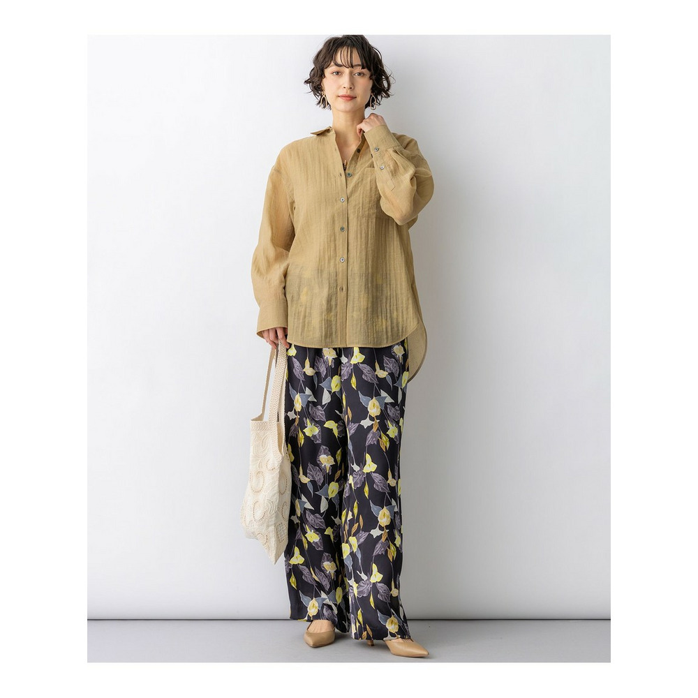 ナチュラルな表情が魅力の、涼し気なシアーシャツです。程よくゆとりのあるオーバーシルエットと、ヒップにかかる長めの着丈が、縦のラインを強調しすっきりとした印象を与えます。ボタンを閉めてシャツとしてはもちろん、タンクトップやキャミソールの上にさらりと羽織るスタイルもおすすめ。ドライな肌触りで清涼感があり、気温の上がる夏場まで長く着回せる便利な一枚です。シンプルなボトムと合わせるだけで、洗練された大人のリラックススタイルが完成します。カラーは、シックで万能なブラック(#005)、肌馴染みが良く上品なベージュ(#033)、こなれ感のある大人なカーキ(#054)の3色展開です。