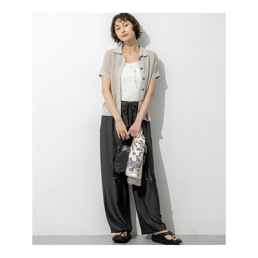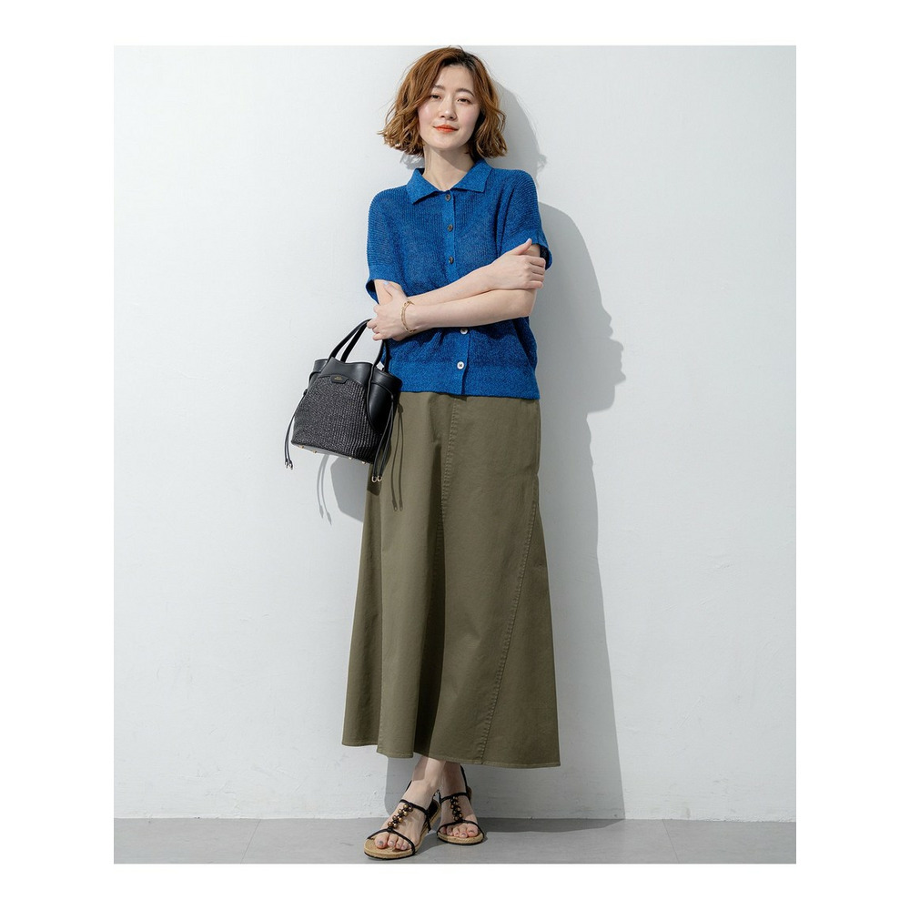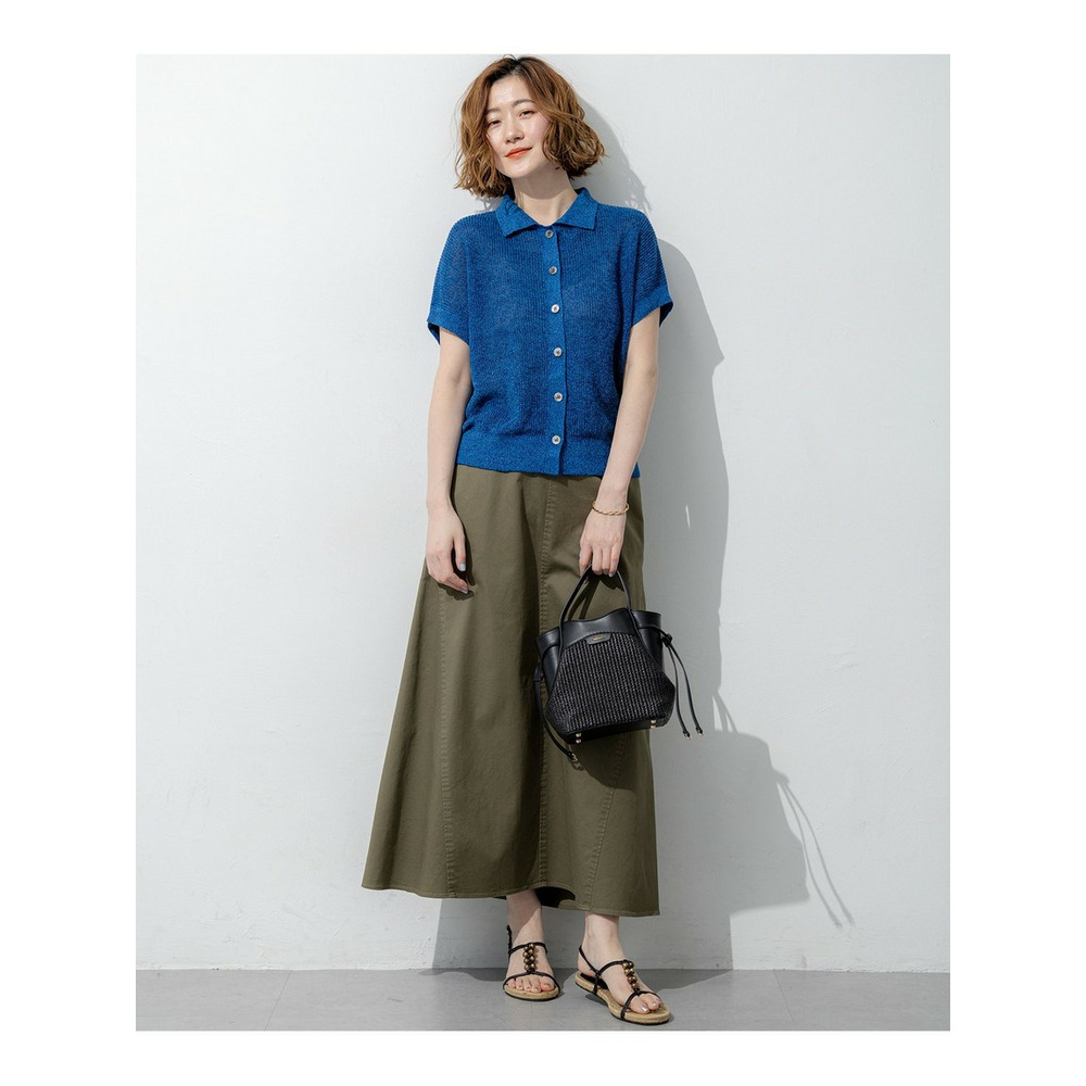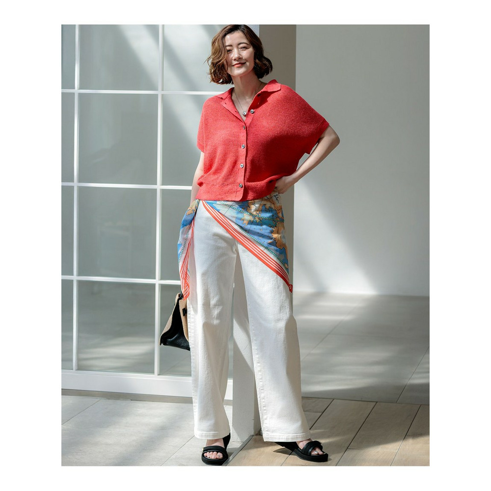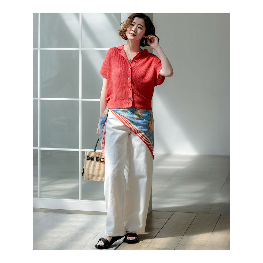表情豊かな畦編みで仕立てた、清涼感あふれるポロニットプルオーバーです。気になる二の腕を自然にカバーしてくれる、肩を優しく覆う袖丈にこだわりました。コンパクトな襟元が顔周りをすっきりと見せ、程よいきちんと感を演出します。裾周りはもたつかない絶妙なサイズ感に設定しているため、ボリュームのあるスカートやトレンドのワイドパンツともバランスよく決まります。羽織りとしてももちろん、一枚でさらりと着るだけで、大人のリラックススタイルが完成します。カラーは、コーディネートのアクセントになる鮮やかなレッド(#020)、肌なじみが良くナチュラルな気品漂うベージュ(#033)、涼しげで爽やかなブルー(#070)の3色展開です。