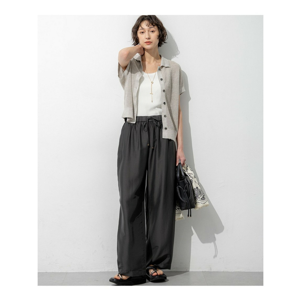 フランス・ノルマンディ地方で採れる原料の中でも、「一等亜麻」と呼ばれる希少で上質なリネンを使用しています。日本国内で特殊な技術を用いて作られた糸を、独自の工程で丁寧に染め上げることで、毛羽立ちを抑えました。天然素材ならではのハリと美しい光沢を持ち合わせ、さらりとした肌触りが特徴です。