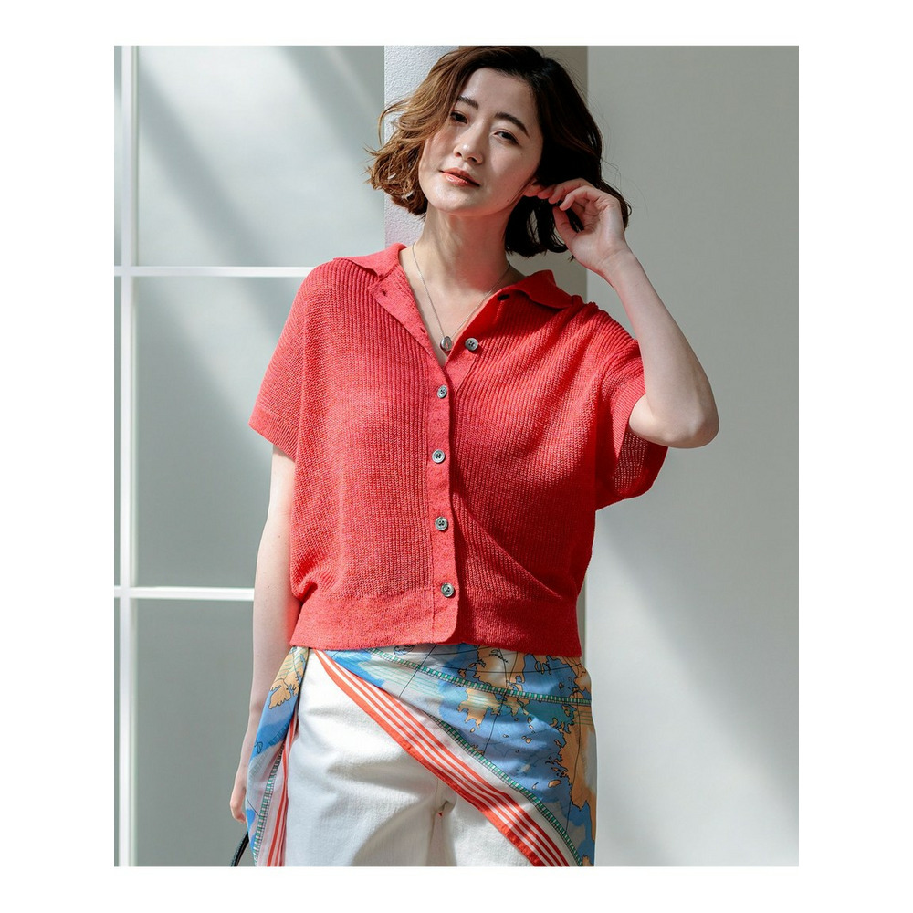ピュアリネン スキッパー ポロニット(品番:KRWOLM0462)
